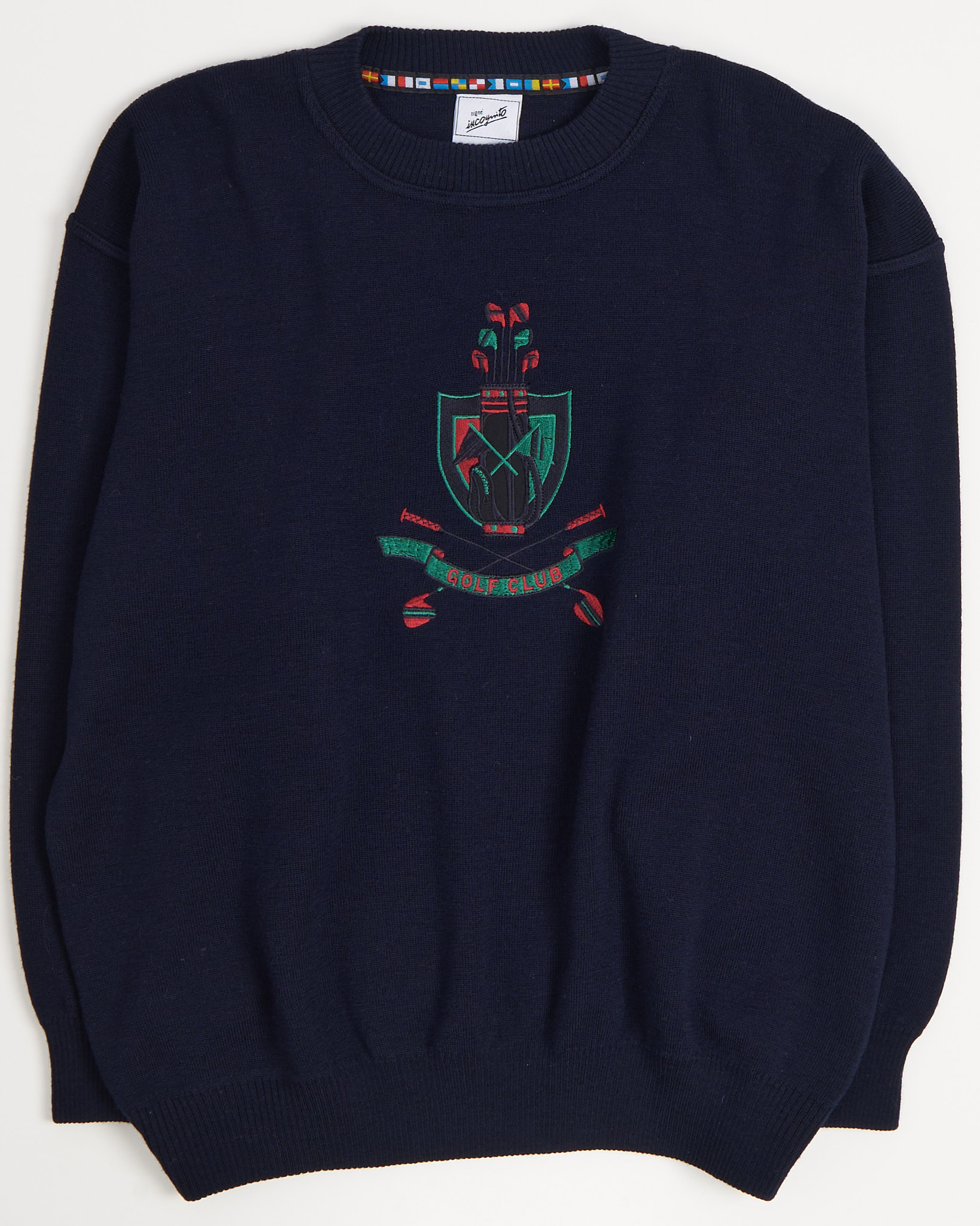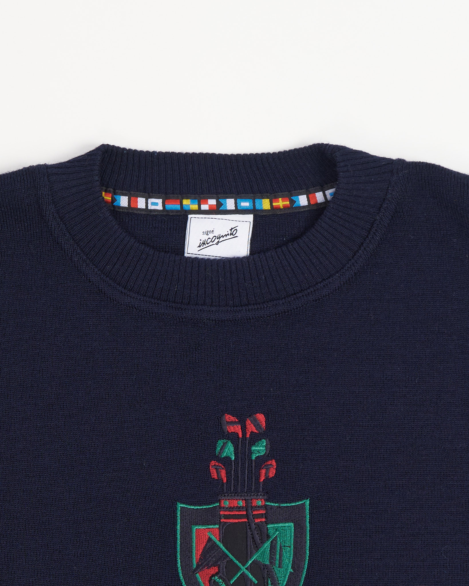 Свитер из 100% натуральной шерсти. Свободная посадка, акцентная вышивка с гербом на груди.