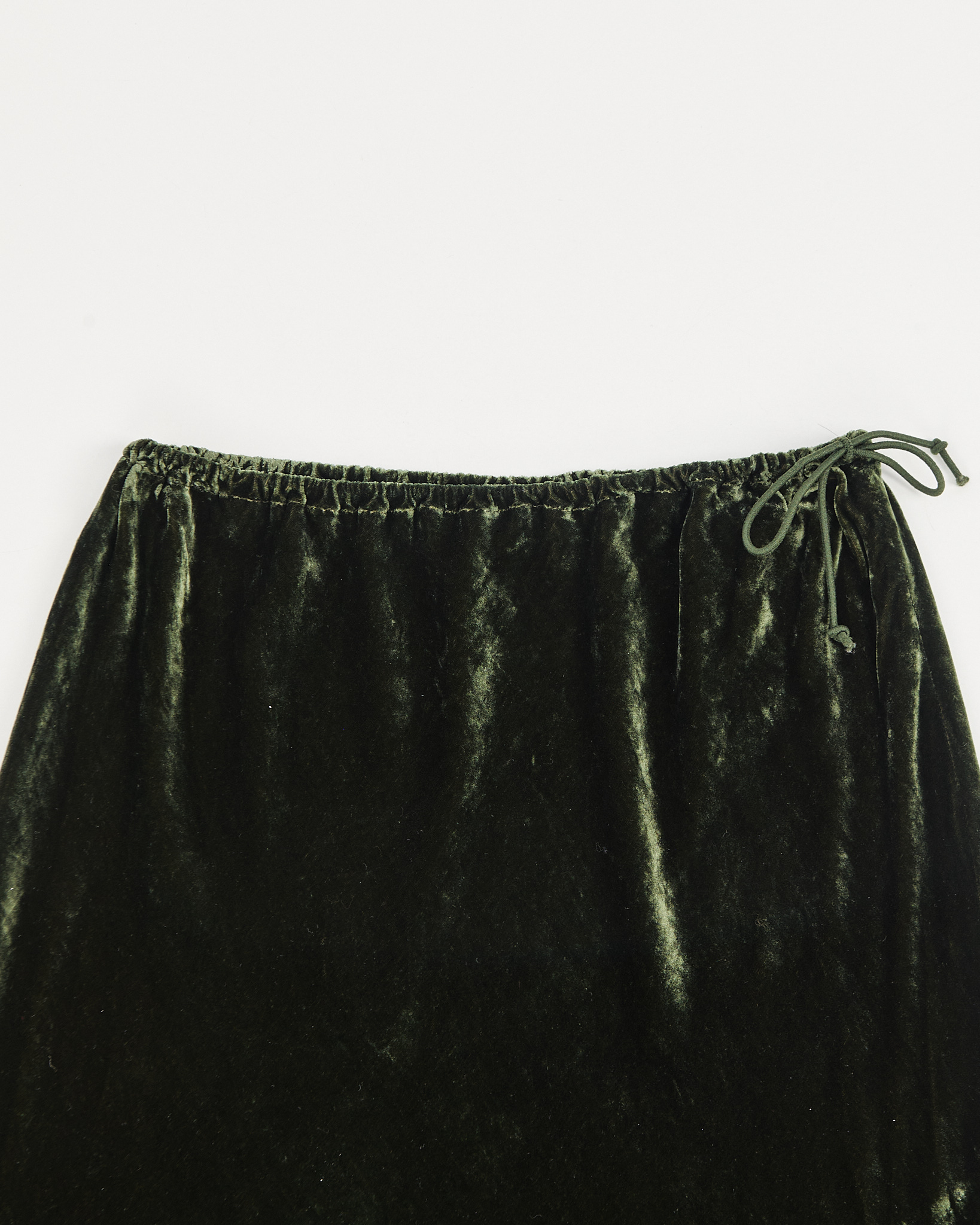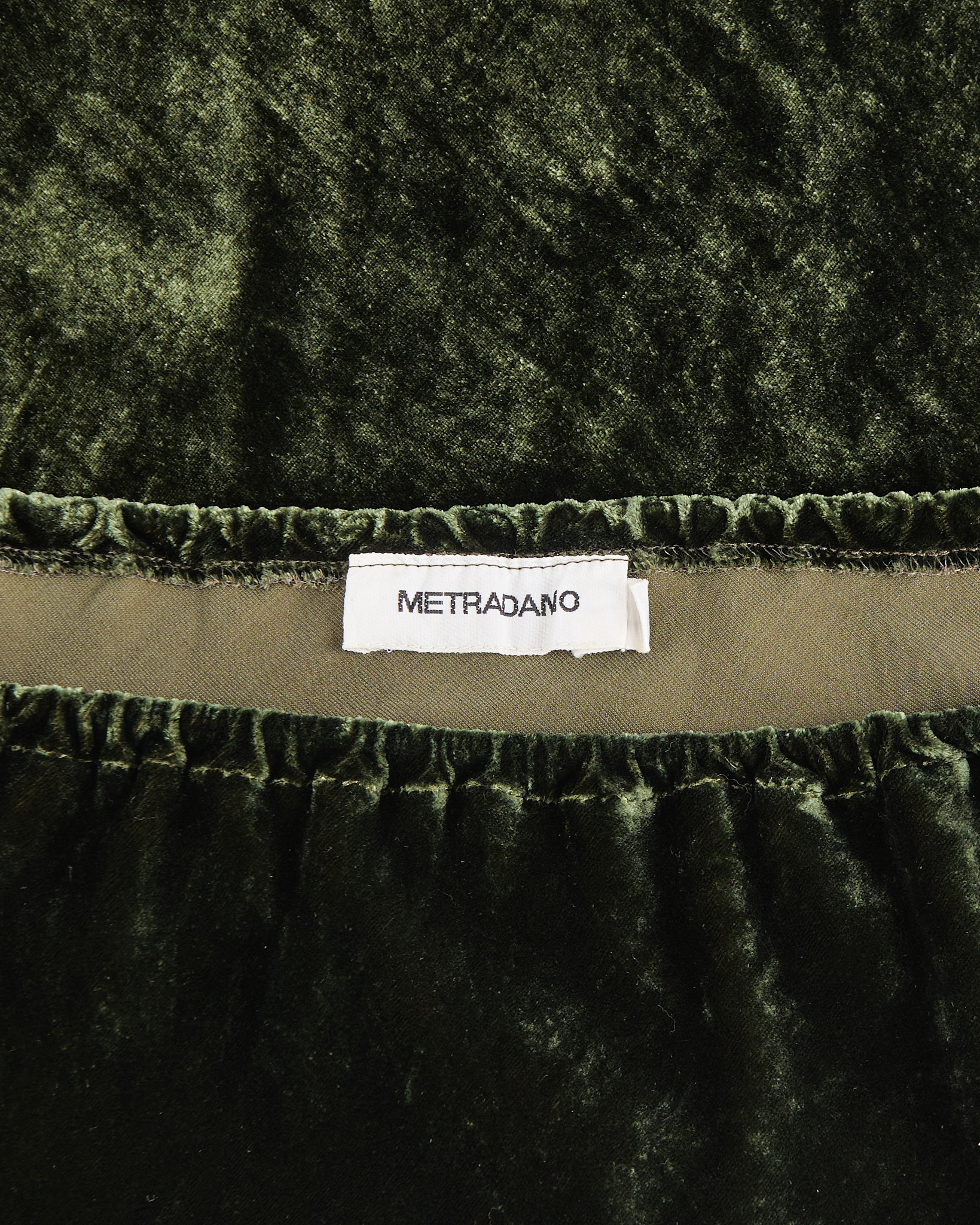 Бархатная юбка METRADAMO глубокого зелёного оттенка. Юбка из мягкого бархата, посадка свободная, с эластичным поясом на кулиске, который мягко фиксирует талию и позволяет регулировать объём.