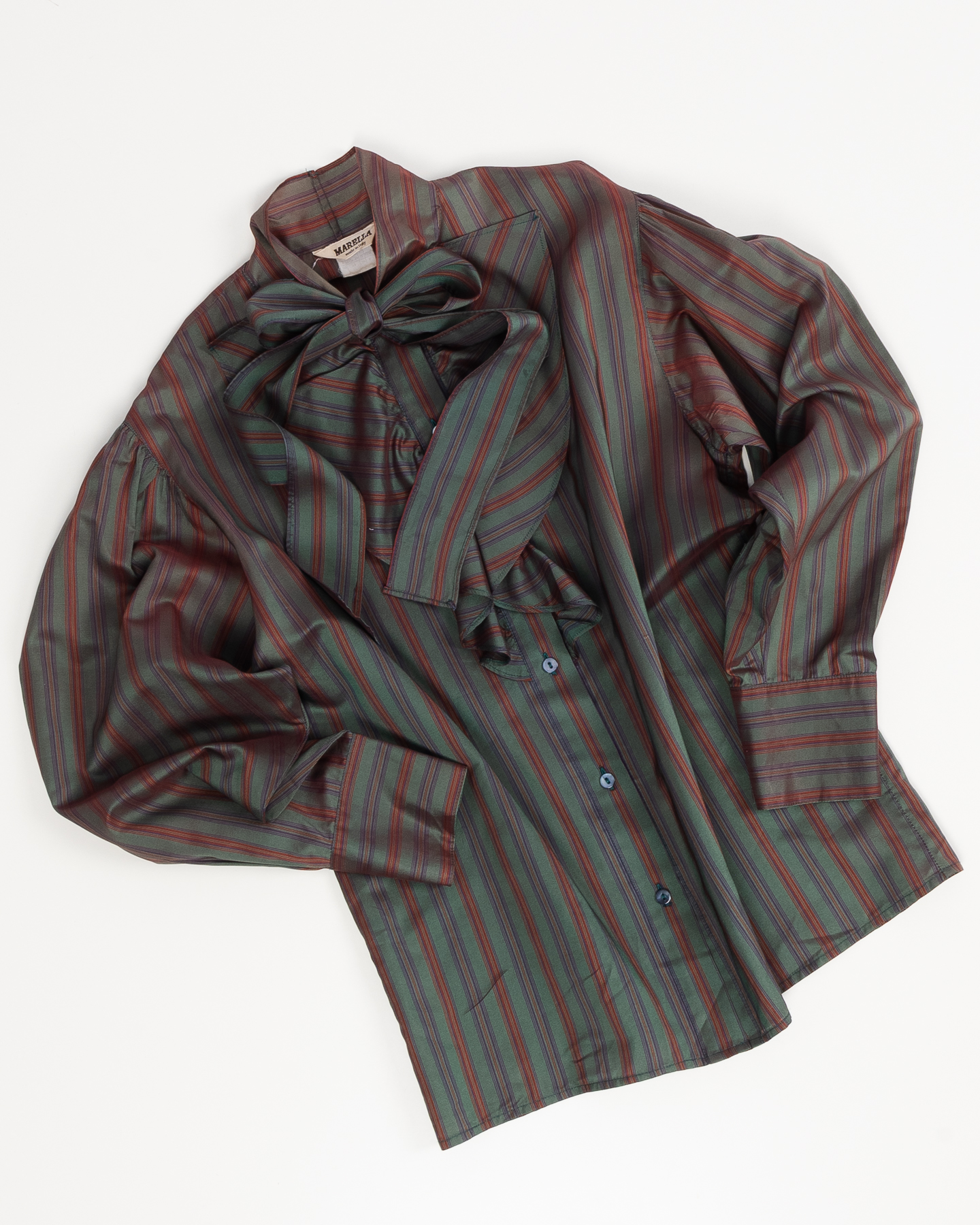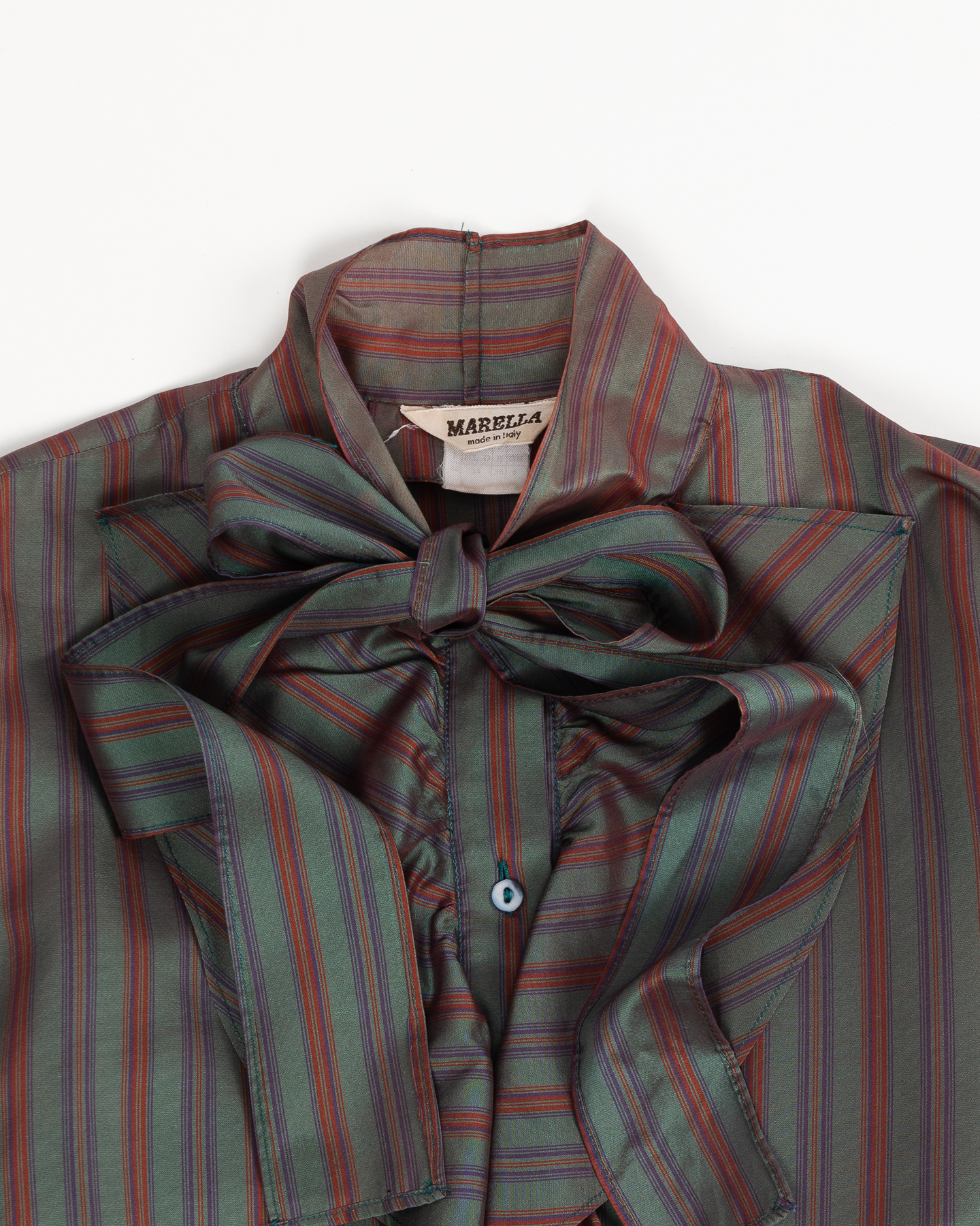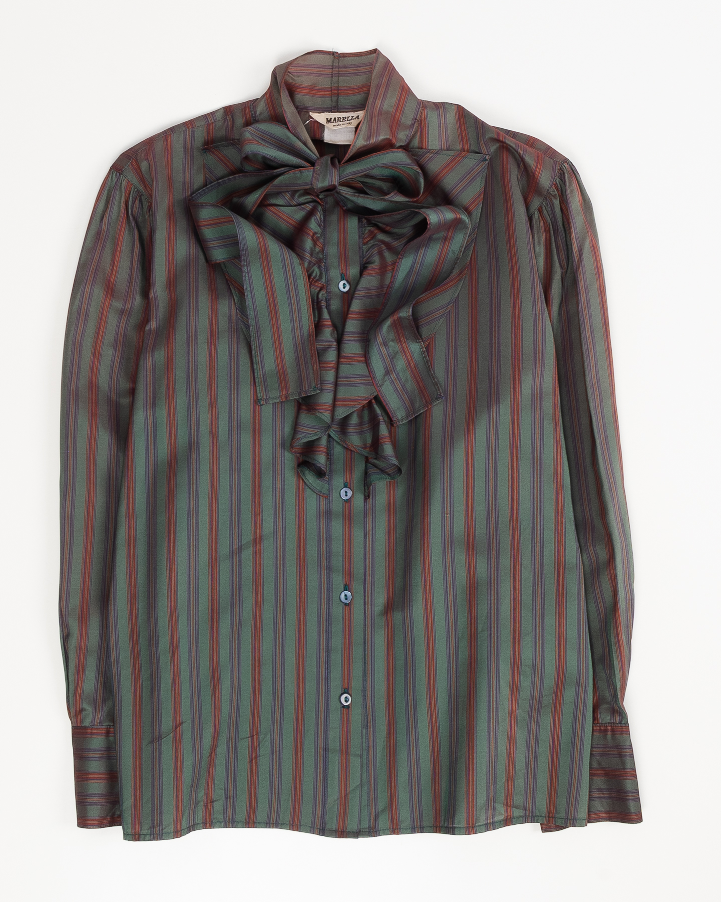 Блуза выполнена из шёлка с характерным шелковистым блеском и мягкой, гладкой фактурой. Посадка свободная, с мягкой линией плеч и комфортным объёмом по корпусу, ткань приятно скользит по коже. Акцентный бант у горловины придаёт акцент и выделяет модель среди классических рубашек.