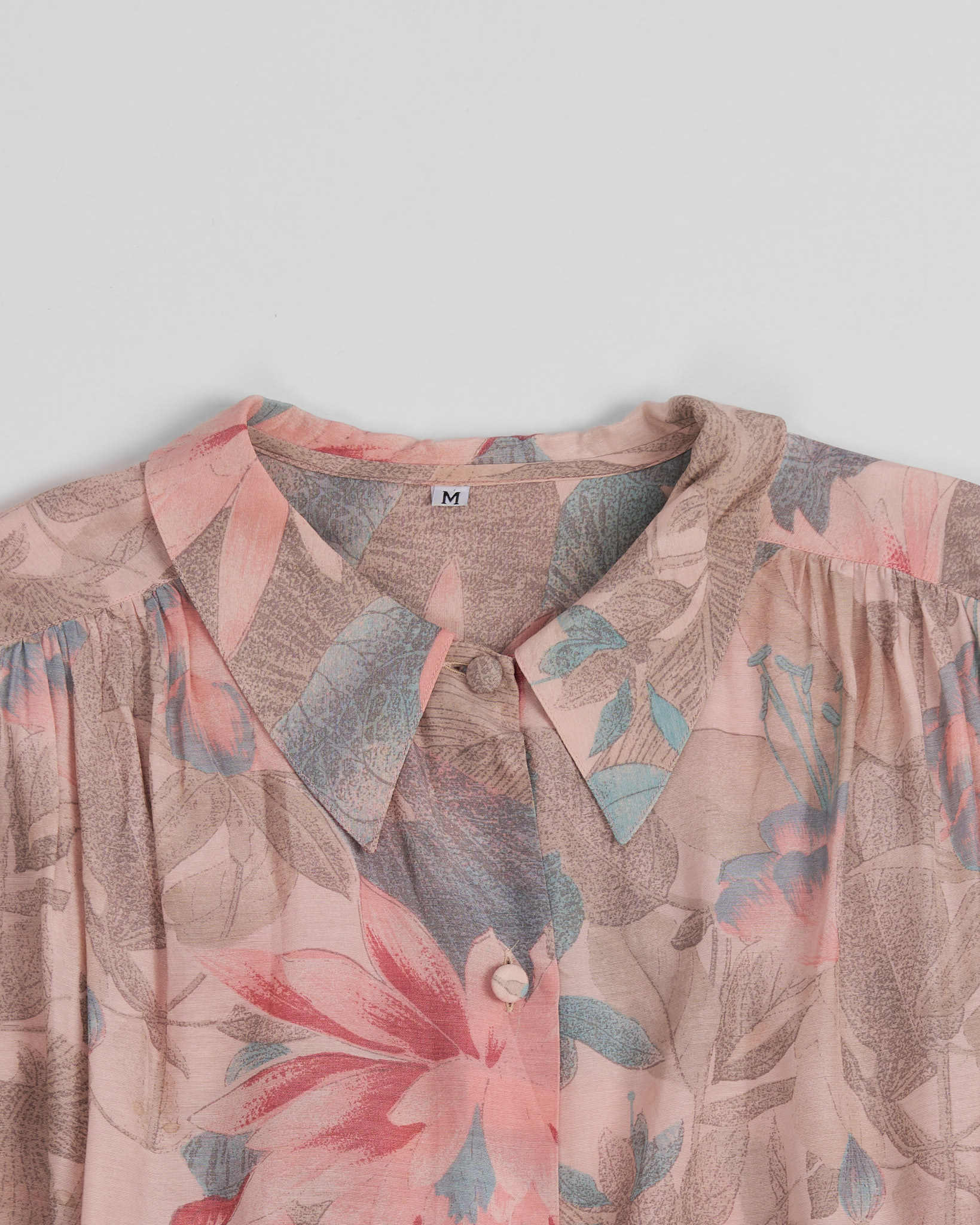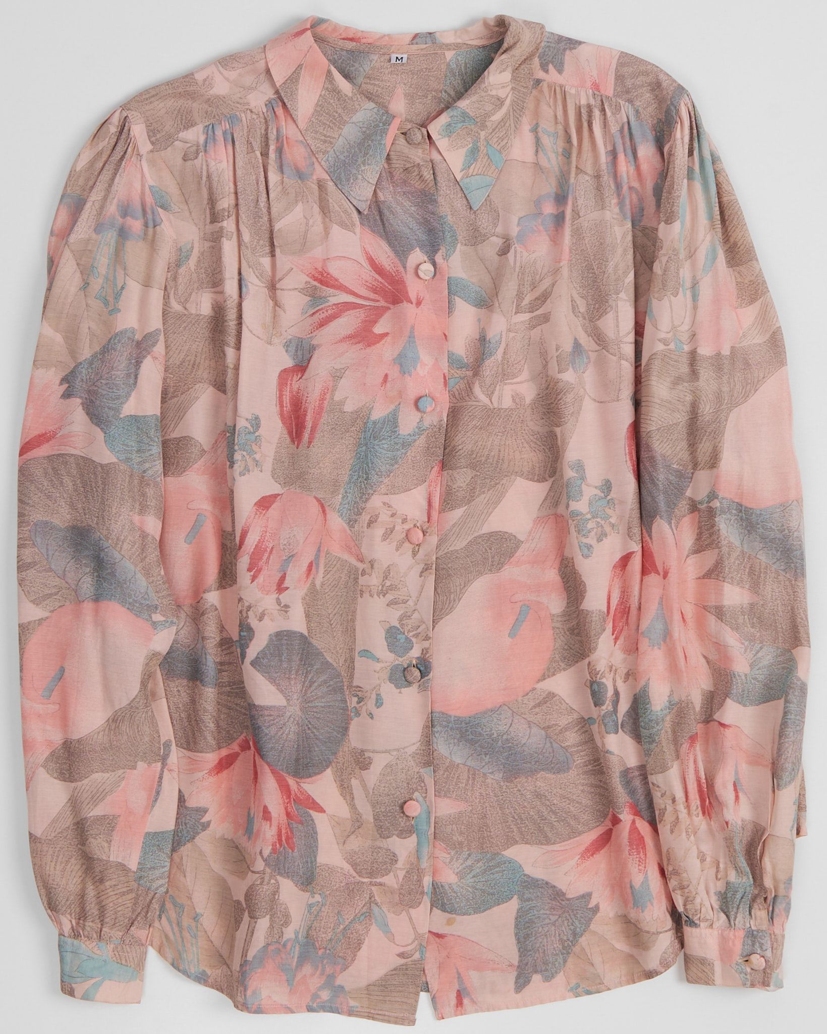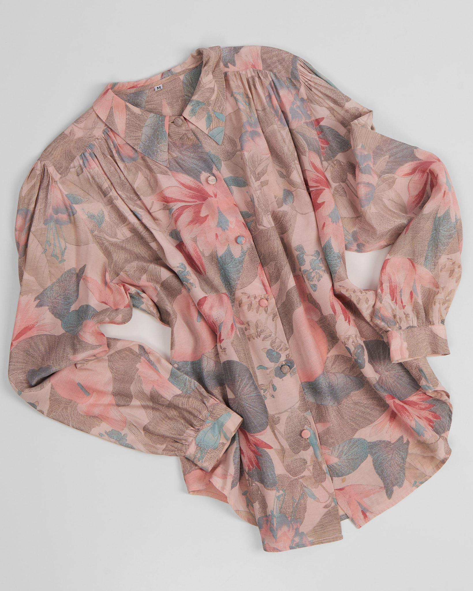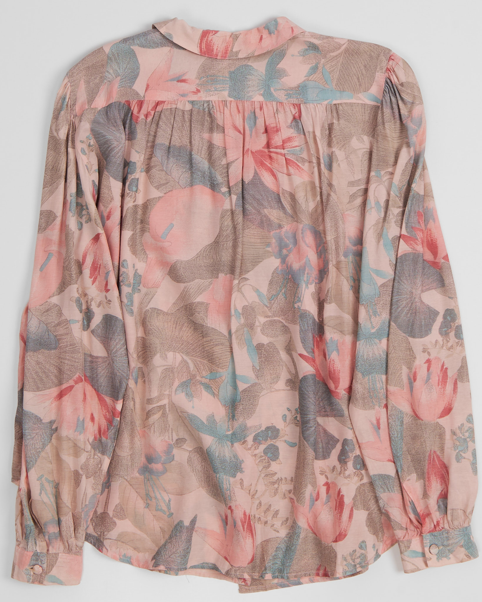 Блуза из 100% вискозы с цветочным принтом. Свободная посадка, рукава фонарики, акцентный воротник.