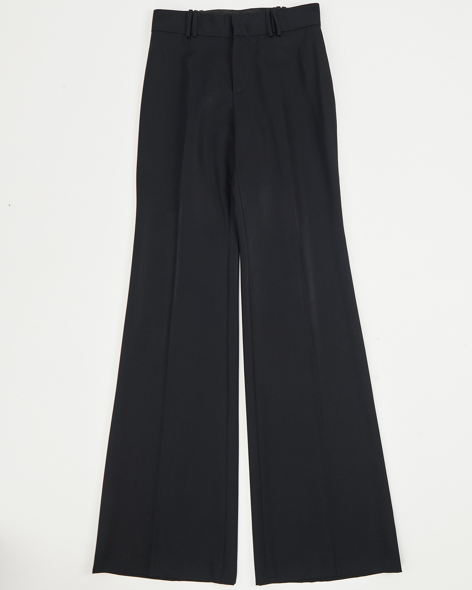 Брюки из тонкой костюмной шерсти. Высокая посадка визуально удлиняющая силуэт. Фирменная отделка Gucci. Сделаны в Италии
