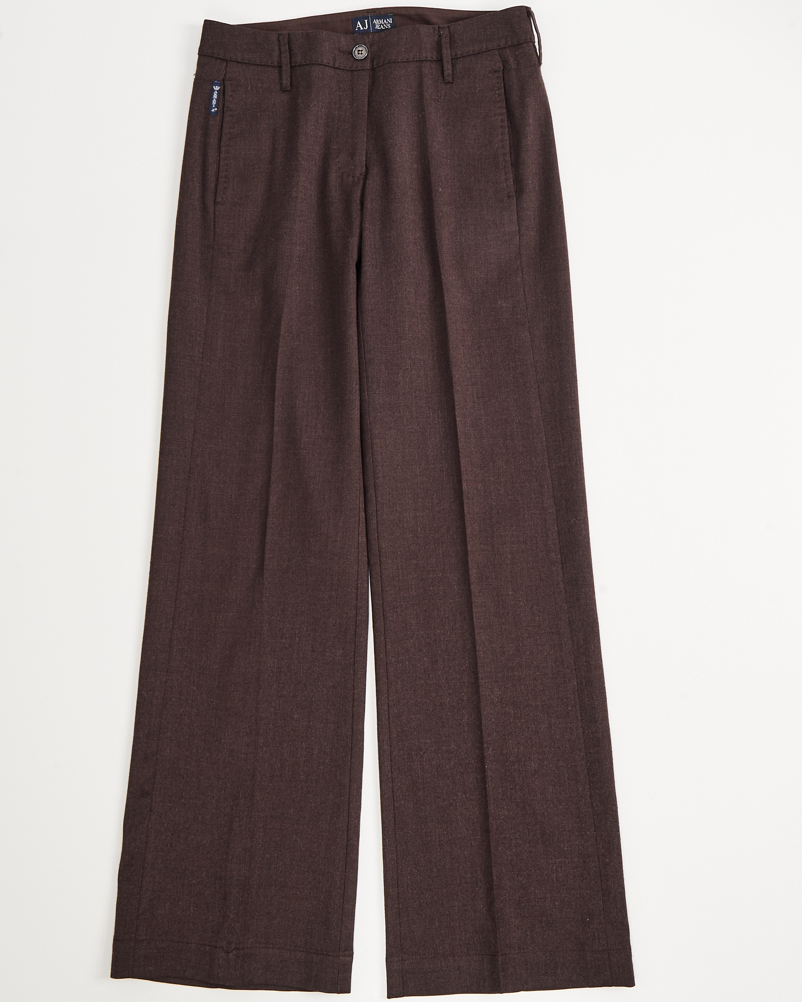Классические брюки Armani Jeans  из шерсти. Посадка на талии, классические стрелки, фасон визуально вытягивает силуэт. Функциональные карманы, фирменные нашивки с логотипом бренда.