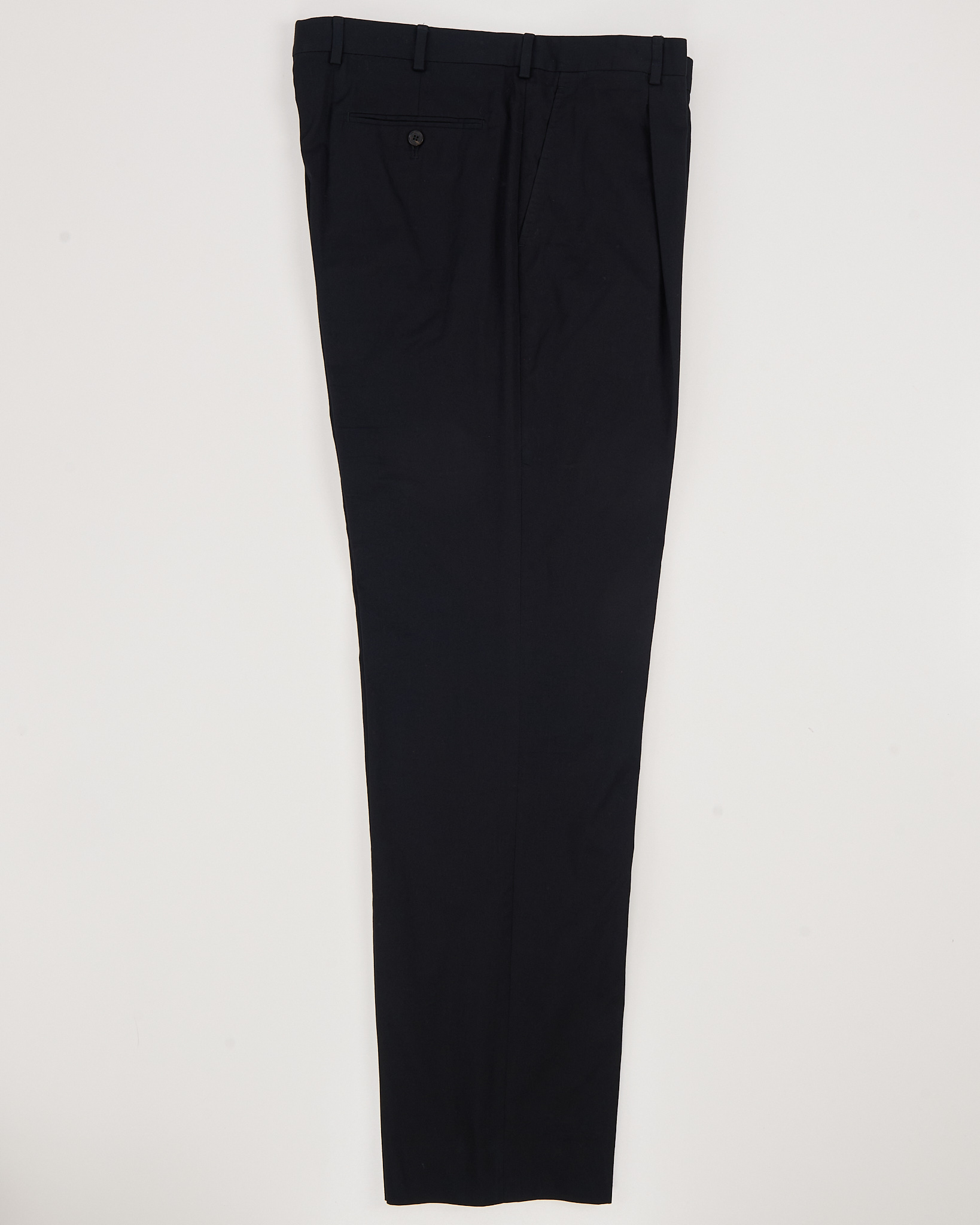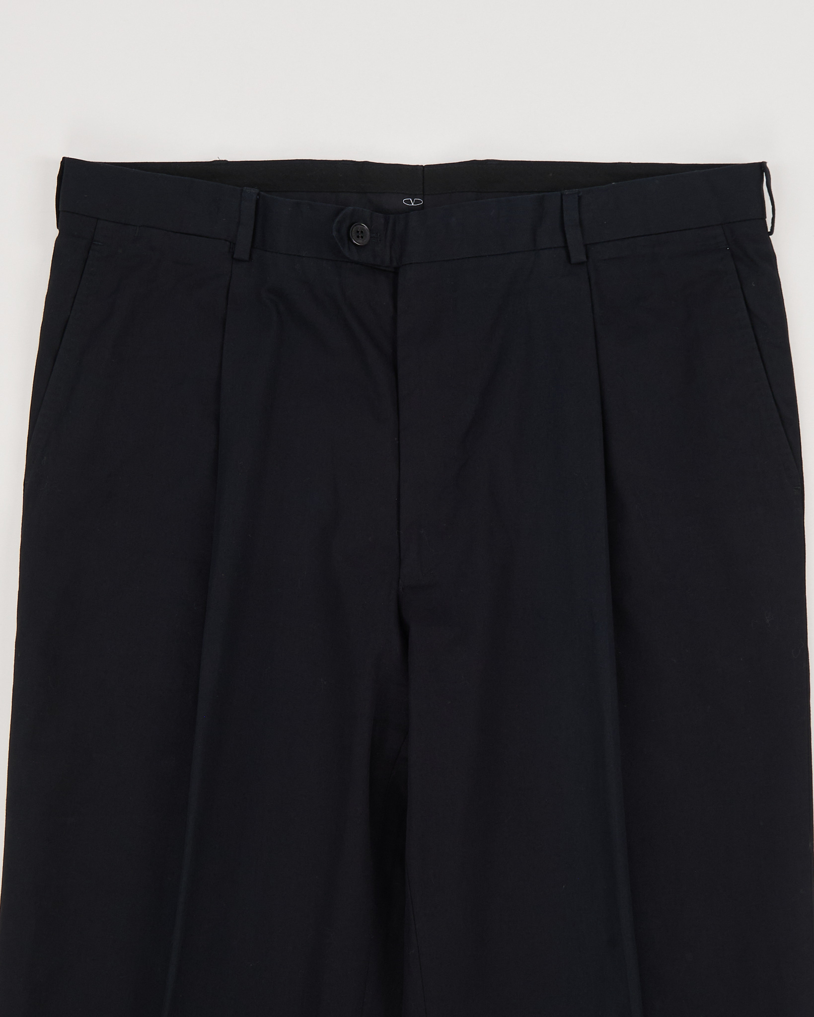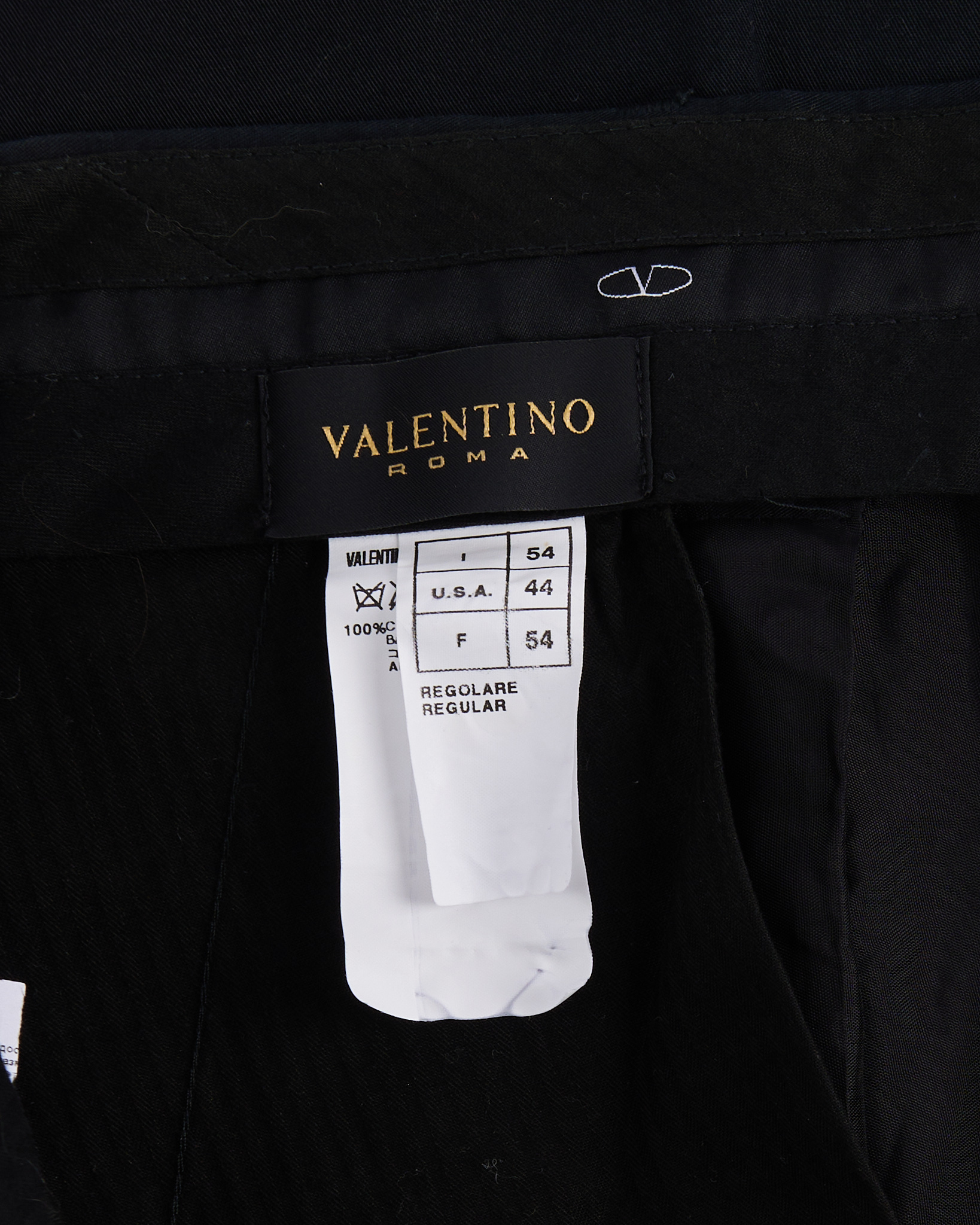 Черные хлопковые брюки Valentino Roma. Архитектура кроя от культового итальянского бренда, прямой силуэт с защипами на поясе гарантирует комфортную свободную посадку. По бокам функциональные карманы.