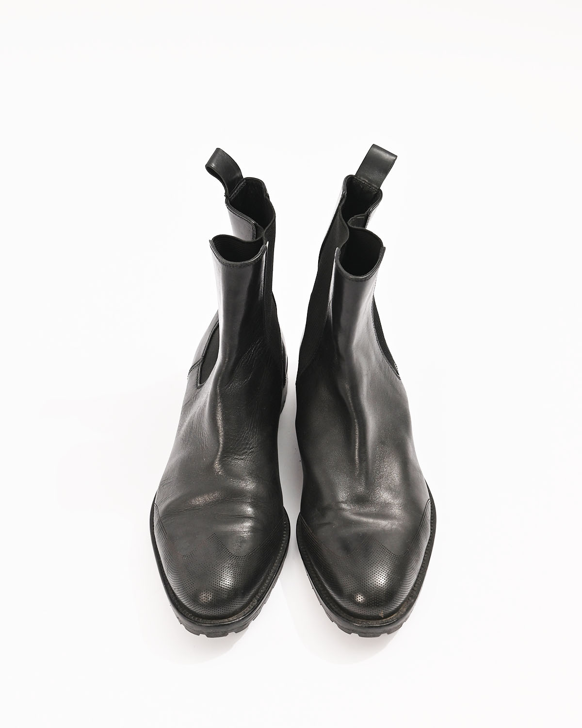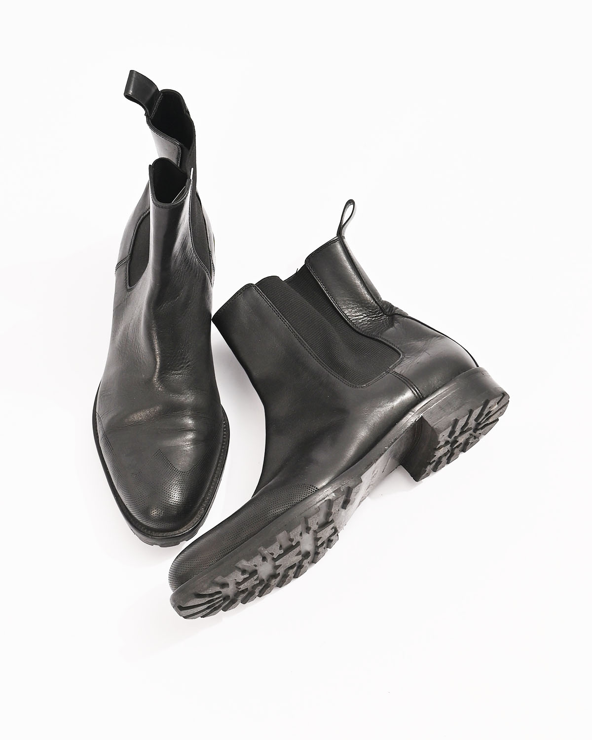 • Ботинки из плотной натуральной кожи с лёгким глянцем и аккуратным перфорационным узором на мысе