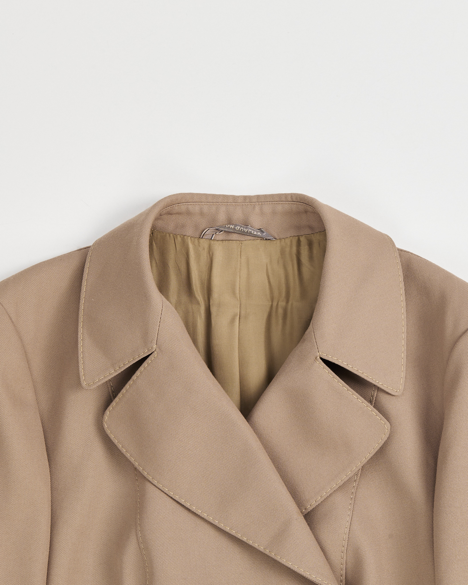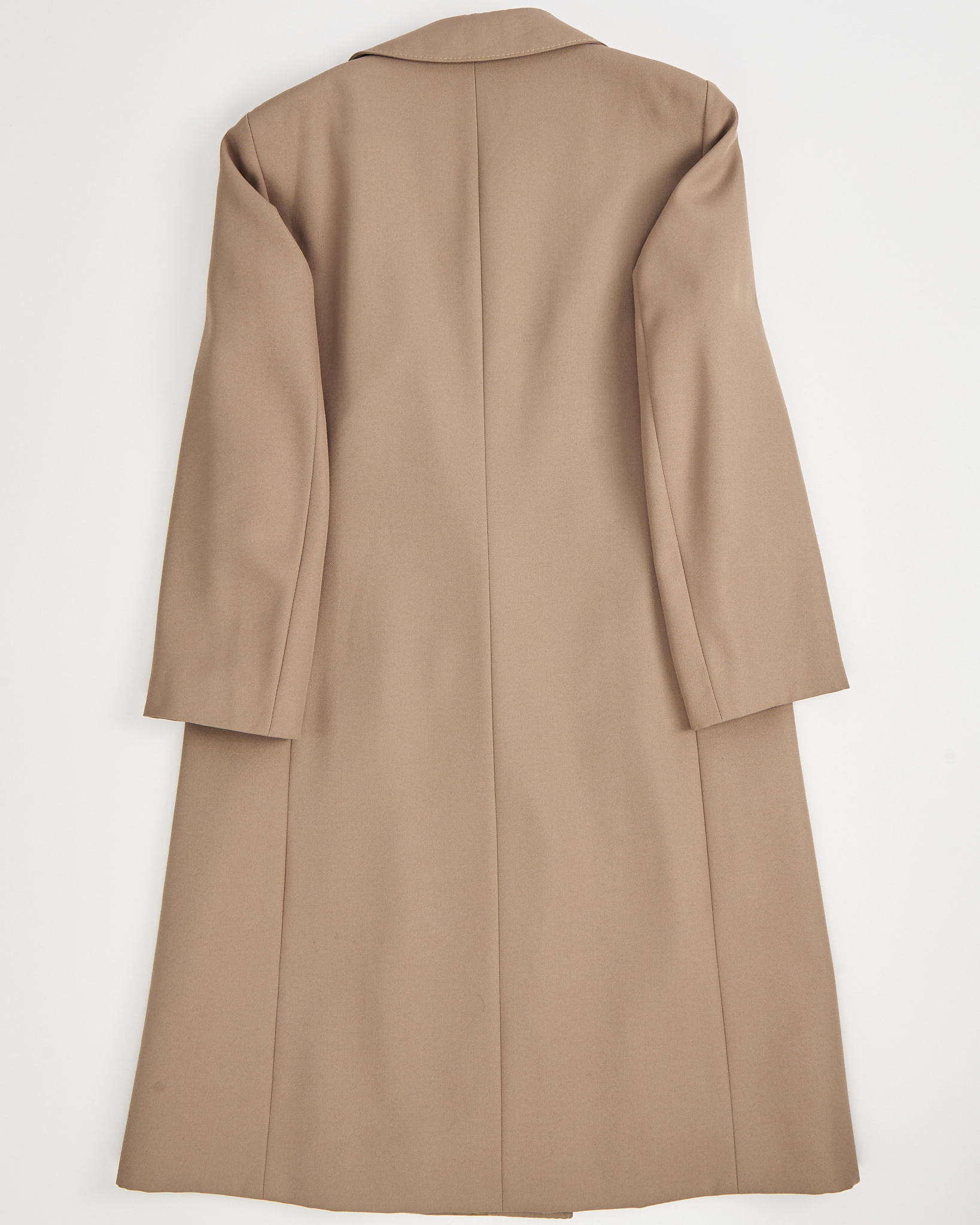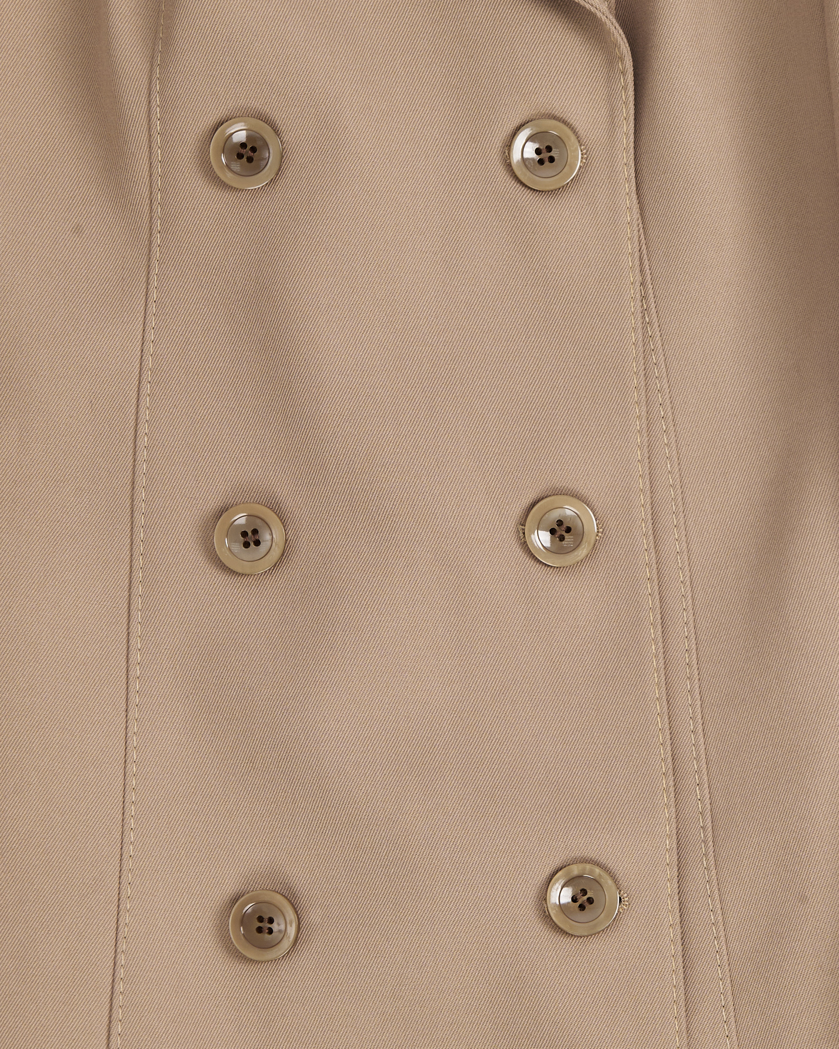 Пальто Cinino из 45% шерсти тёплого бежевого оттенка. Аккуратная посадка, силуэт слегка расширяется к низу. Двубортная конструкция и широкий воротник, функциональные карманы по бокам. Итальянское производство.