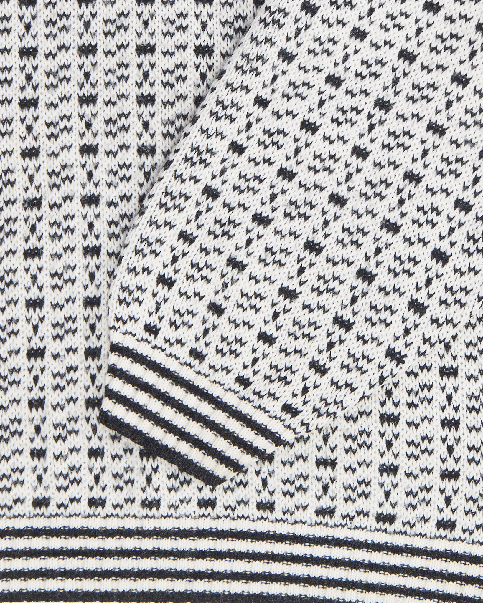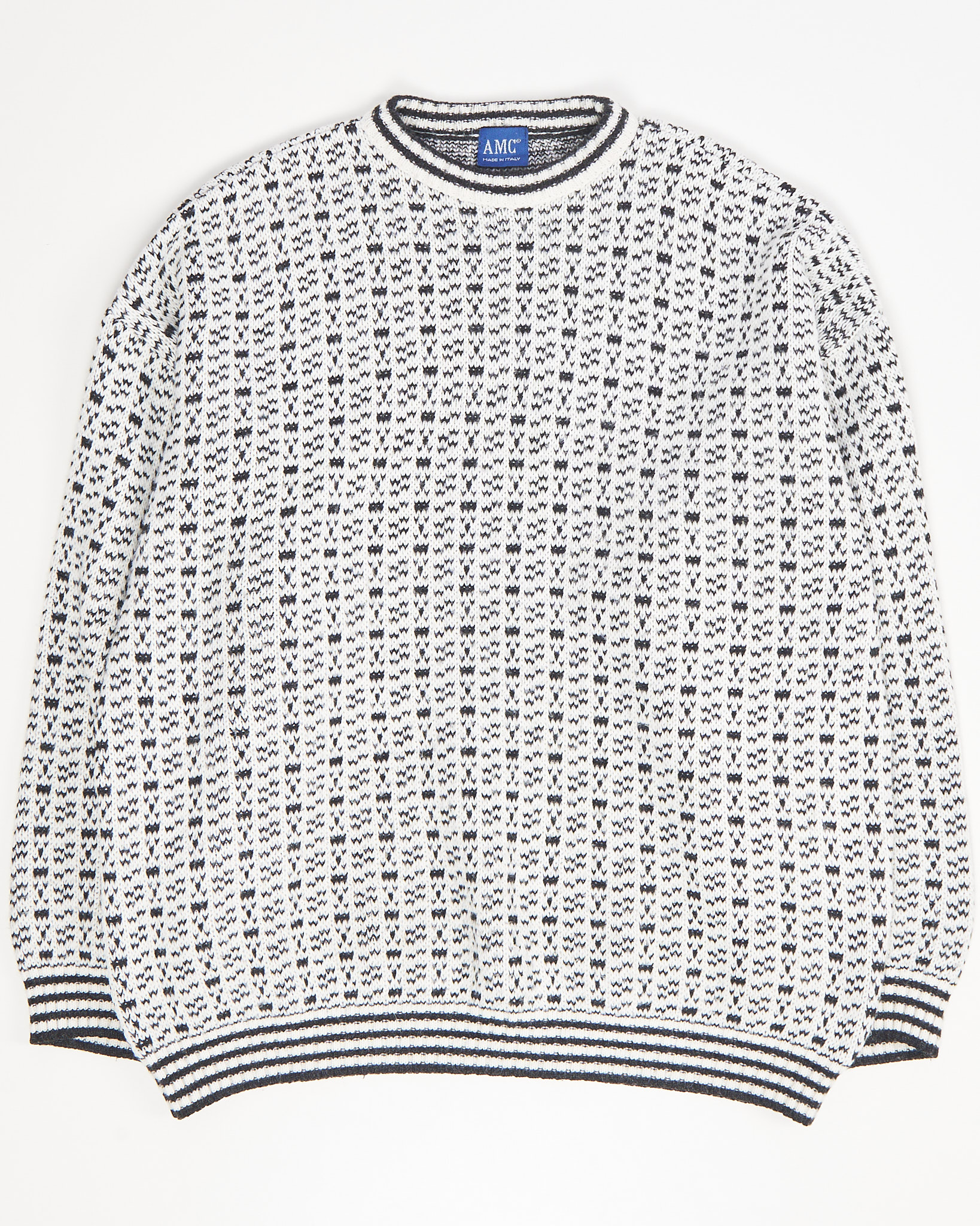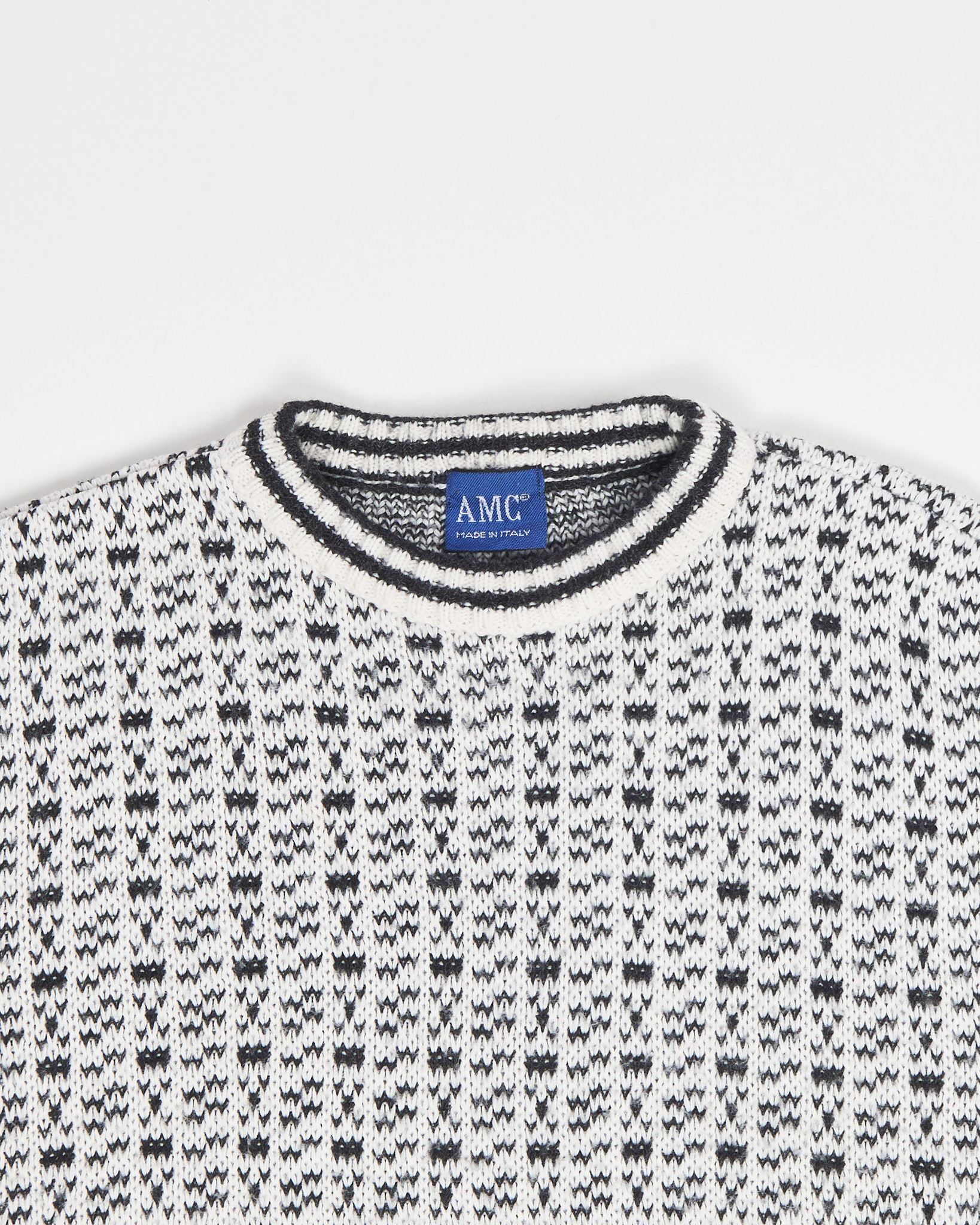 Джемпер AMC с контрастным узором.Посадка свободная, с правильным балансом объёмов в плечах и по линии низа. Манжеты и ворот идеально держат форму и подчёркивают структуру вязки.