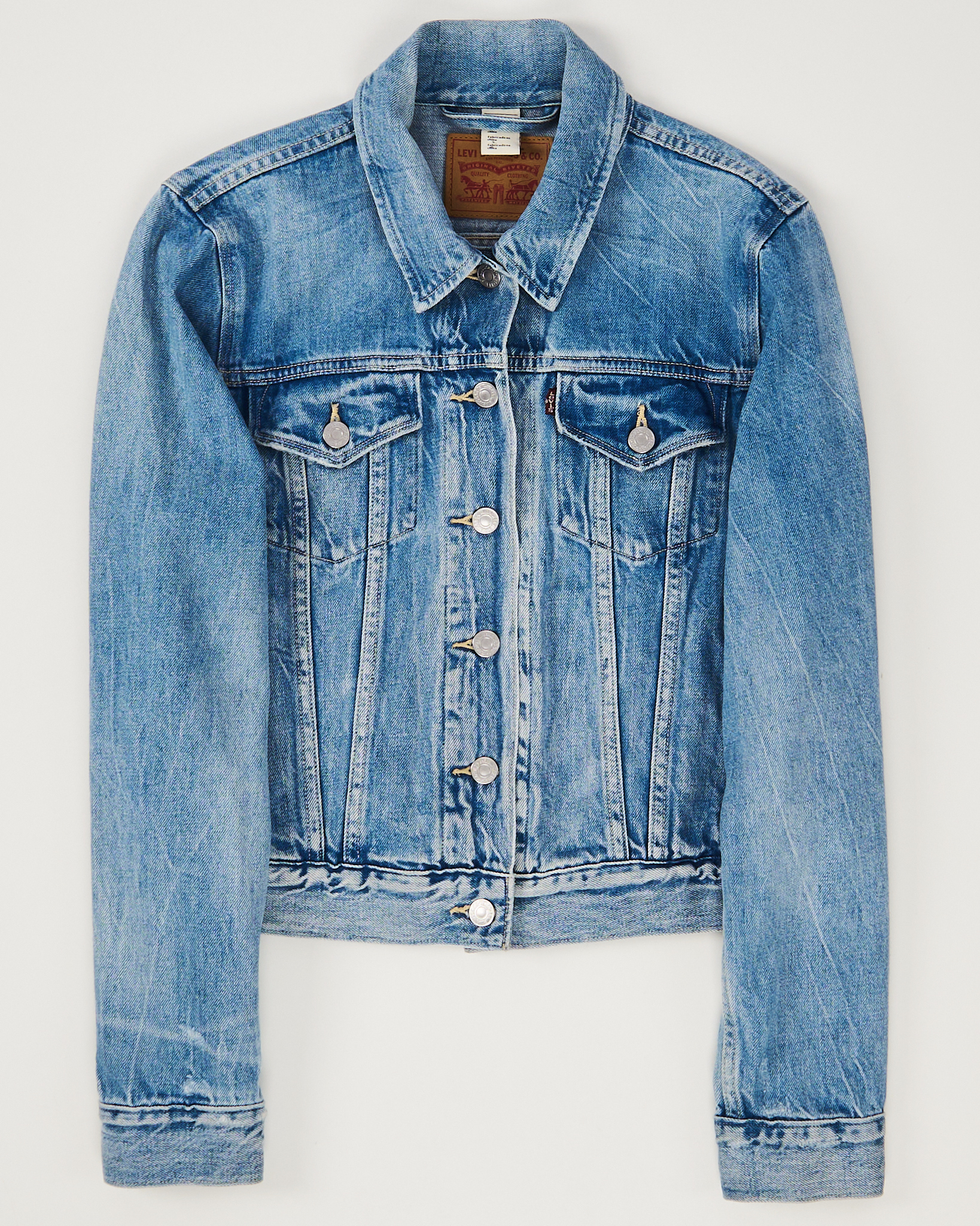 Джинсовая куртка из 100% плотного денима. Классический прямой крой, укороченная модель, фурнитура с гравировкой бренда.