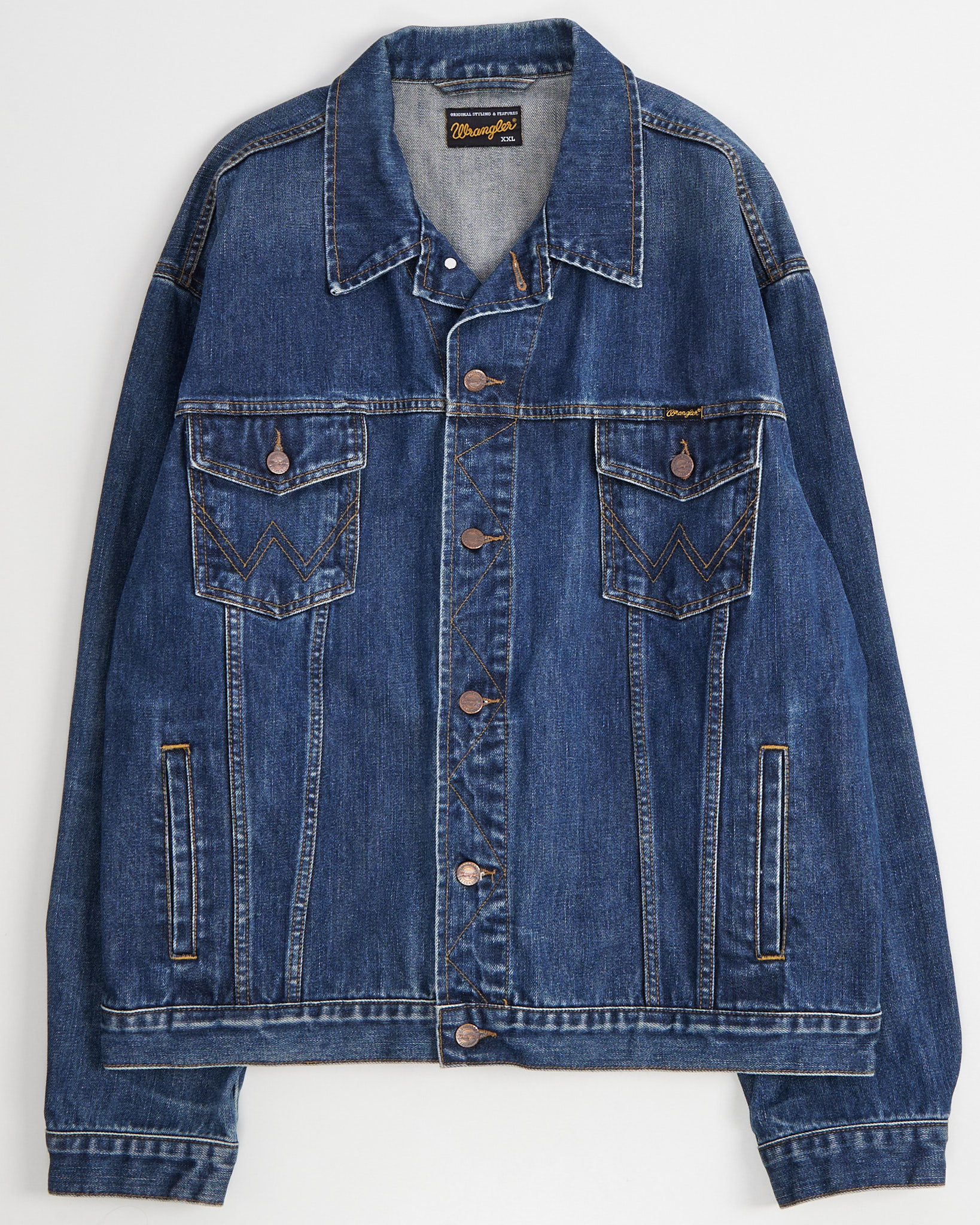 Куртка выполнена из плотного денима с естественным выцветанием по швам, винтажная фактура. Посадка свободная, с запасом по плечам и объему, подходит для многослойных образов. Аутентичные металлические кнопки и фирменная строчка