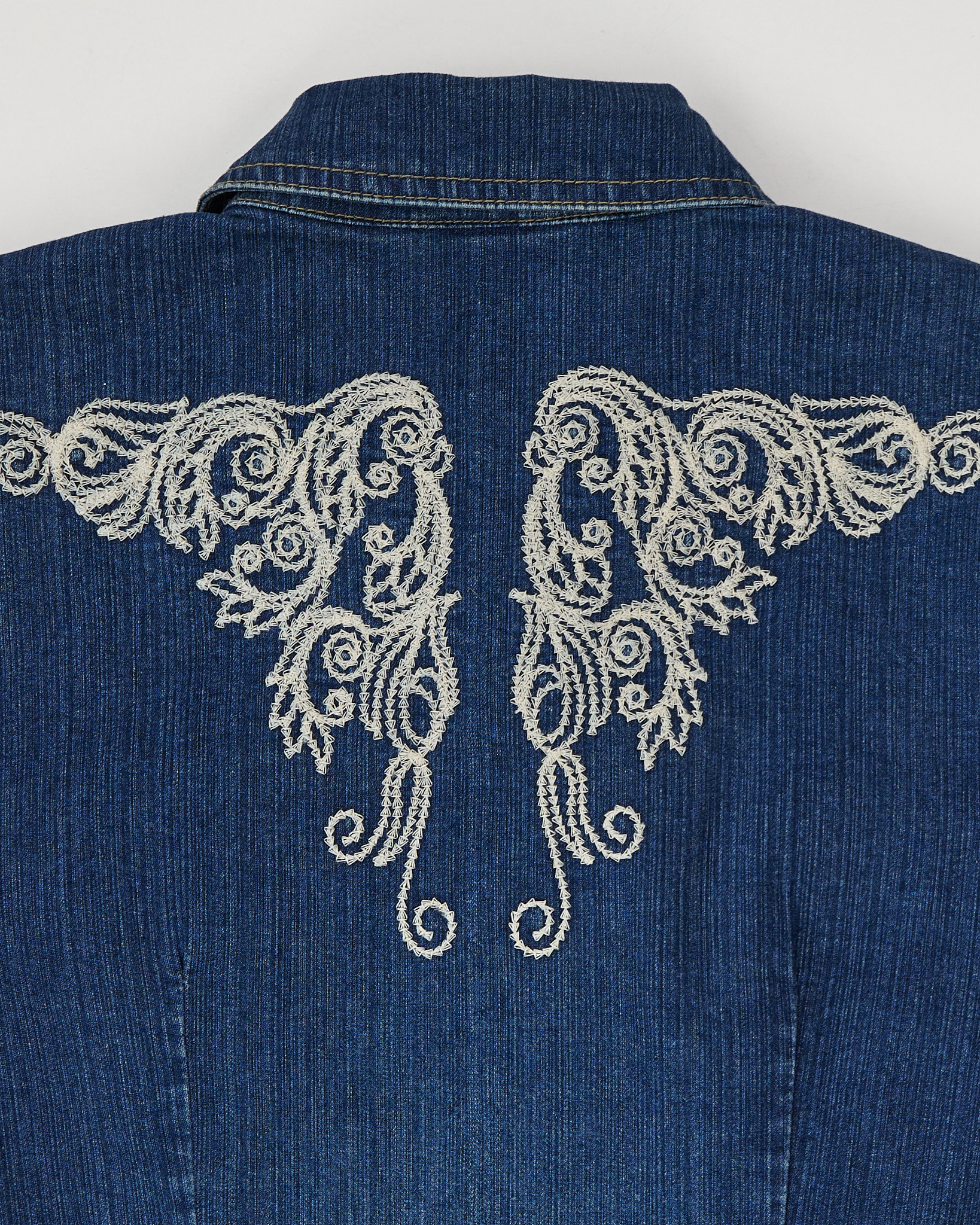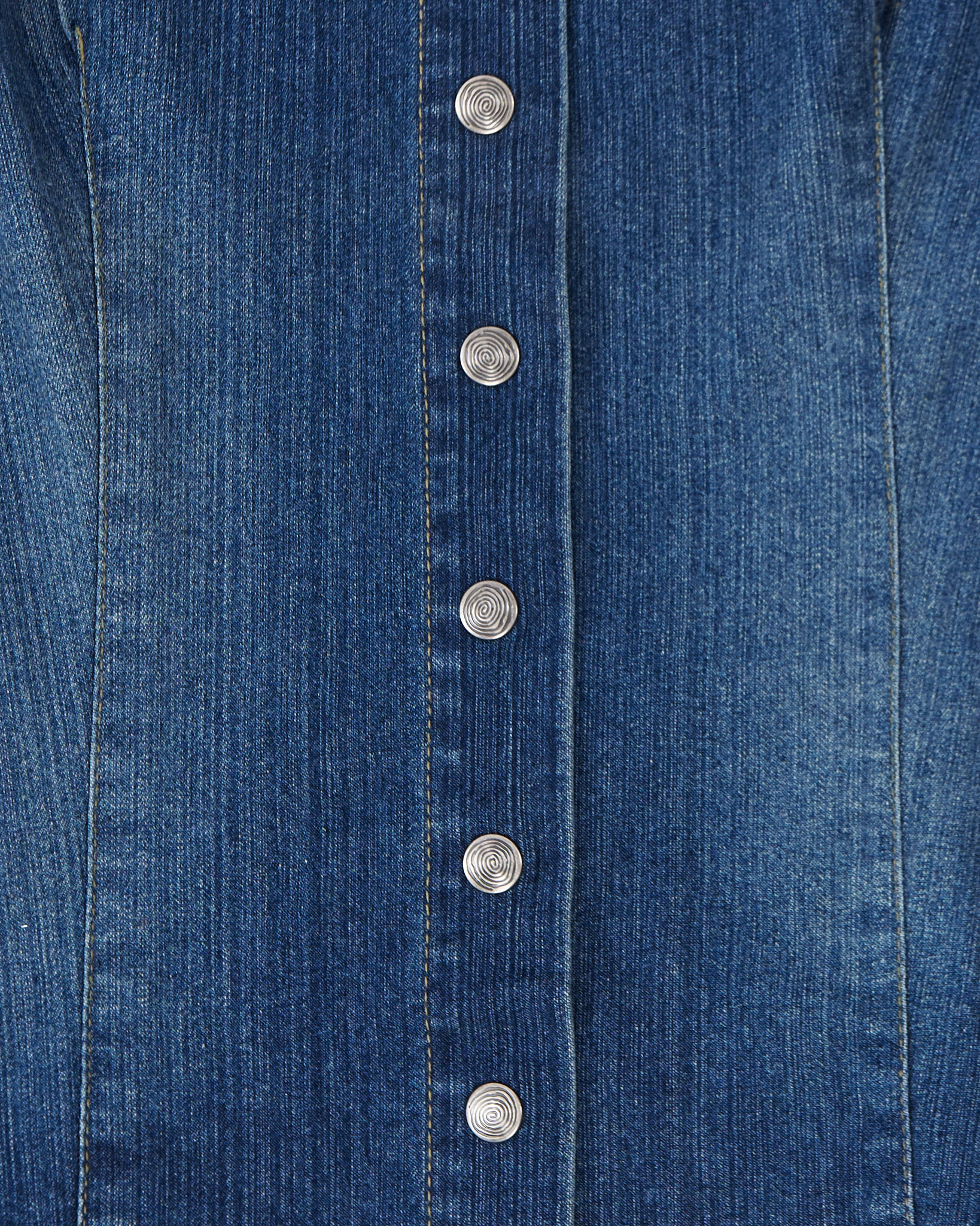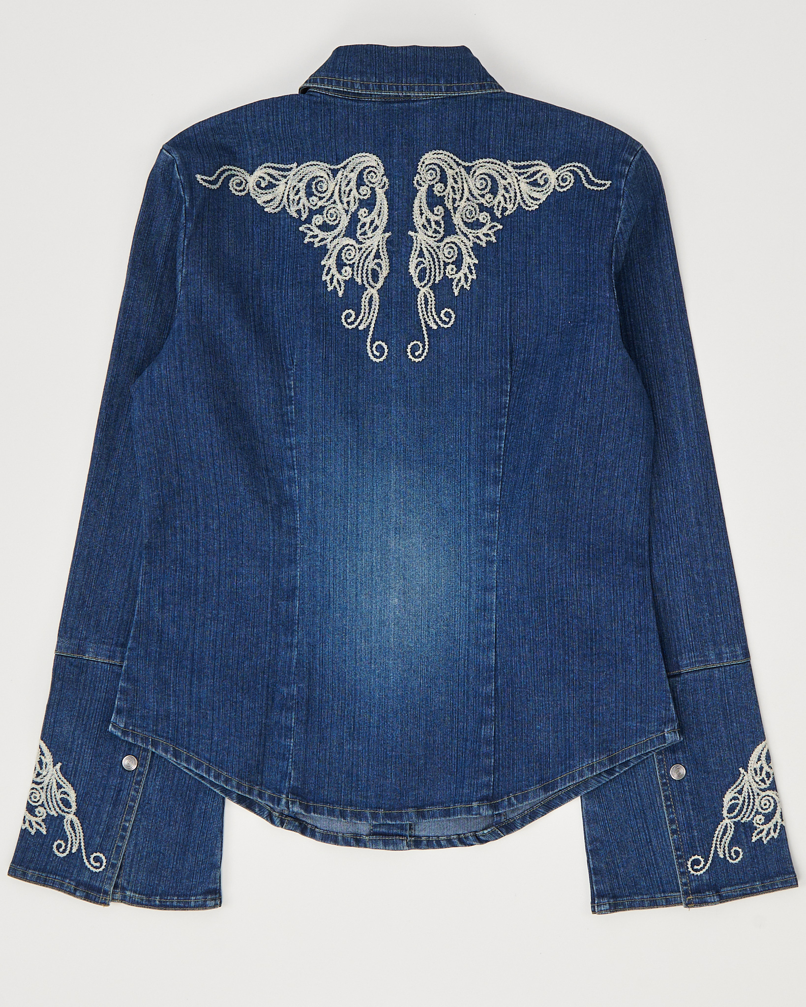 Джинсовая рубашка Explorer с вышивкой. Плотный деним, посадка прямая. Контрастная вышивка на спине и рукавах, металлические кнопки и выверенные швы.