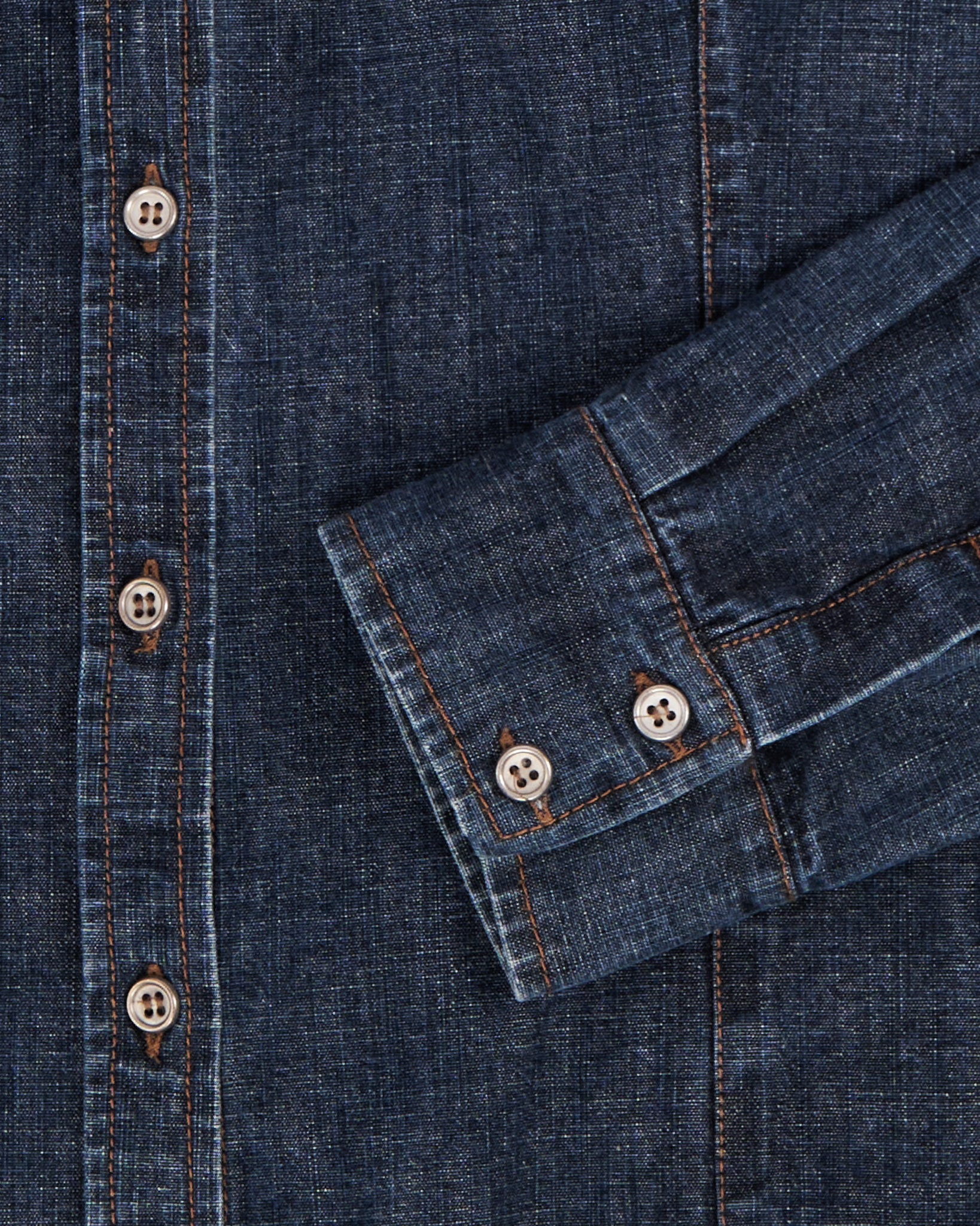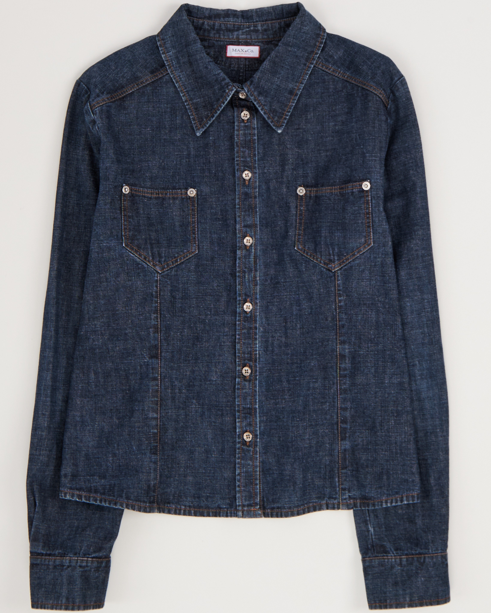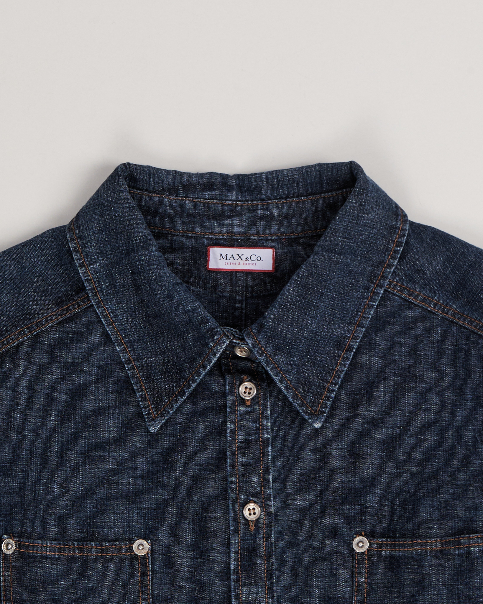 Джинсовая рубашка Max&Co из плотного хлопкового денима глубокого синего оттенка. Прямая посадка, аккуратный силуэт. Двойные нагрудные карманы и контрастная строчка.