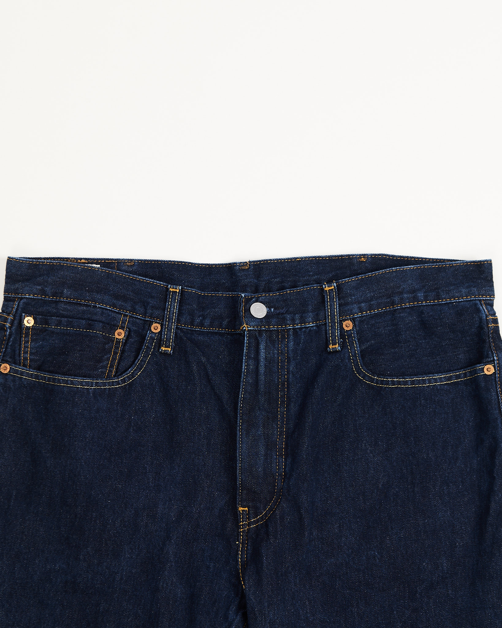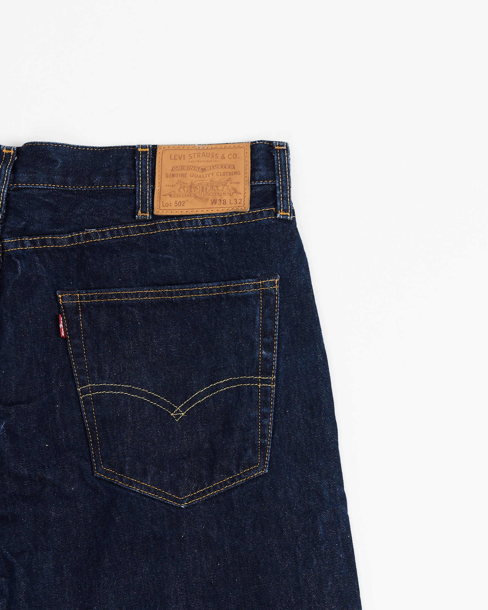 Классическая модель знаменитых мужских джинсов Levi’s 502™. Выполнены из прочного 100% хлопкового денима темно-синего цвета. Модель имеет прямой крой и классическую посадку на талии