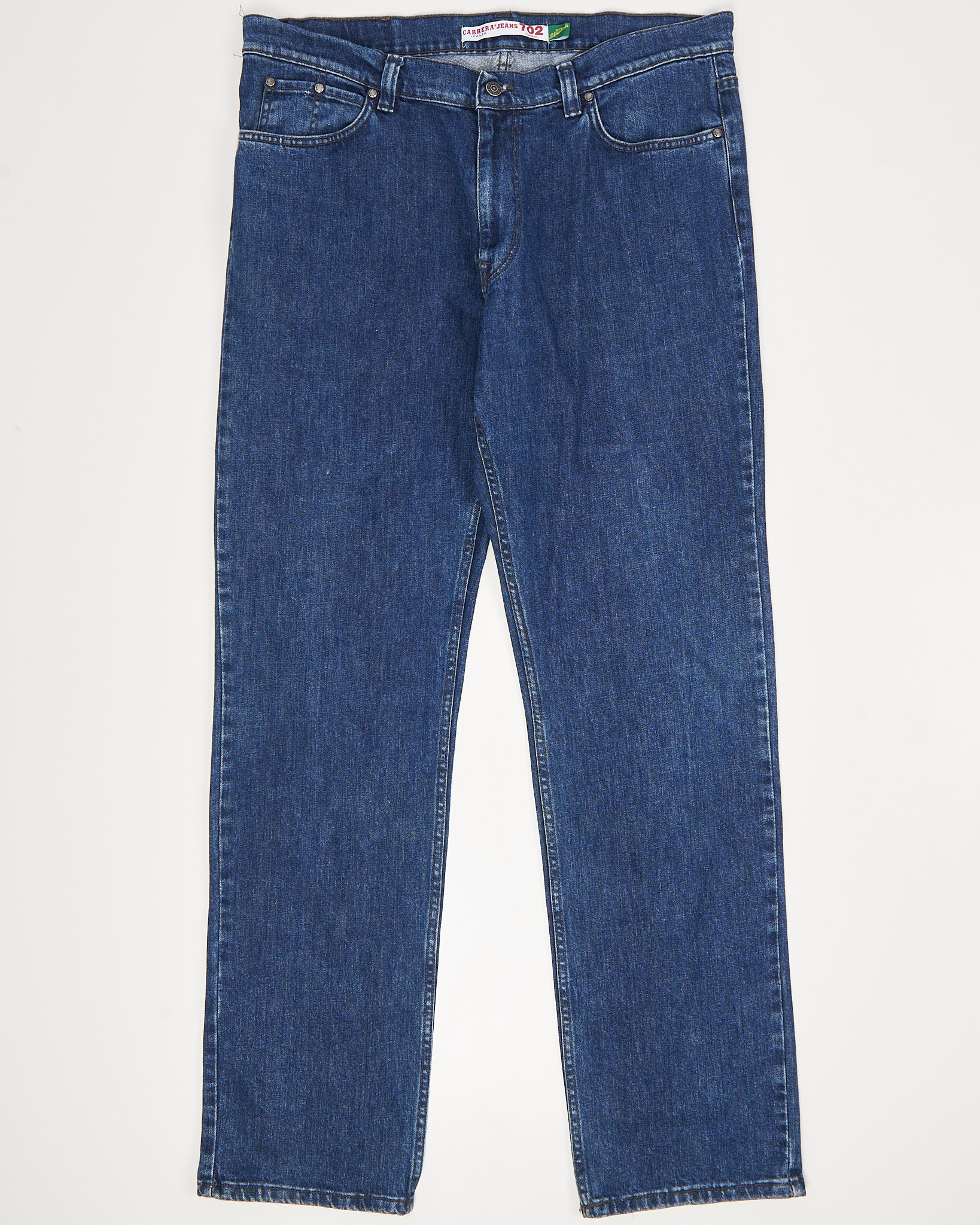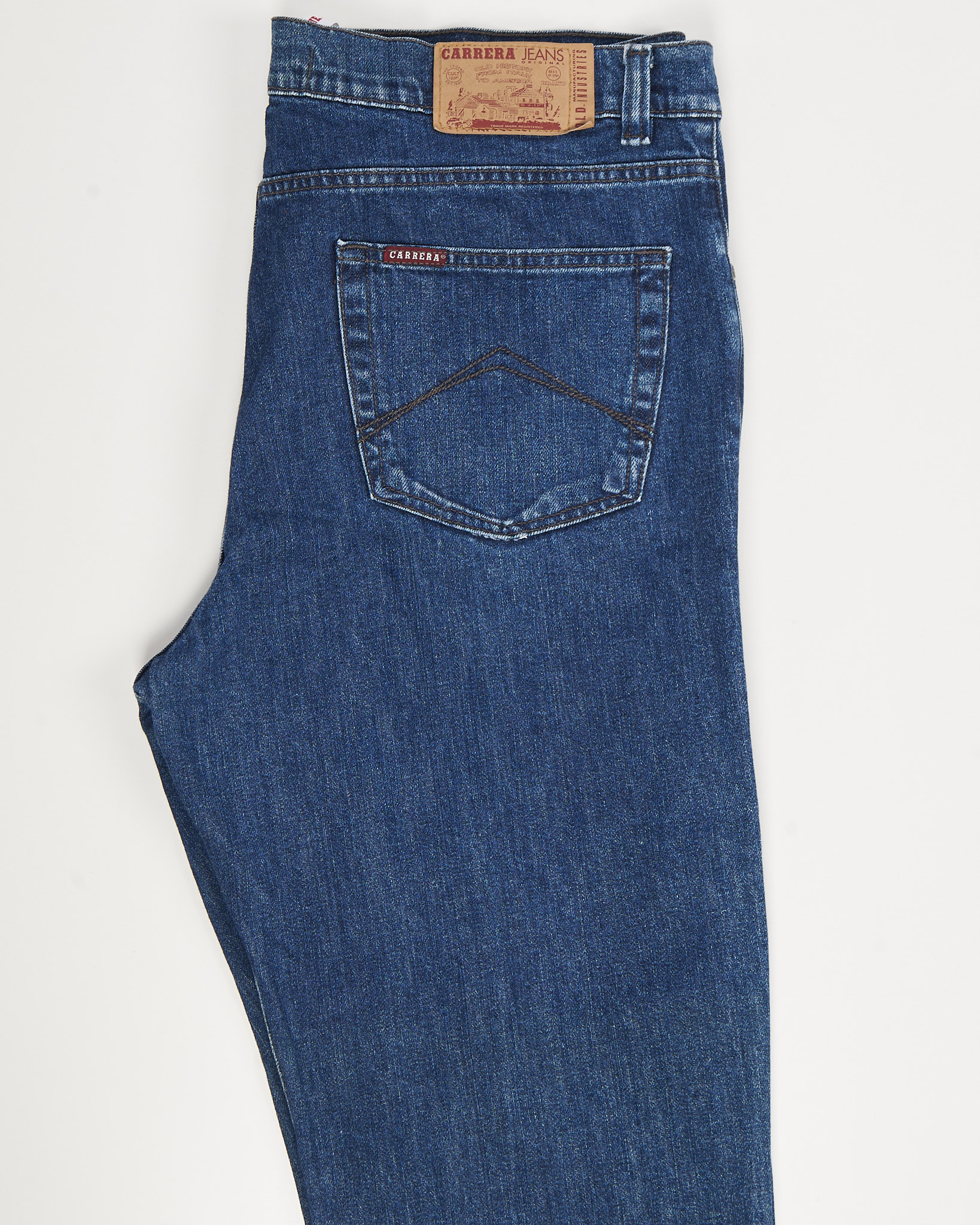 Синие джинсы из плотного денима. Модель 702 Comfort с прямыми штанинами. Фирменный кожаный патч Carrera на поясе