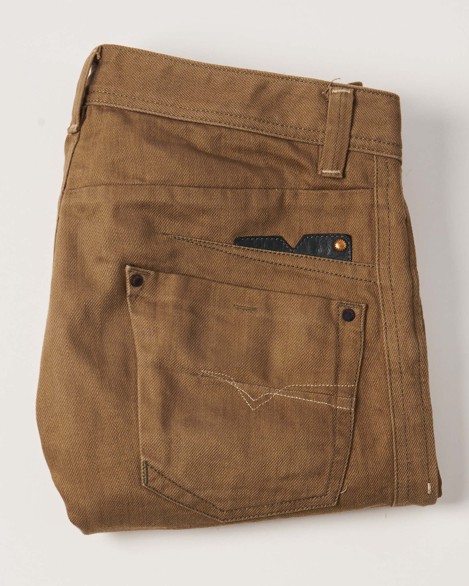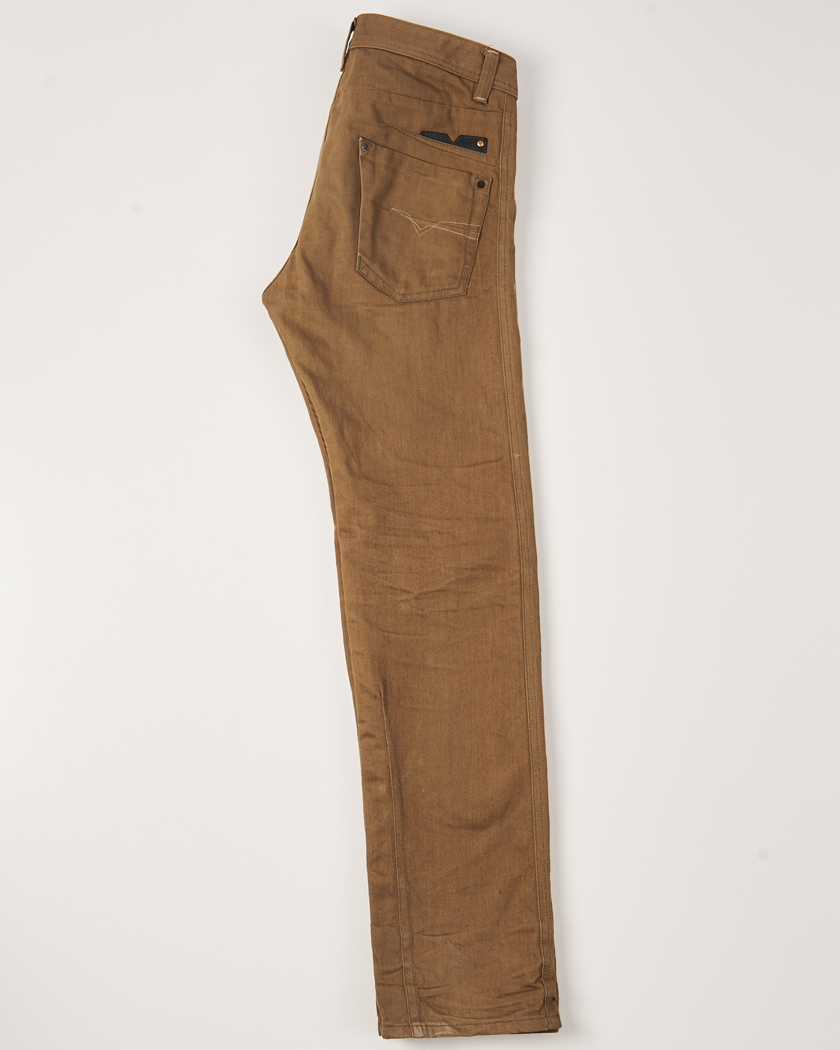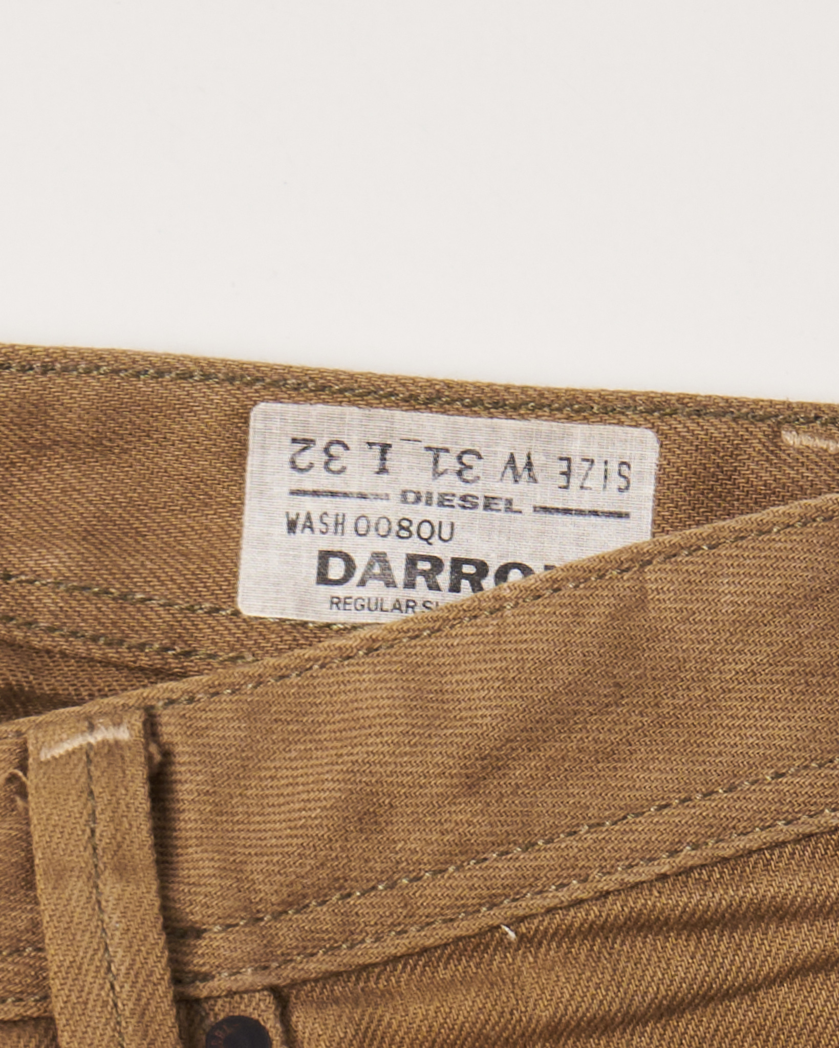 Брюки Diesel из 100% хлопка. Посадка прямая, комфортная по талии. Материал приятный на ощупь, хорошо держит форму в носке. Фирменная фурнитура с гравировкой бренда.