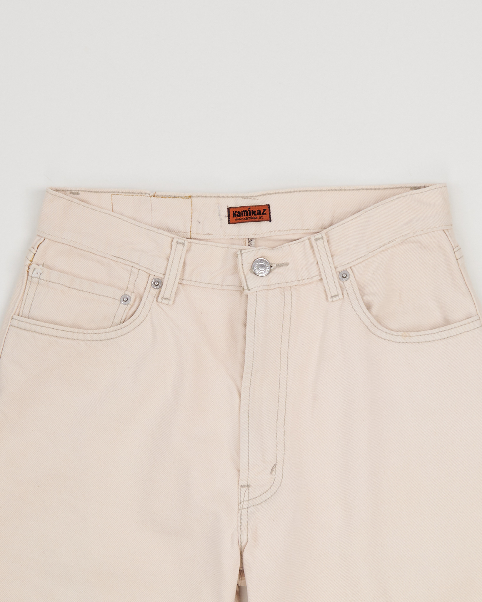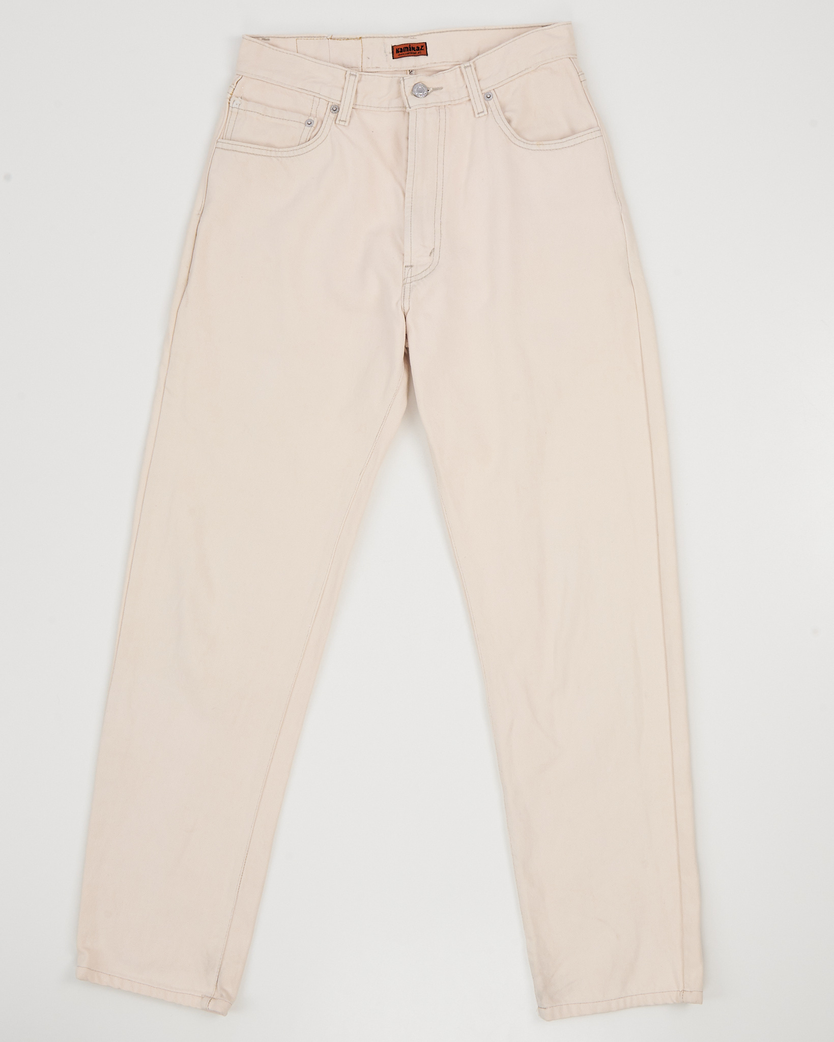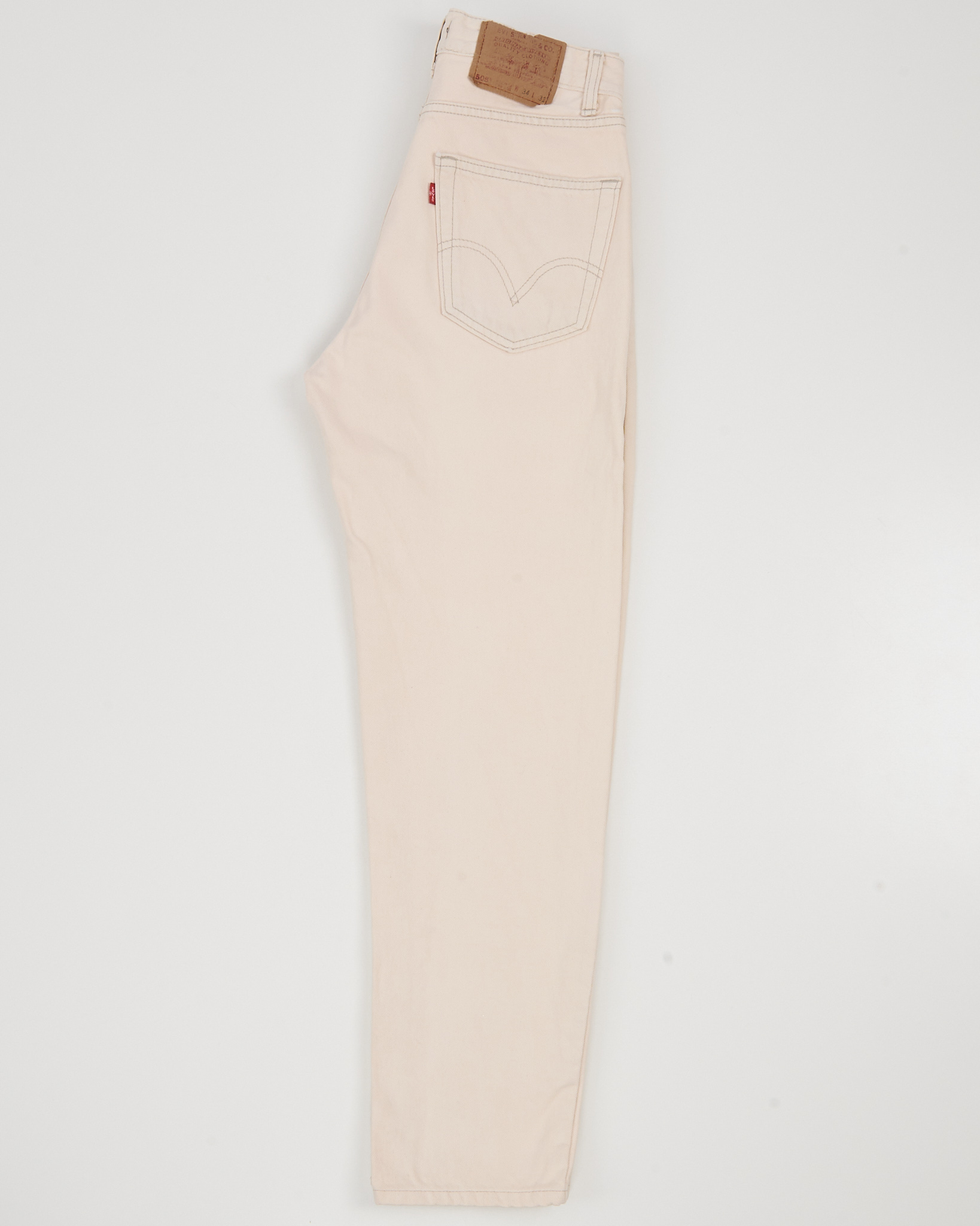 Джинсы Levi’s 505 из плотного хлопкового денима светлого кремового оттенка. Прямой крой, классическая конструкция с пятью карманами и фирменной строчкой на заднем кармане.