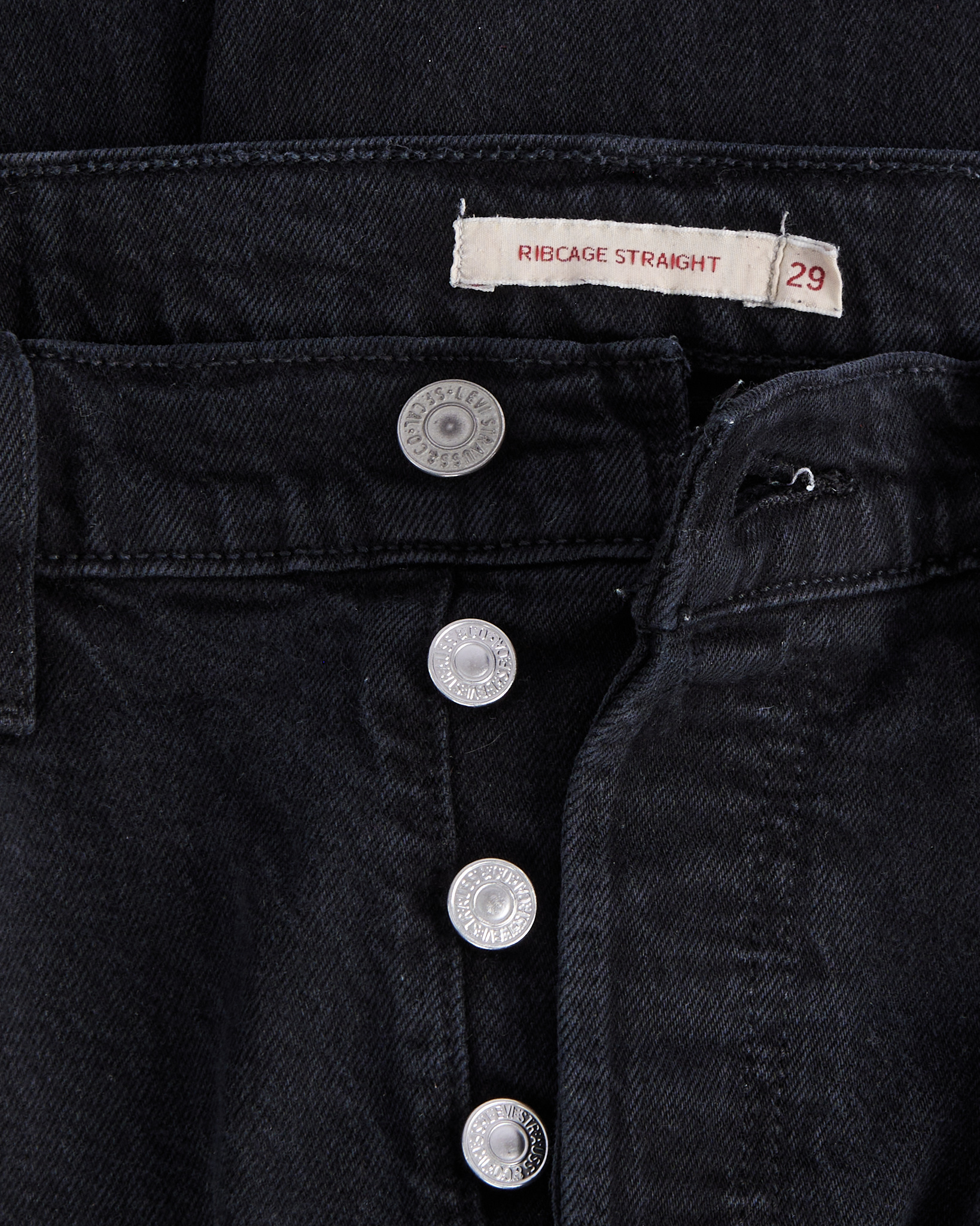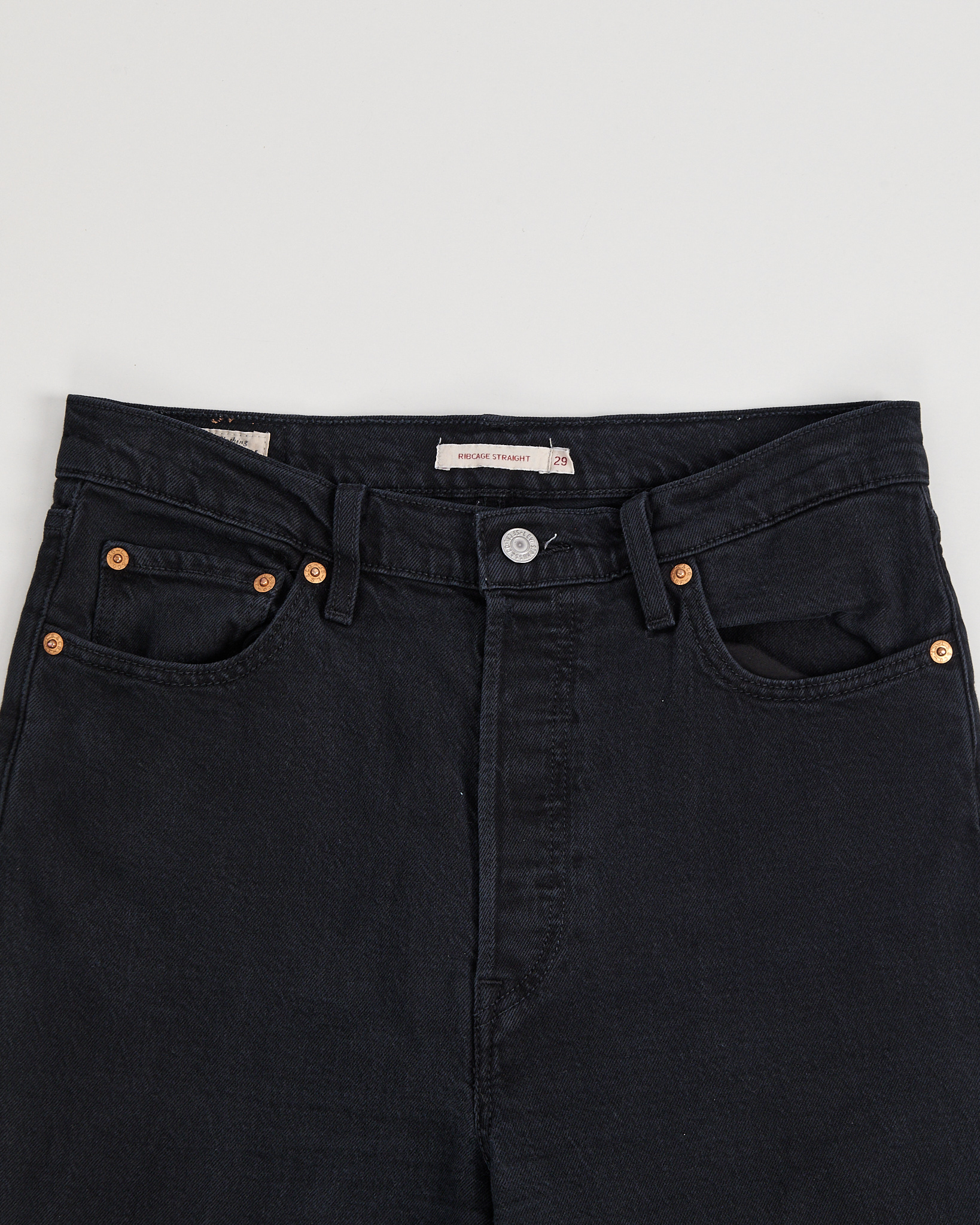 Джинсы Levi’s Ribcage Straight из плотного хлопкового денима. Высокая посадка, фирменная фурнитура, функциональные карманы по бокам.