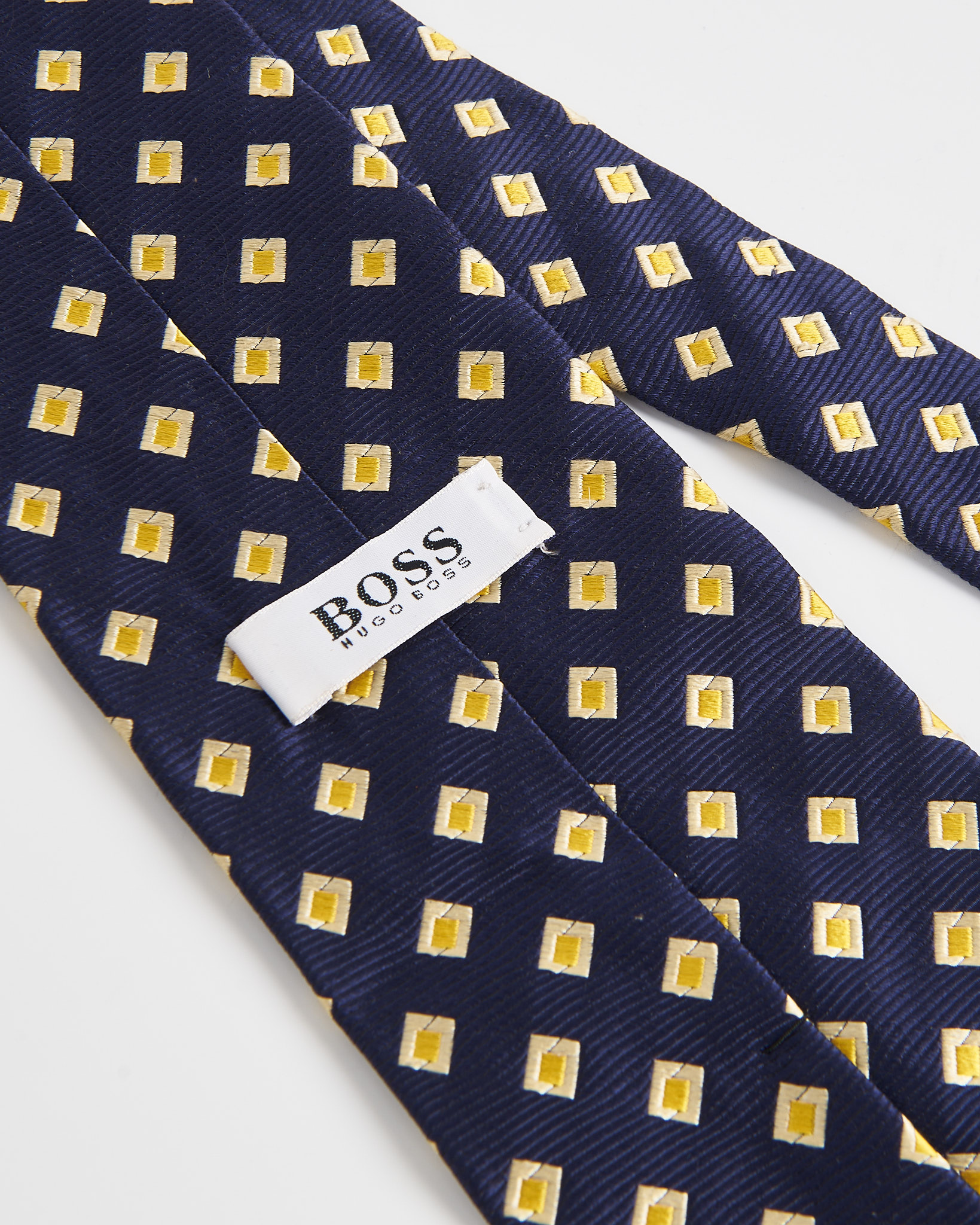 Галстук Hugo Boss из плотного шелка. Темно-синий фон в сочетании с контрастным орнаментом.