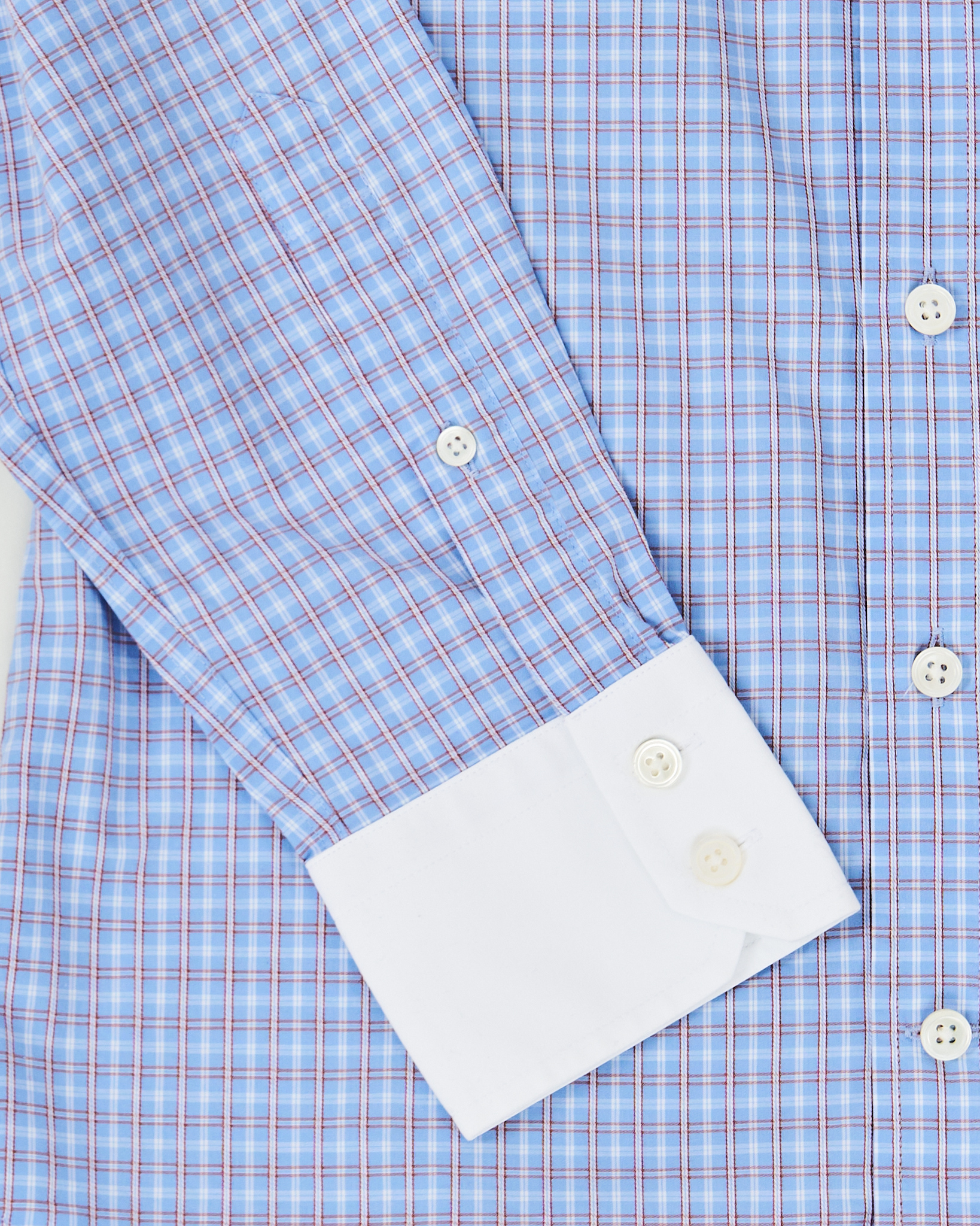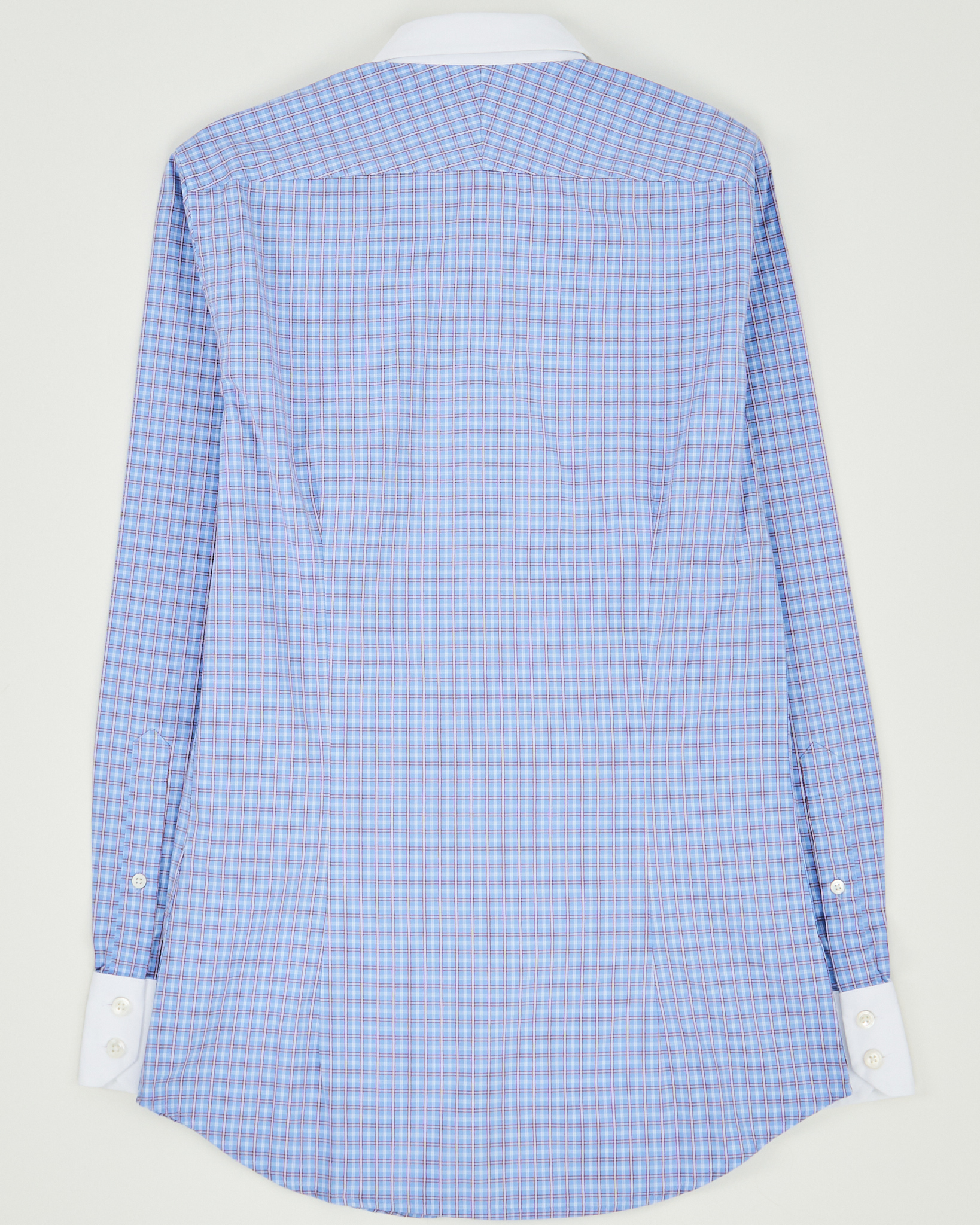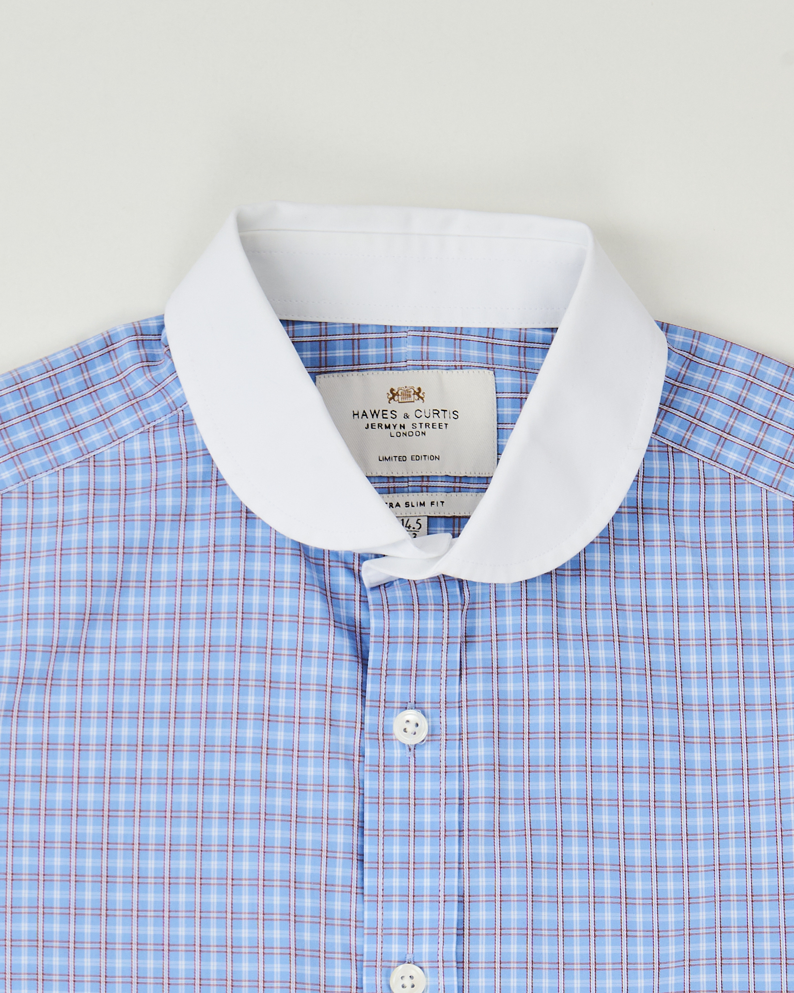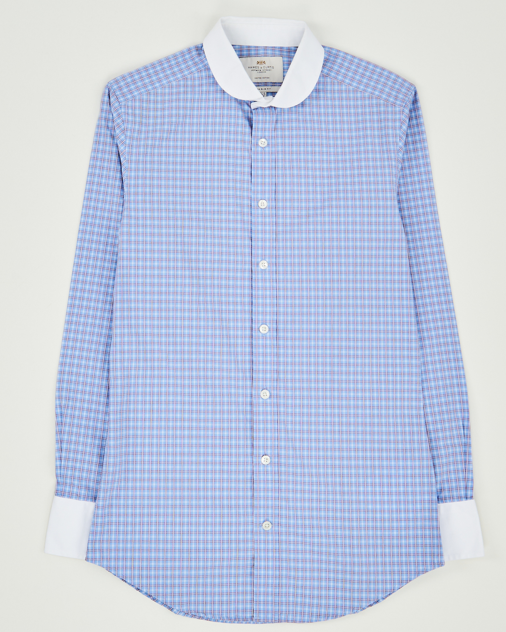 Рубашка из хлопка от Hawes & Curtis.  Посадка slim fit, аккуратно повторяет силуэт. Контрастный белый воротник и манжеты, рисунок в мелкую клетку.