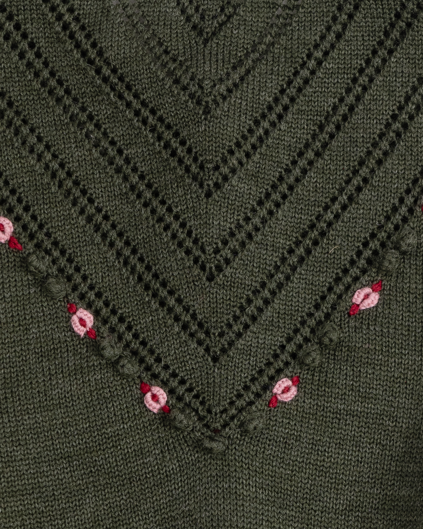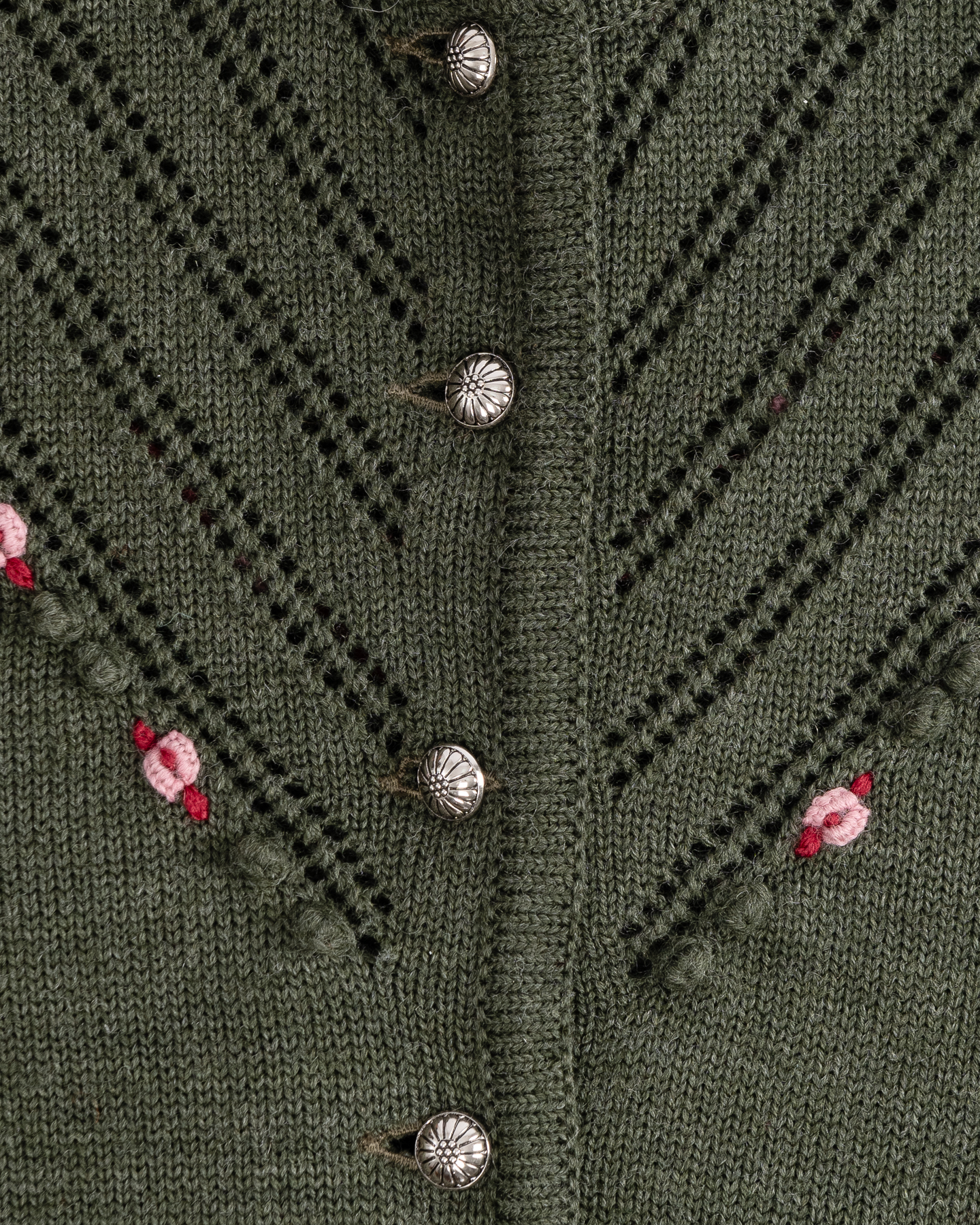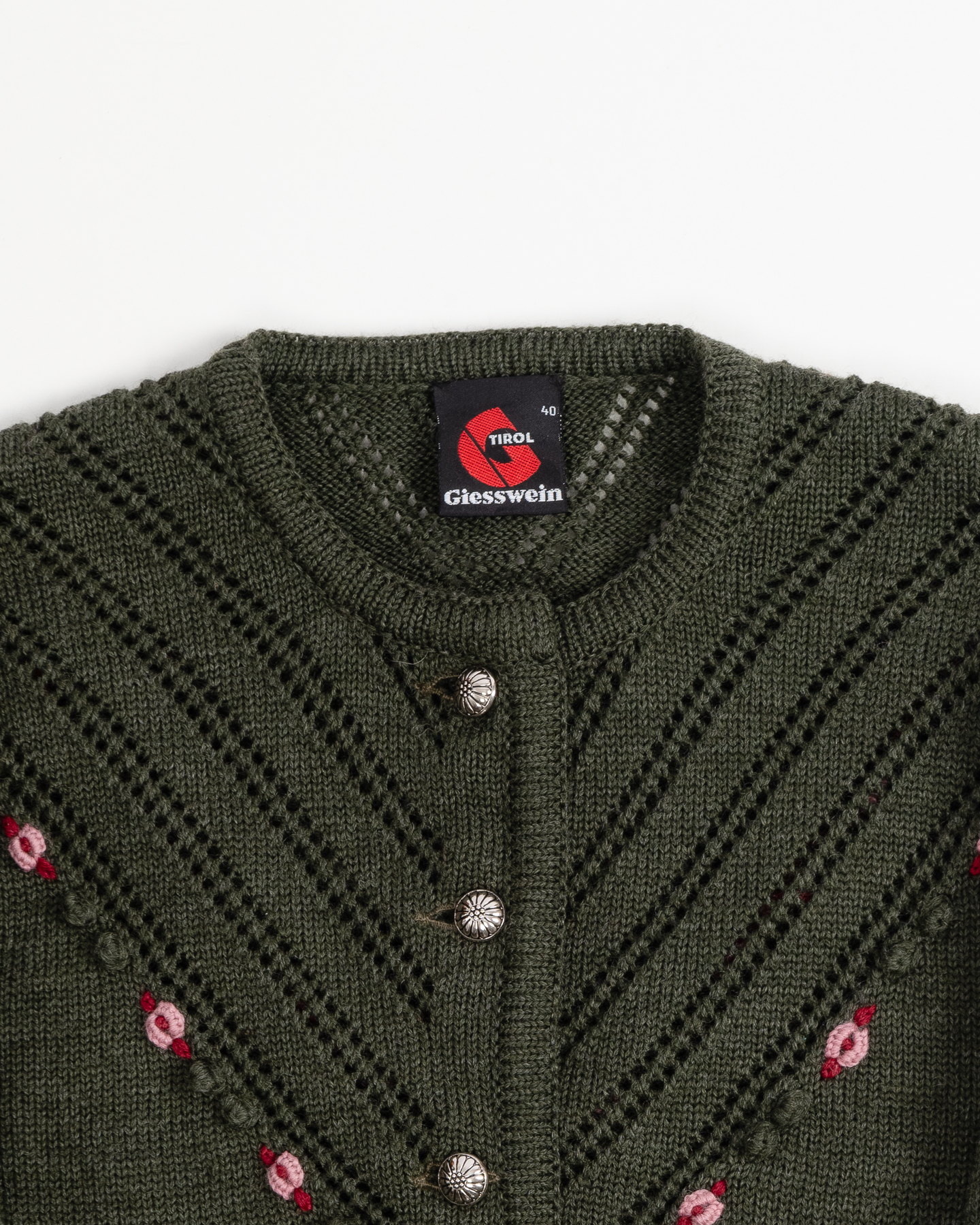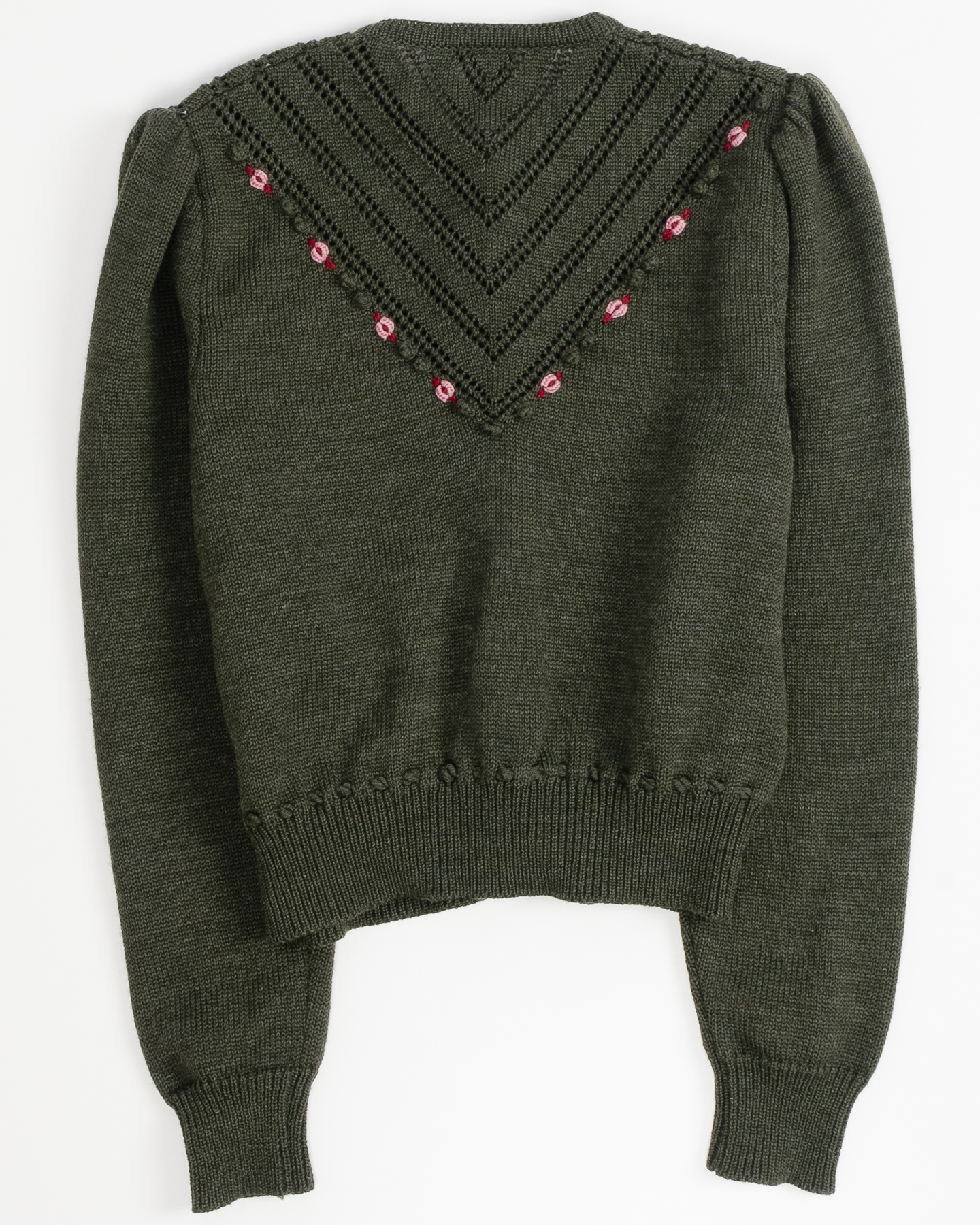 Кардиган глубокого зеленого оттенка с аккуратной вышивкой. Мягкая 100% натуральная шерсть. Посадка прямая с четкой линией плеч и эластичными манжетами.Контрастные металлические пуговицы
