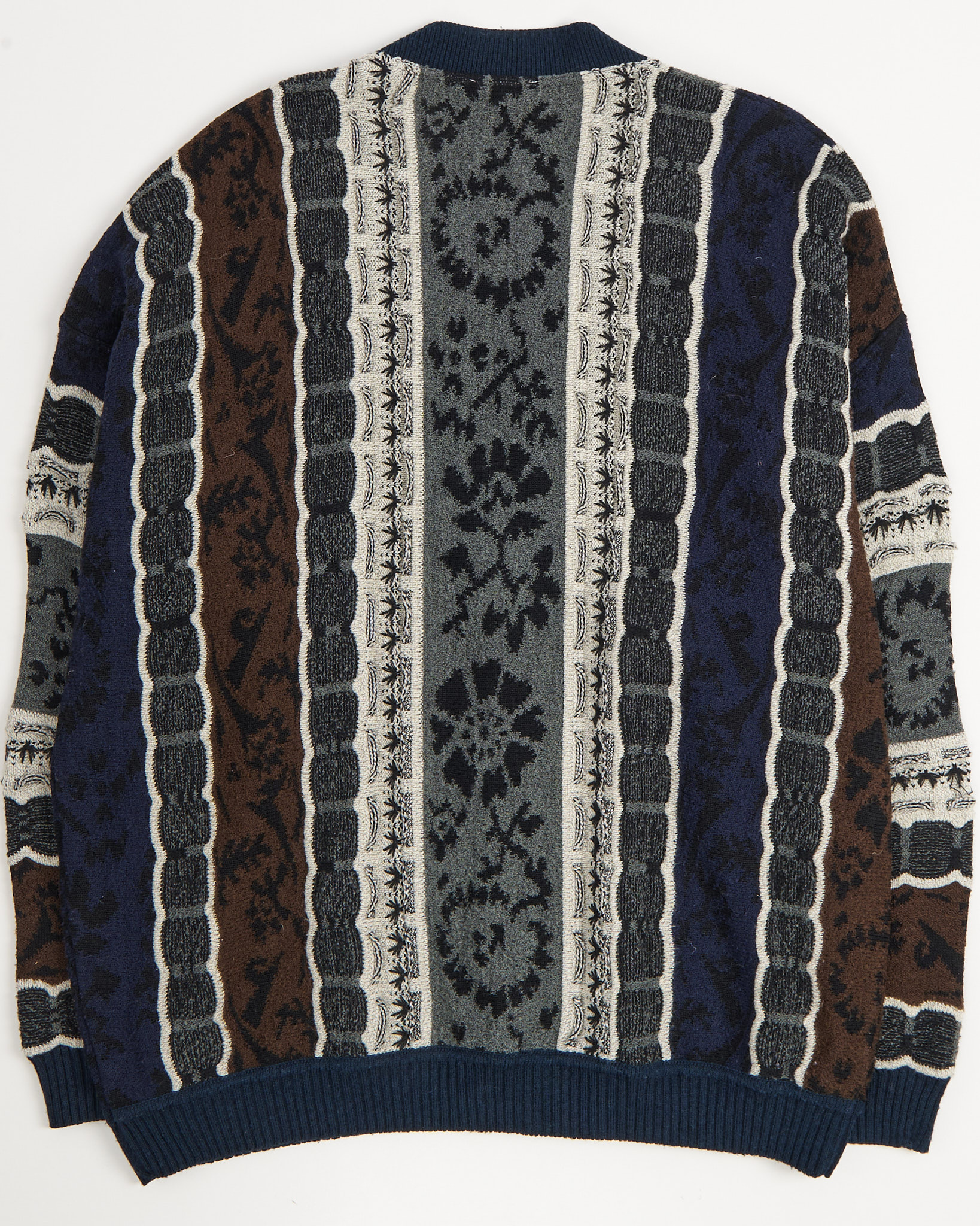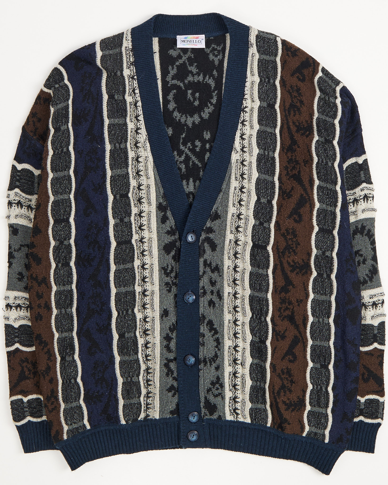 Винтажный кардиган из шерсти. Вертикальные полосы разной вязки, свободный крой, комфортная посадка.