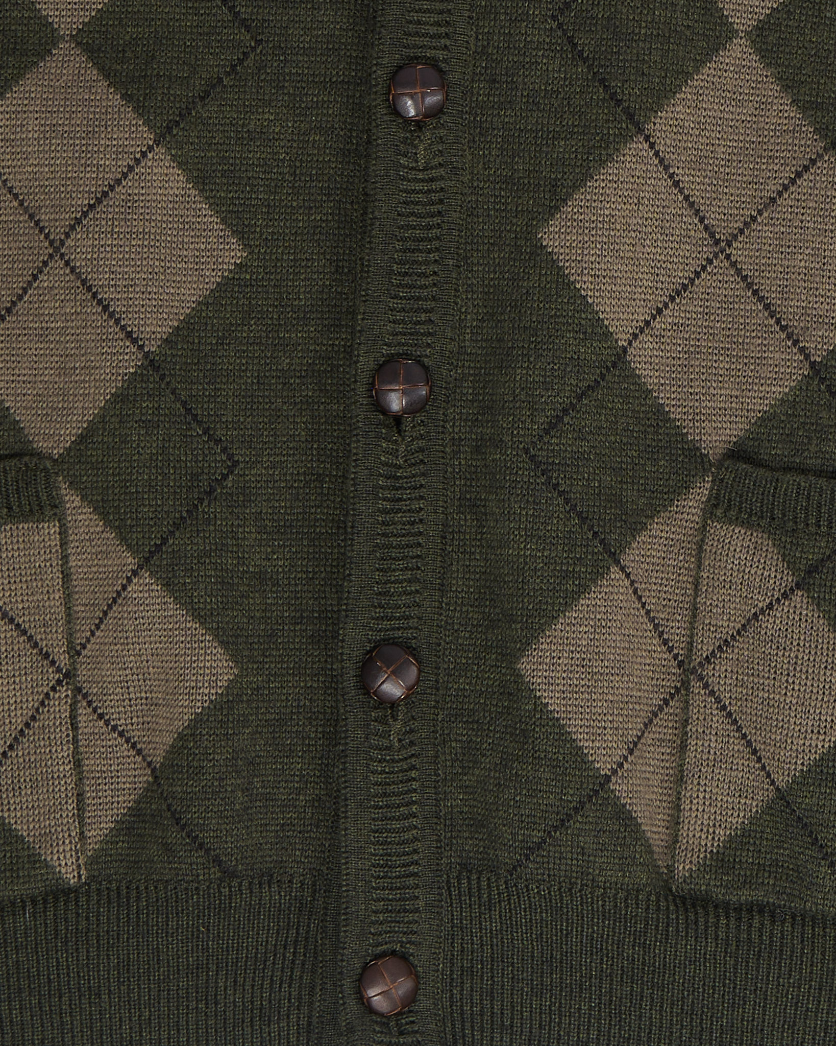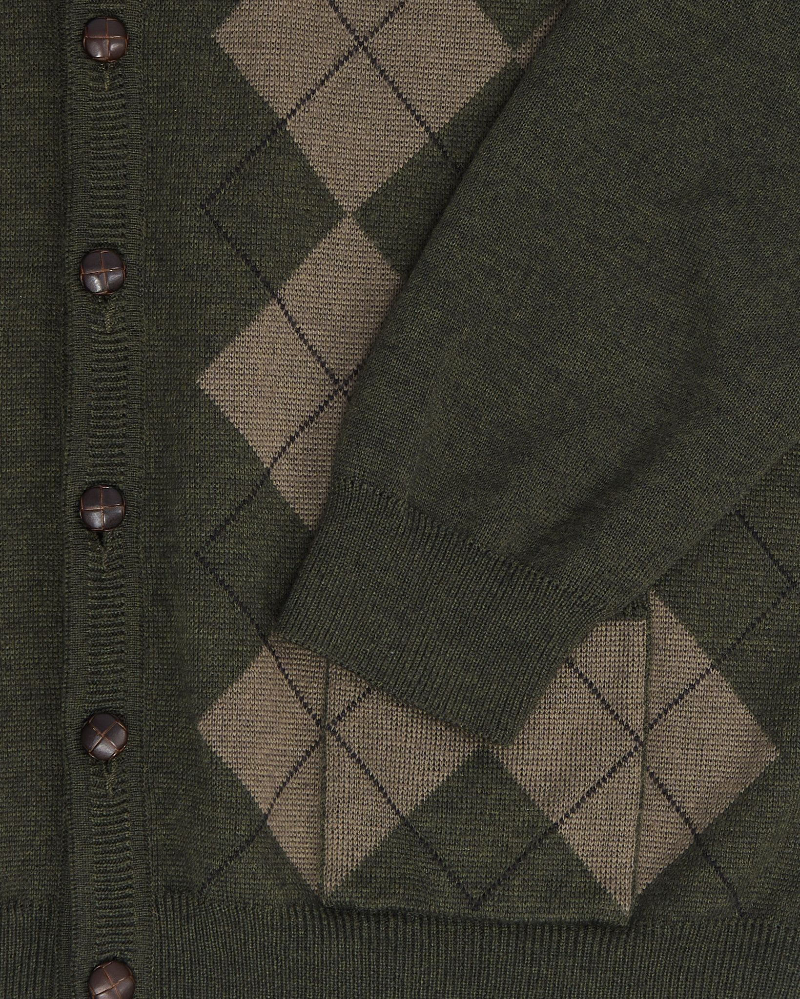 Модель из 50% шерсти. Посадка свободная, создаёт аккуратный силуэт без излишней объёмности. Арgyle-узор в спокойной палитре.