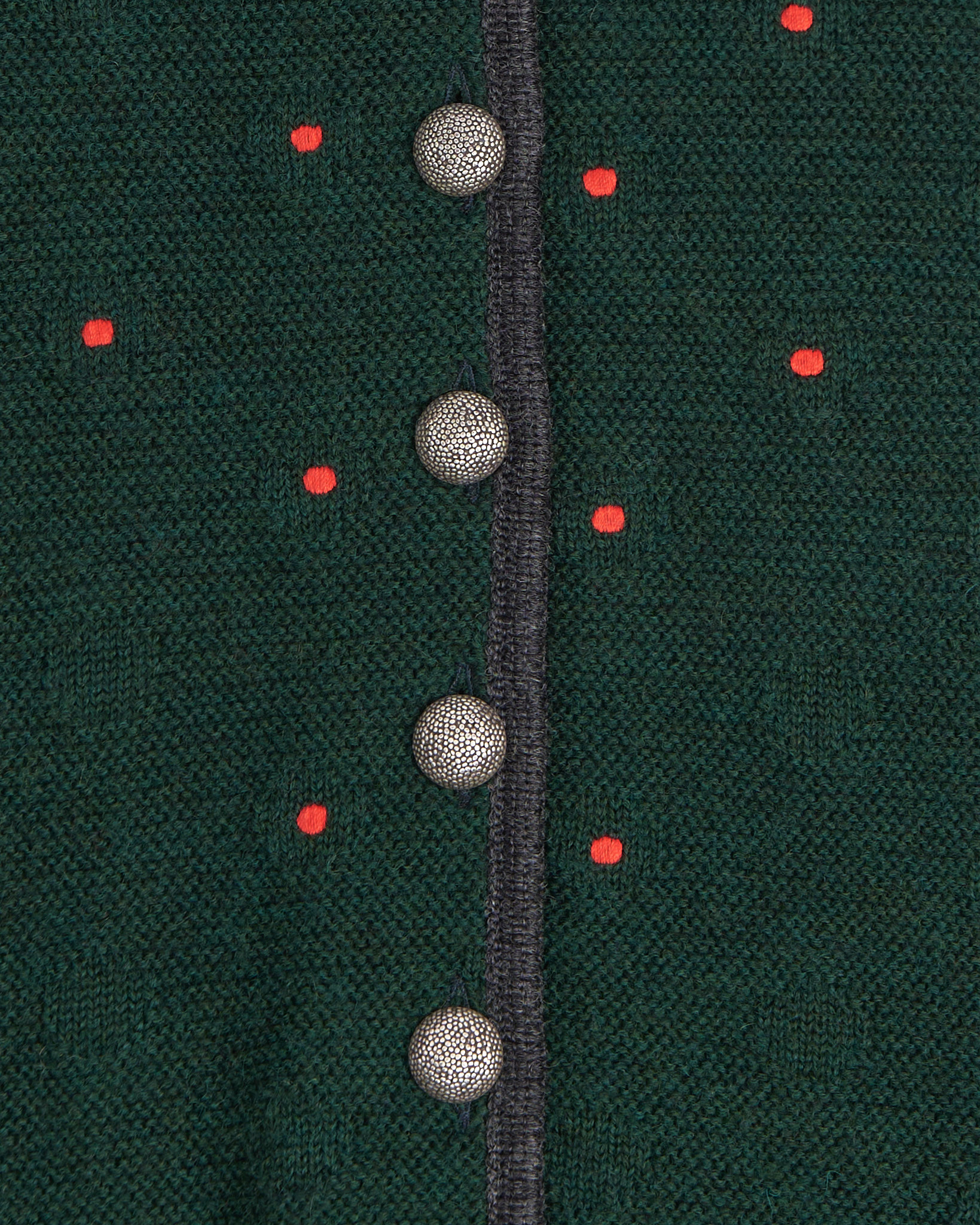 Кардиган из 100% натуральной шерсти, австрийское производство. Глубокий зеленый оттенок и контрастная красная вышивка, металлические фактурные пуговицы.