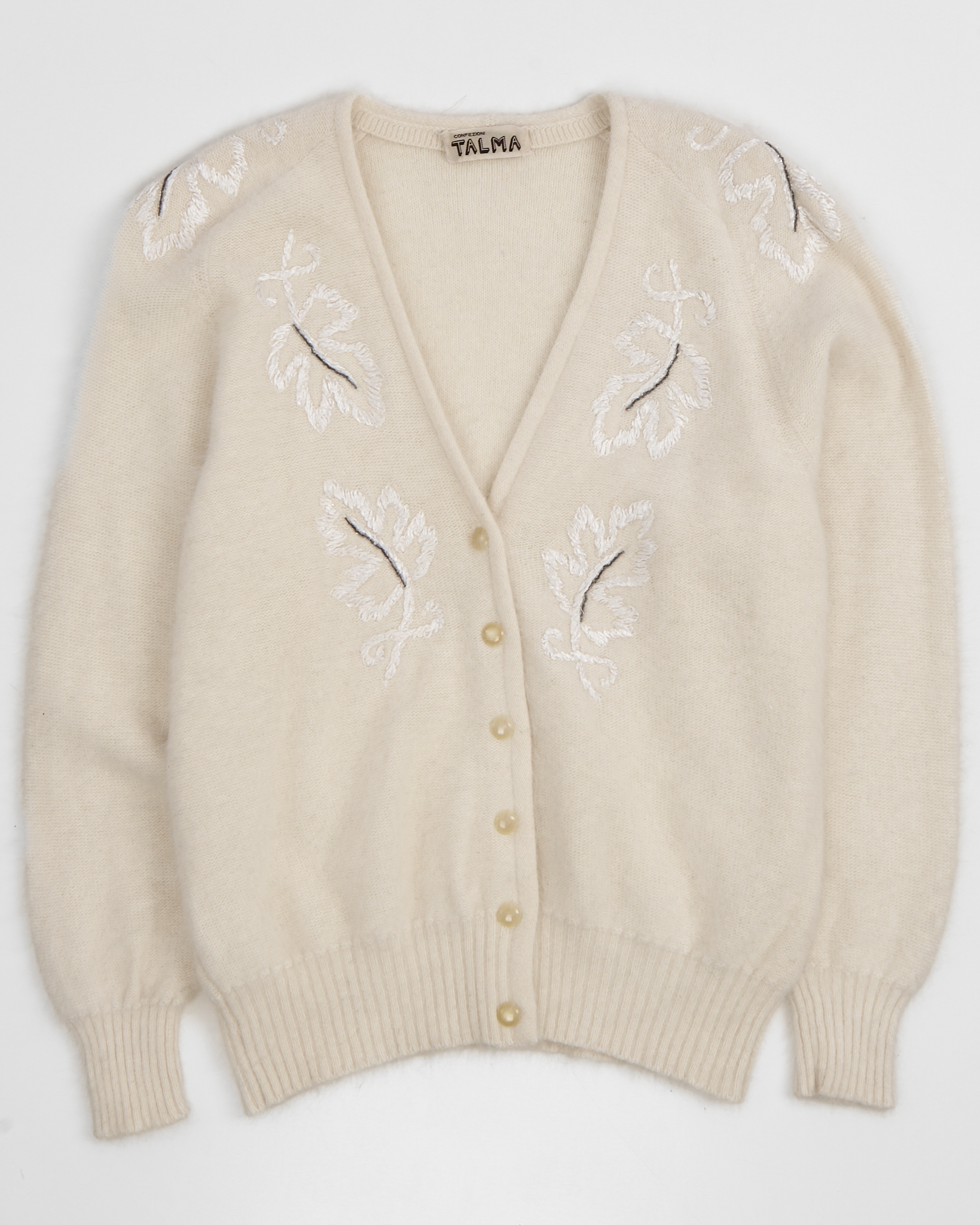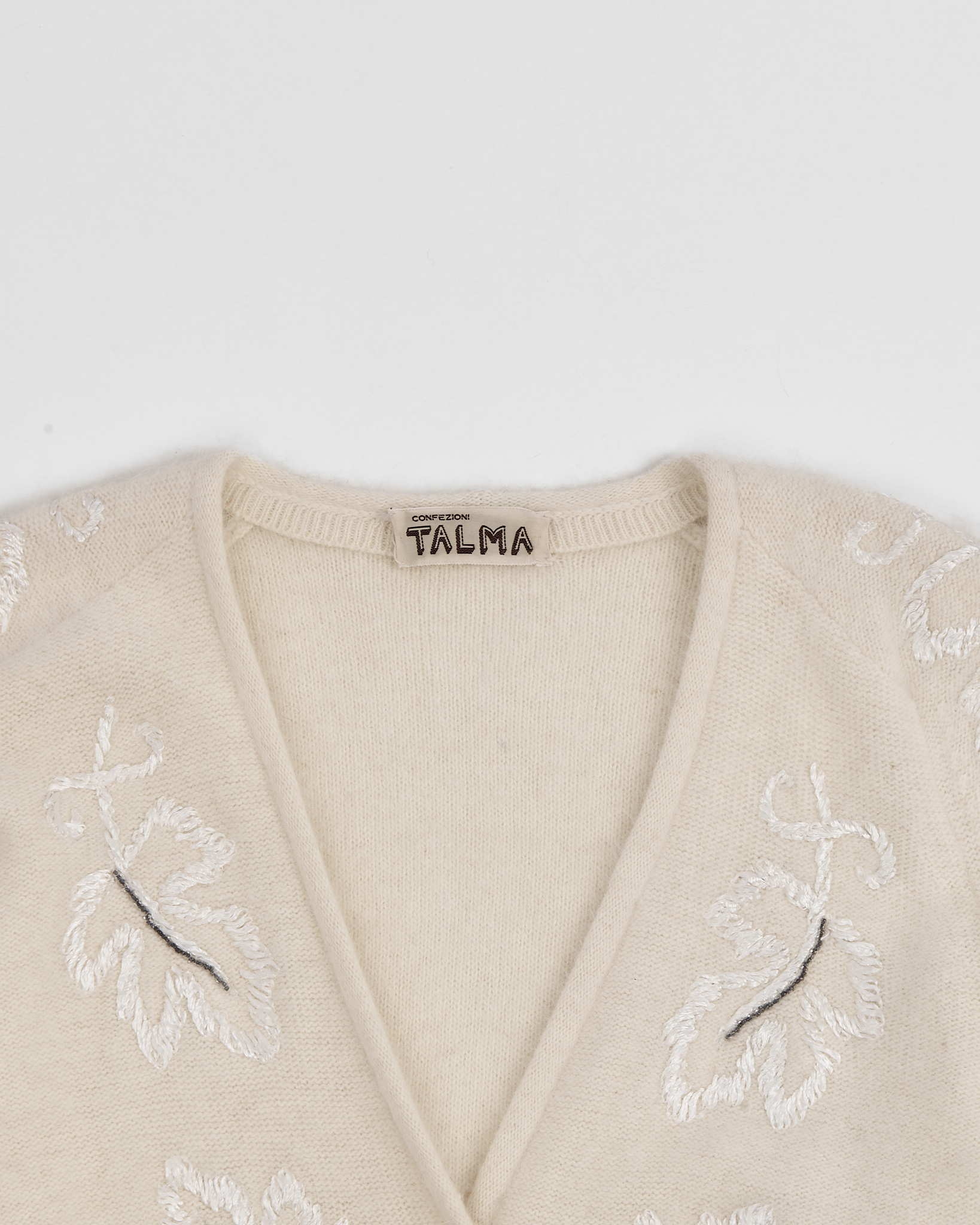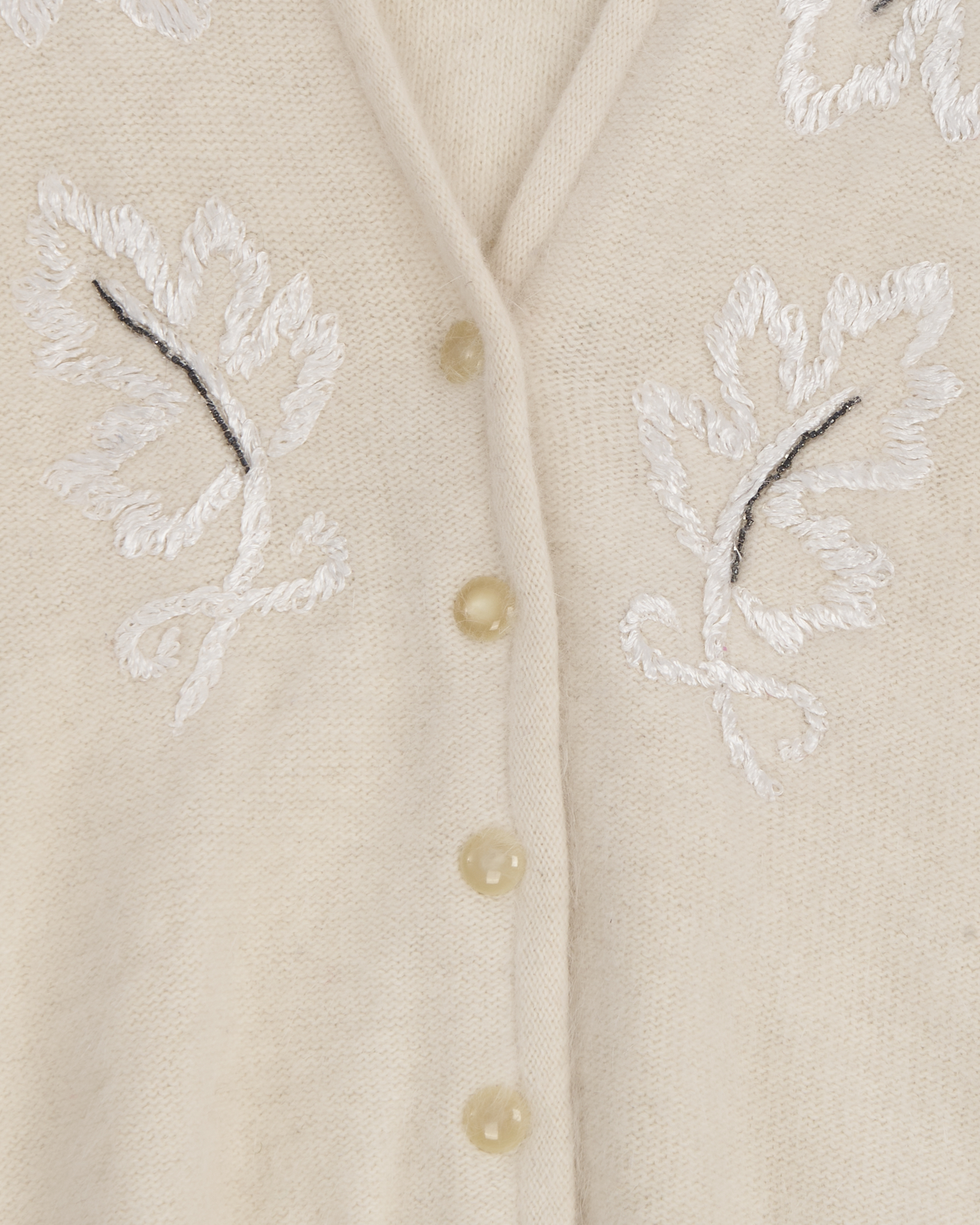 Мягкий кардиган TALMA выполнен из смеси шерсти и ангоры. Прямой силуэт с аккуратной посадкой по плечам, вышивка в виде листьев на плечах и груди.