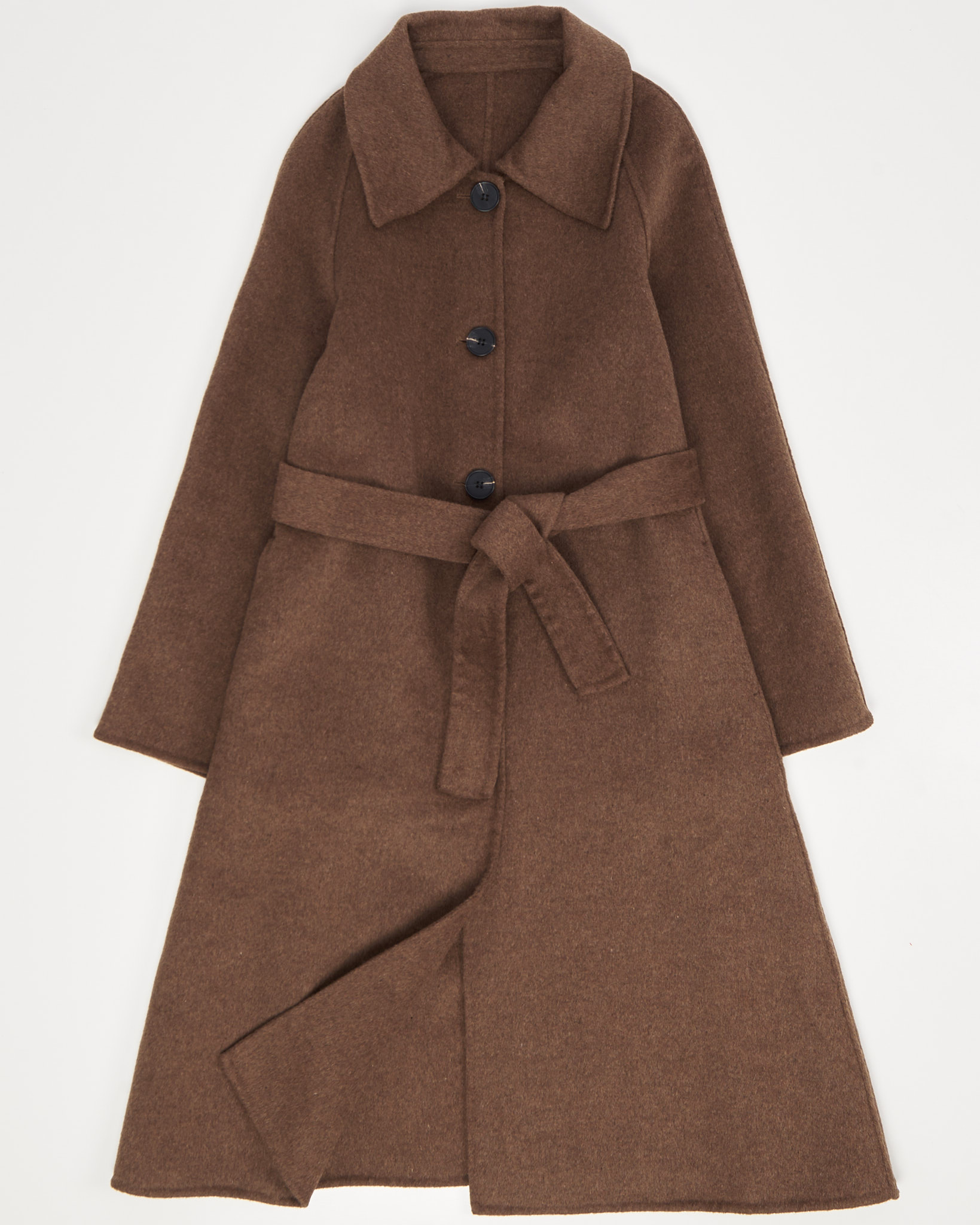 Выполнено из 100% натуральной шерсти. Приталенный силуэт с поясом, подчеркивает талию. Классический отложной воротник