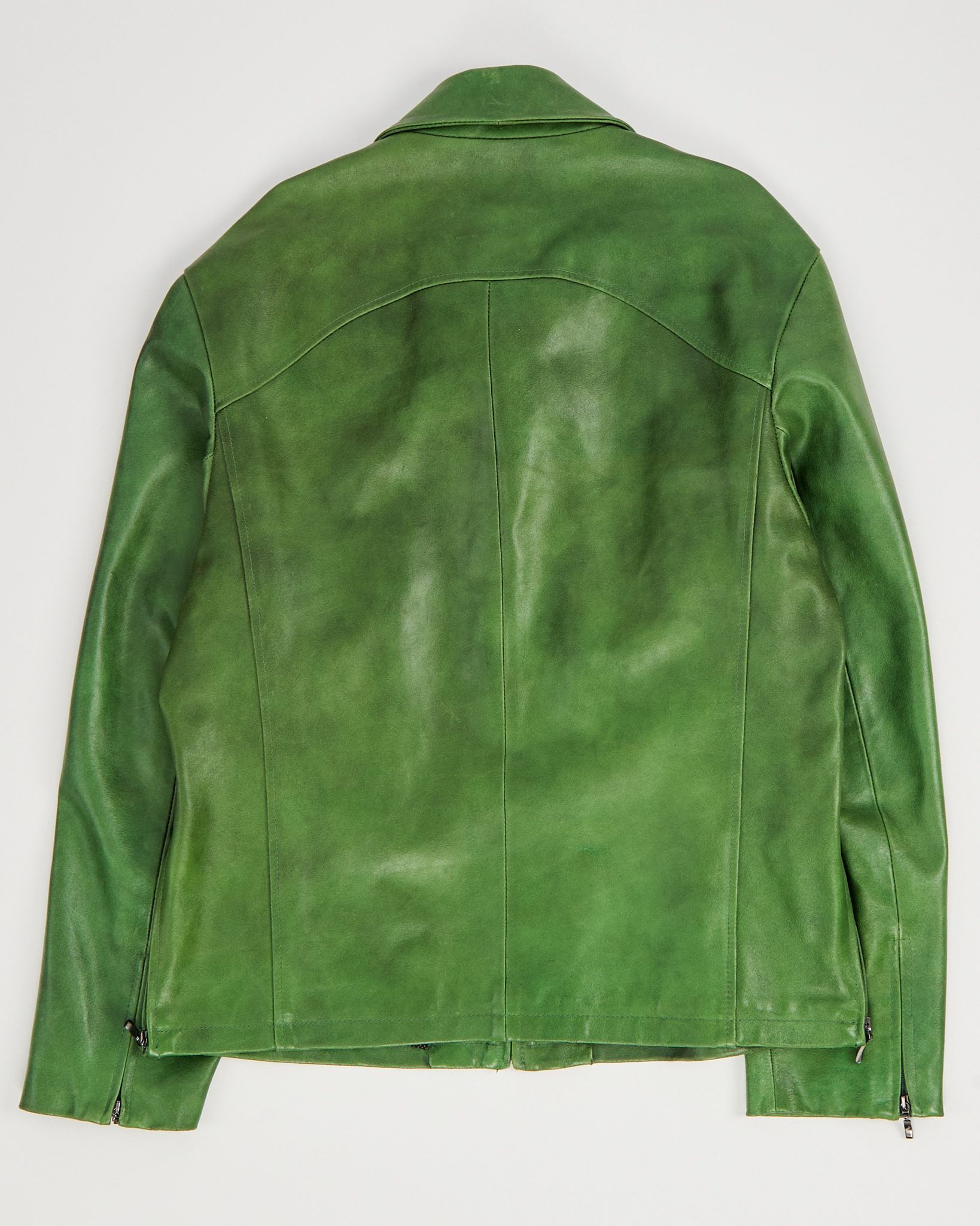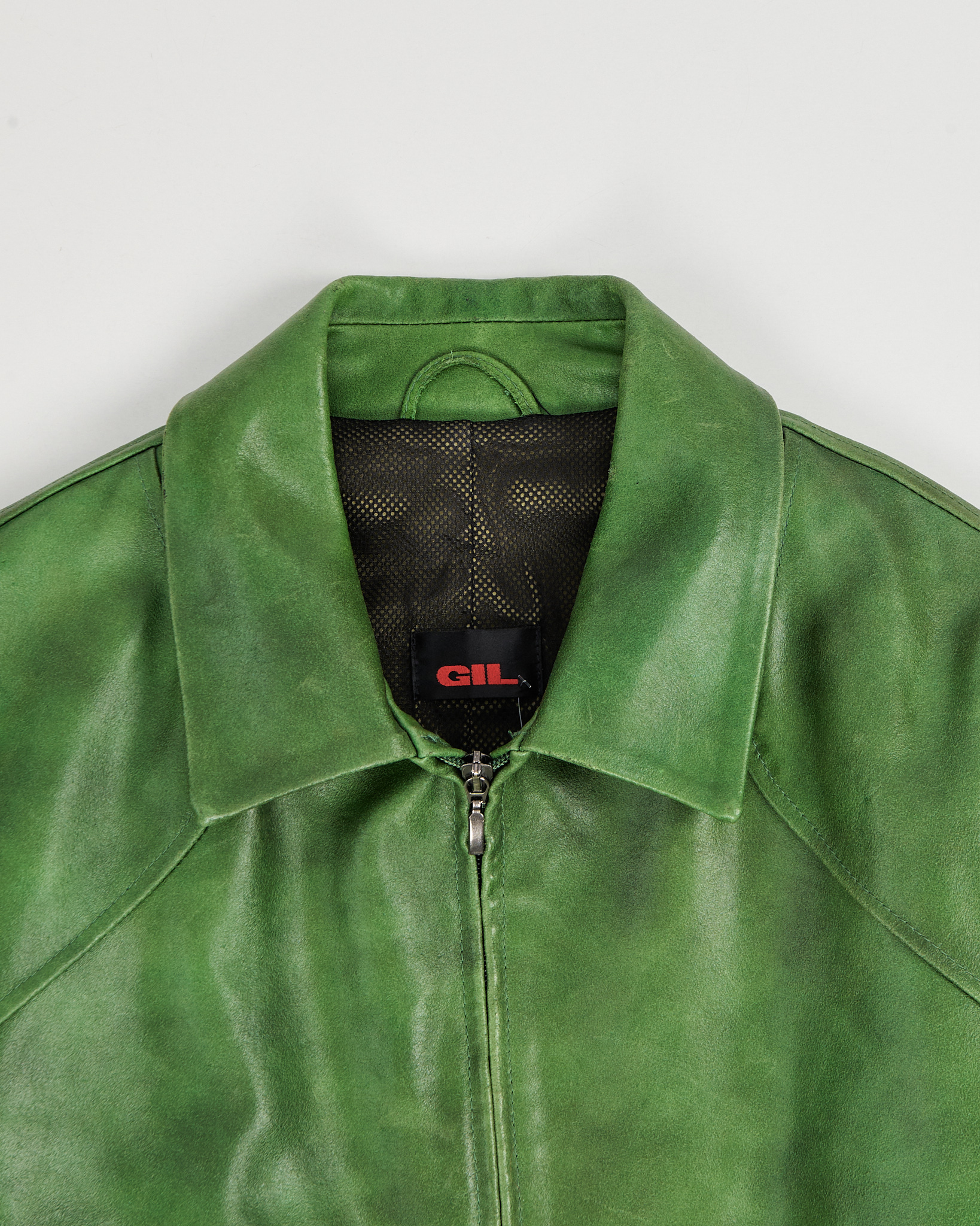 Куртка GIL из натуральной кожи насыщенного зелёного оттенка. Прямой крой, удобная застежка на молнию, аккуратные карманы и широкий воротник. Акцентные замки по бокам.