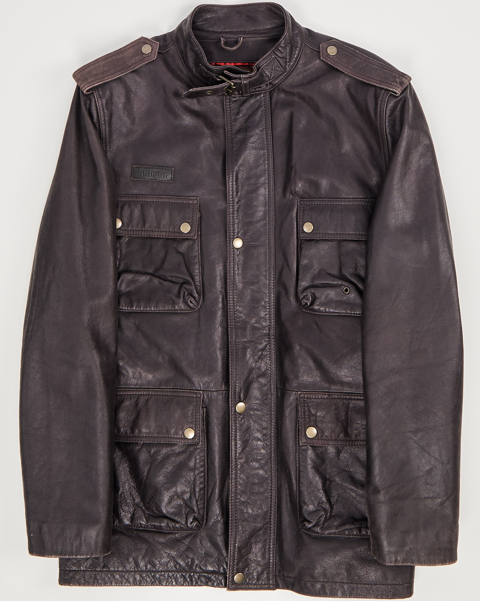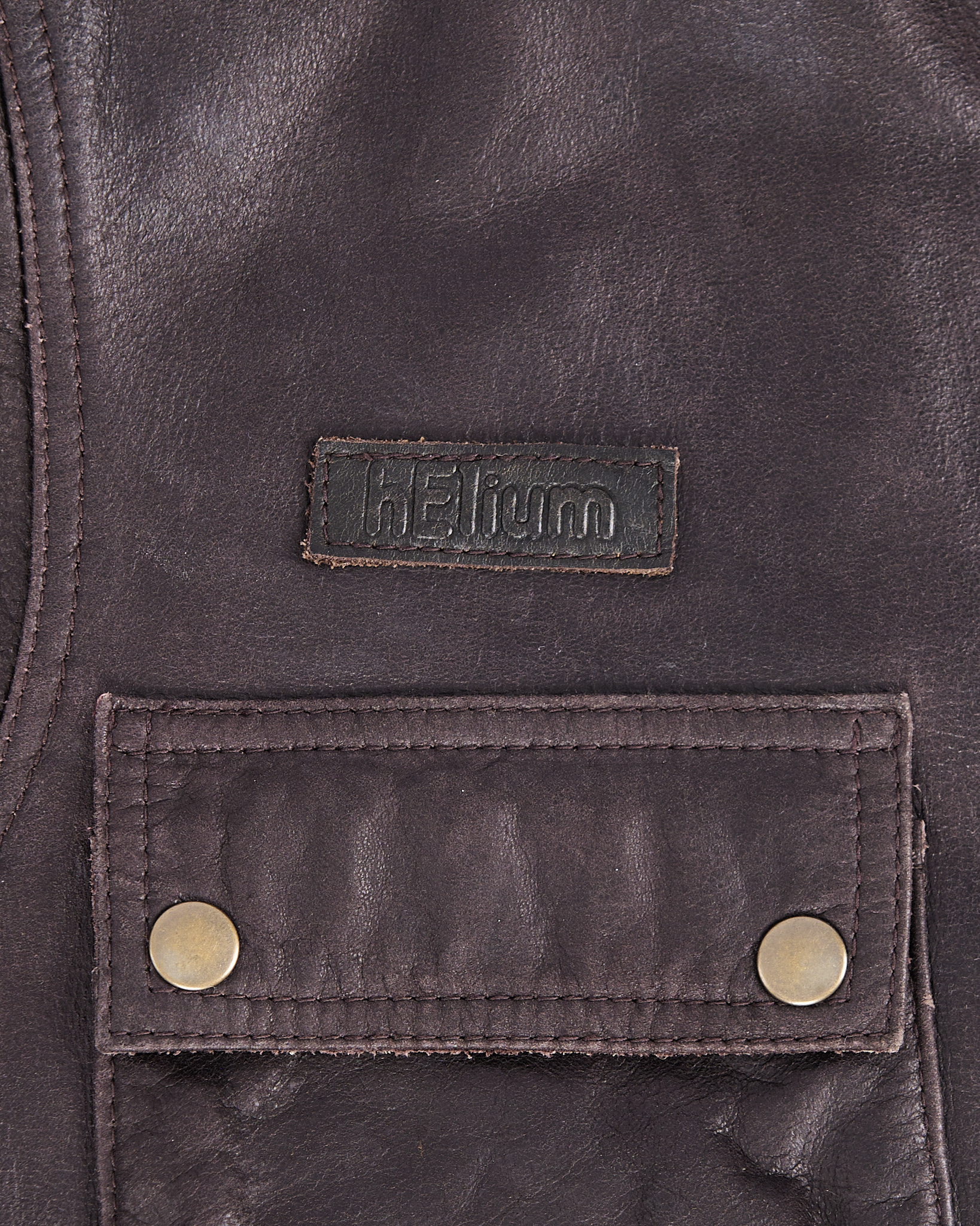 Кожаная куртка Helium из 100% натуральной кожи. Прямая посадка, накладные карманы на кнопках и воротник с ремешком. Внутренняя подкладка с контрастной вставкой добавляет. Надёжная фурнитура и продуманная конструкция.