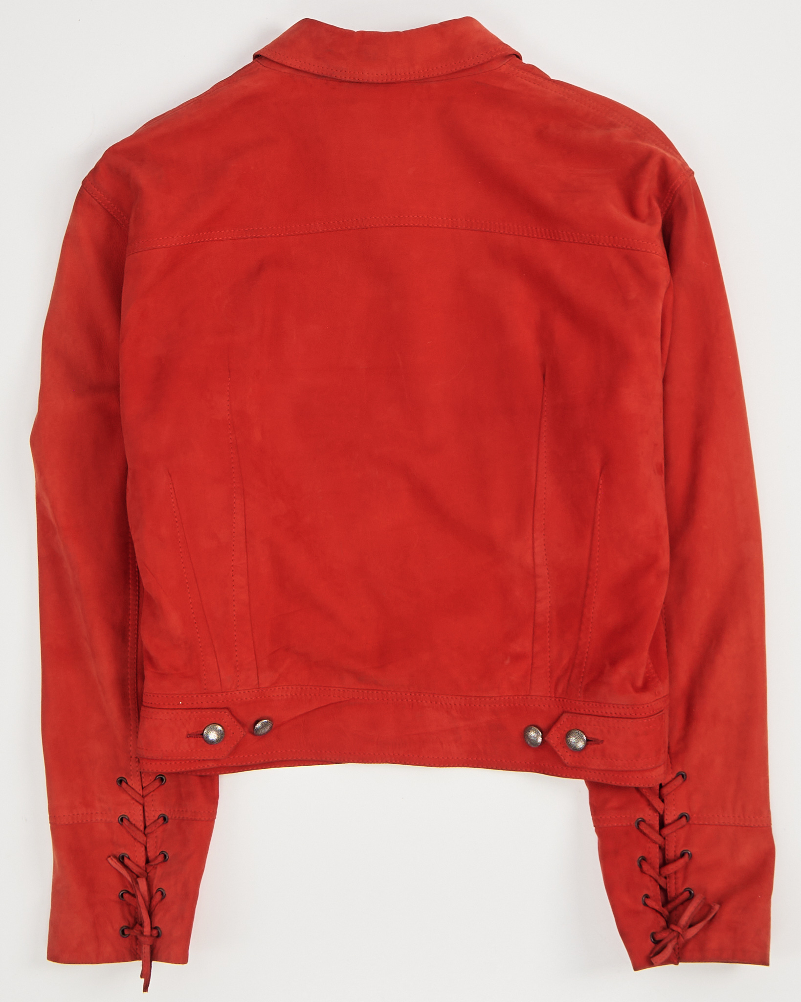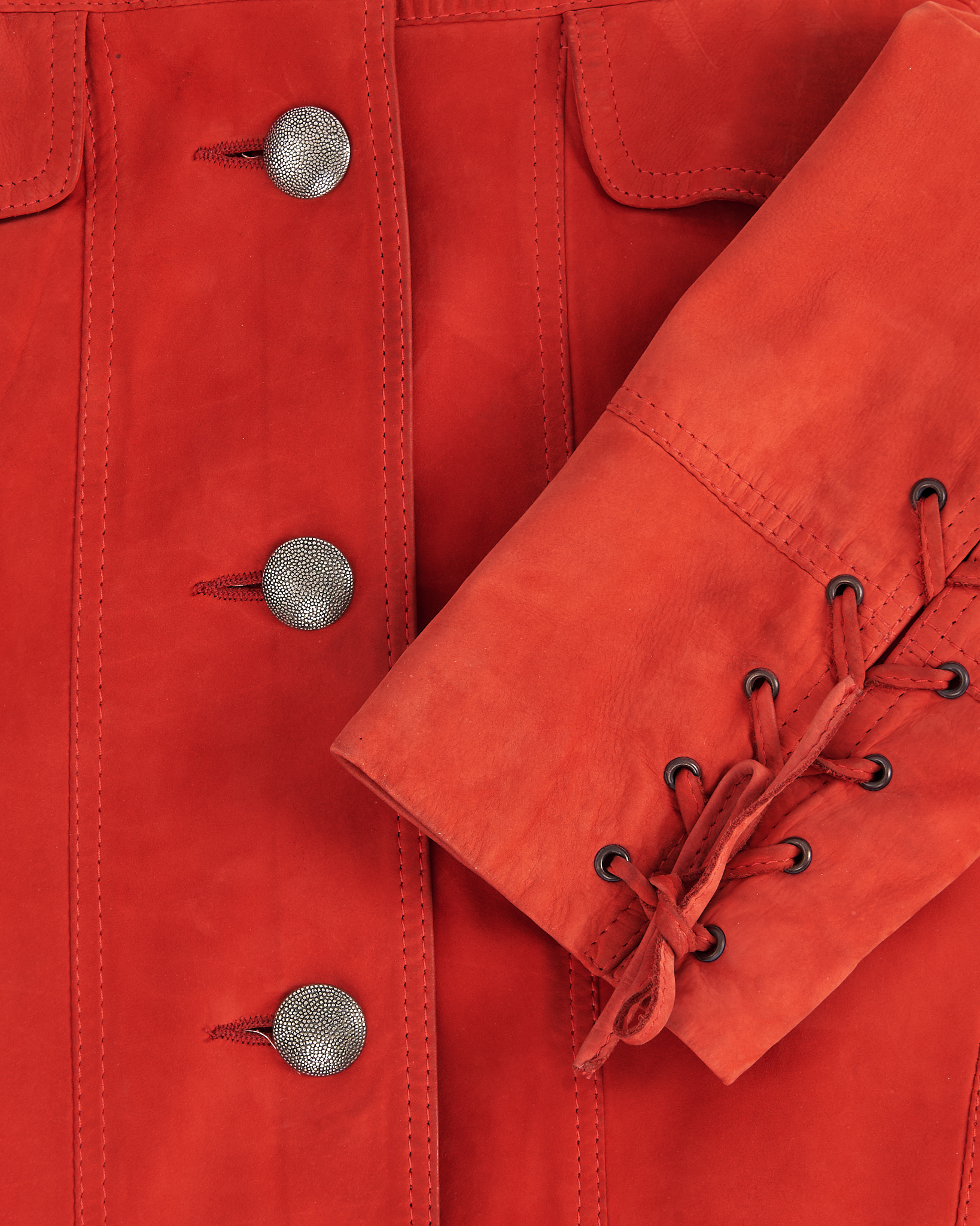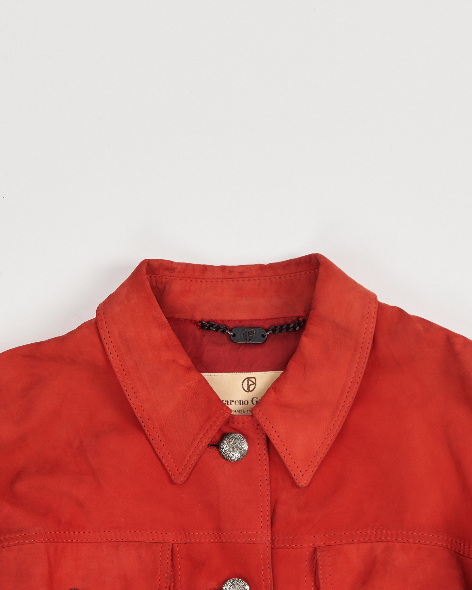 Кожаная куртка Nazareno Gabrielli в насыщенном красном оттенке. Куртка из мягкой натуральной кожи, прямая посадка. Металлические пуговицы и шнуровка на манжетах.