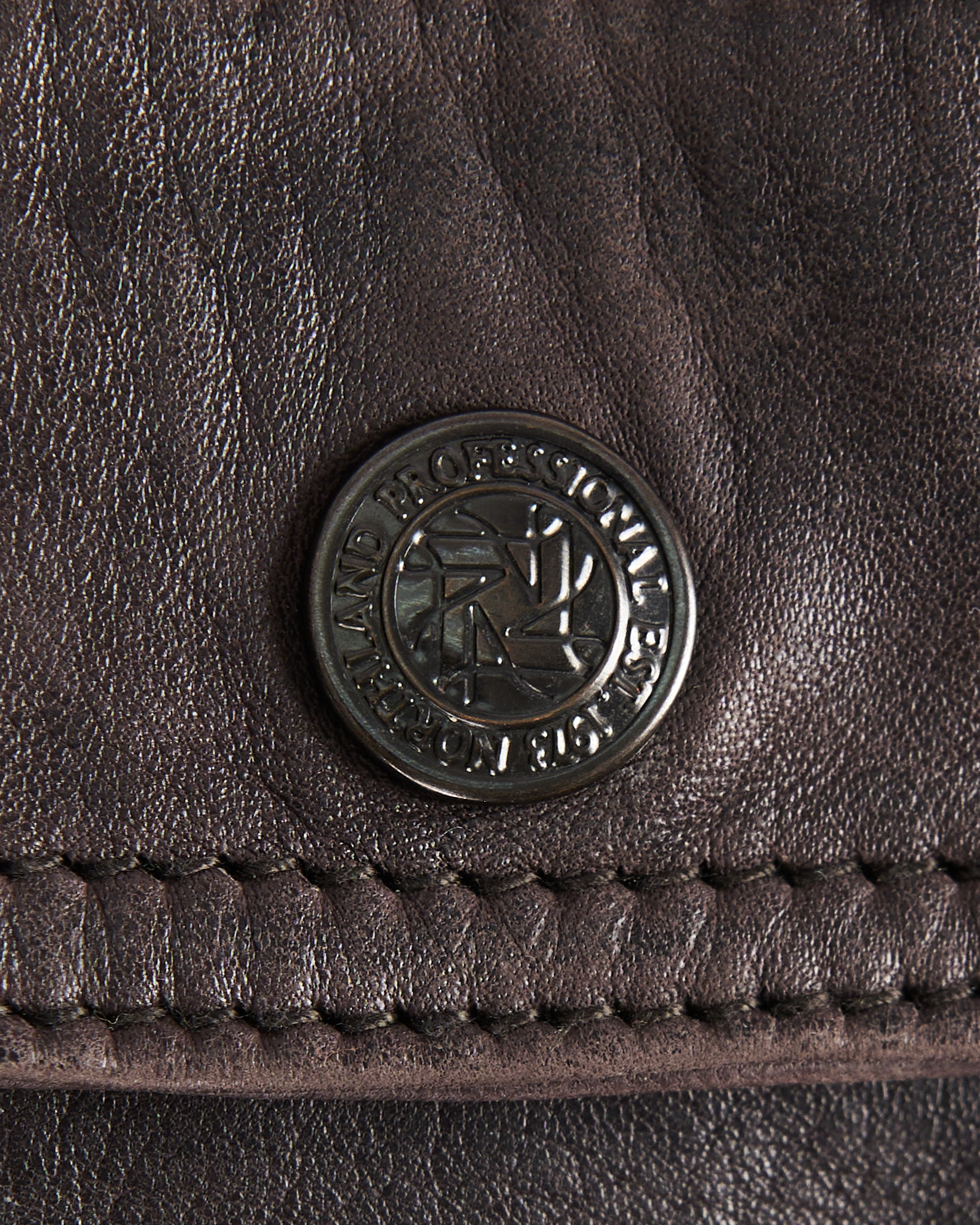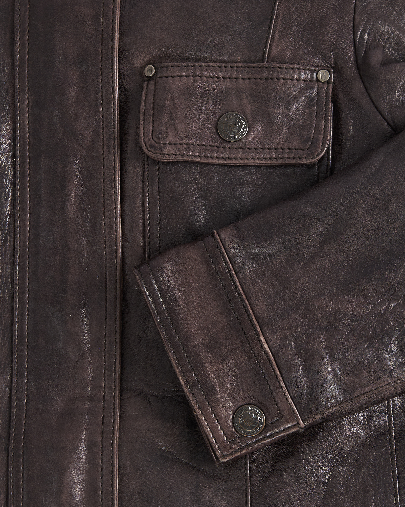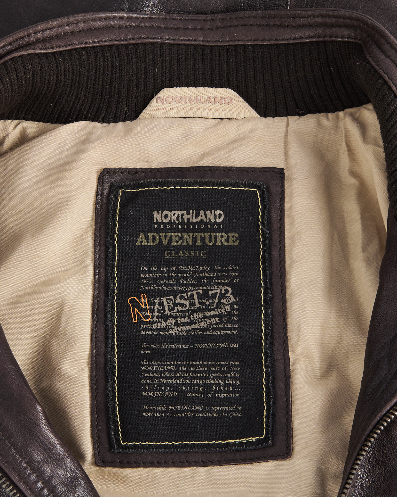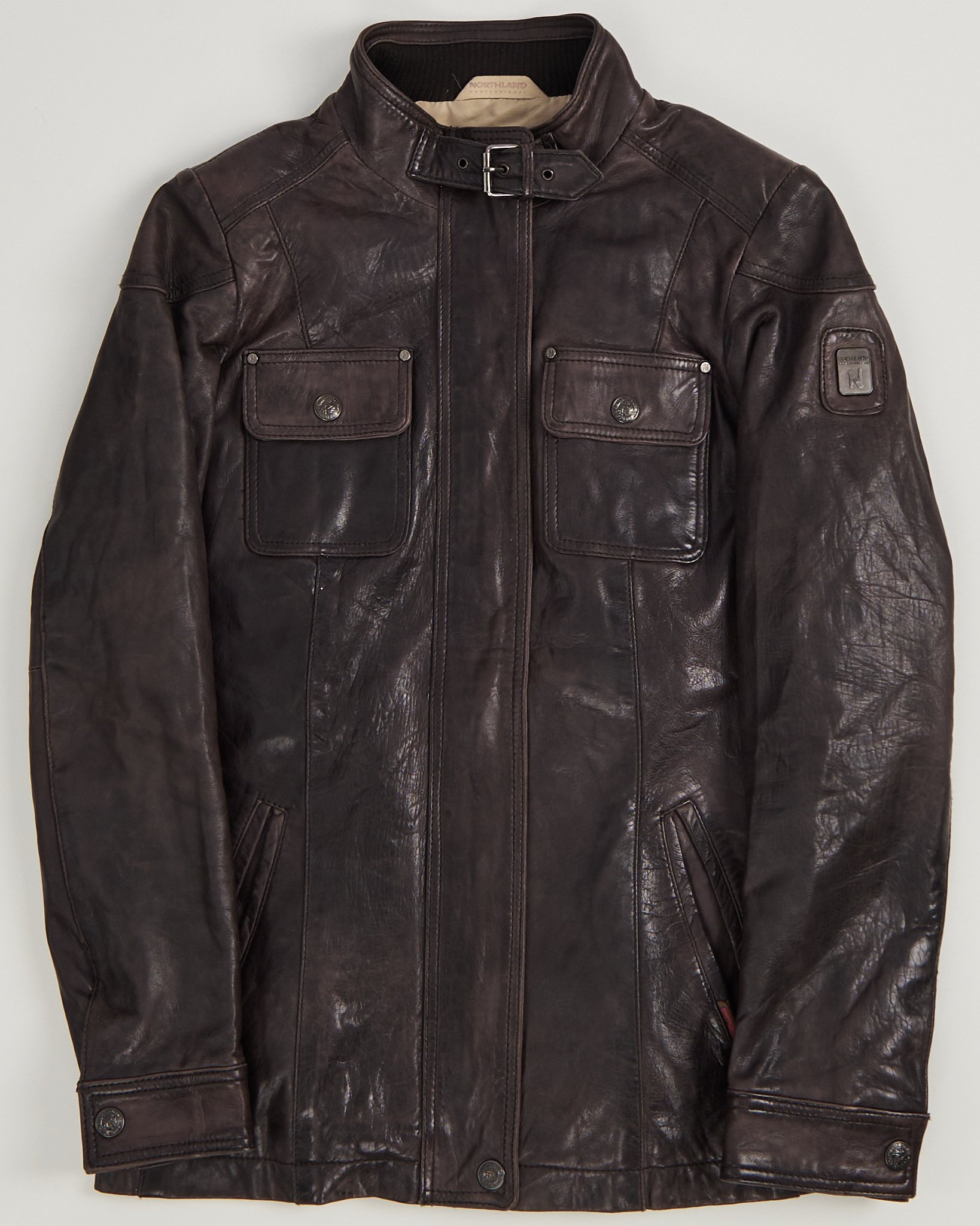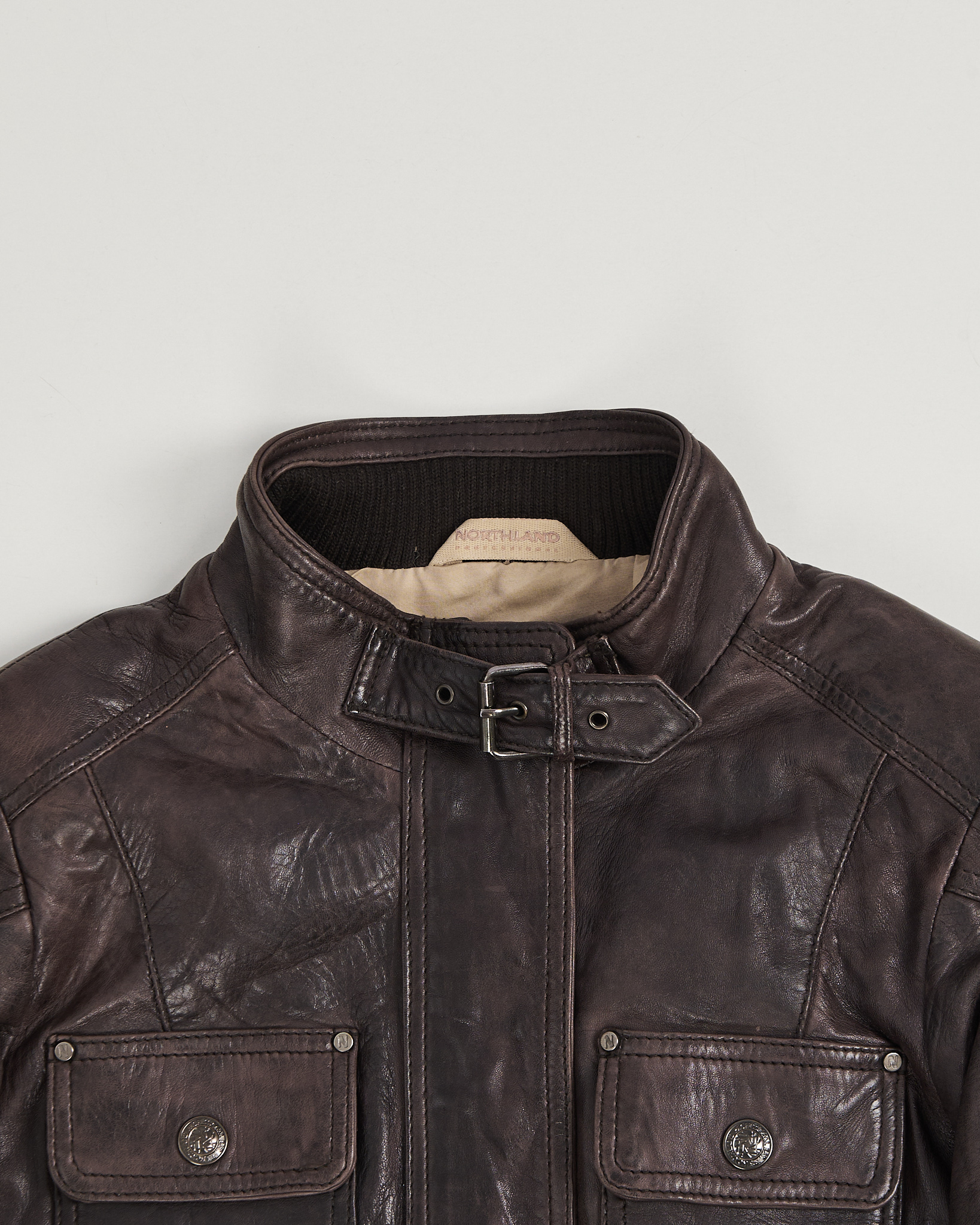 Куртка Northland из мягкой натуральной кожи темного коричневого цвета. Приталенный силуэт. Нагрудные карманы с клапанами и ремешок на вороте