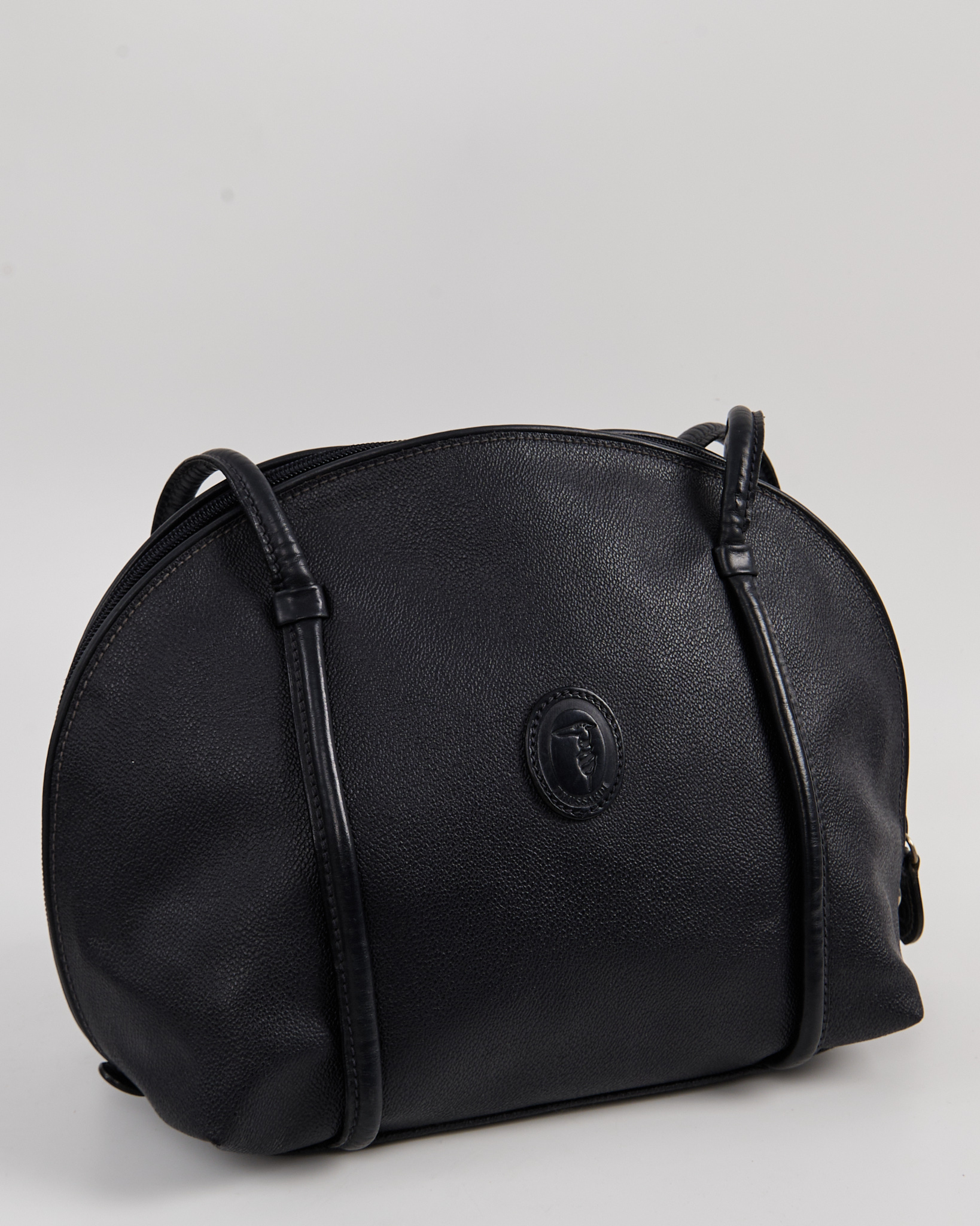 Сумка Trussardi из искусственной кожи, подкладка из 100% хлопка. Форма полукруглая, длинные ручки обеспечивают удобную посадку на плече. Спереди эмблема с символом бренда.