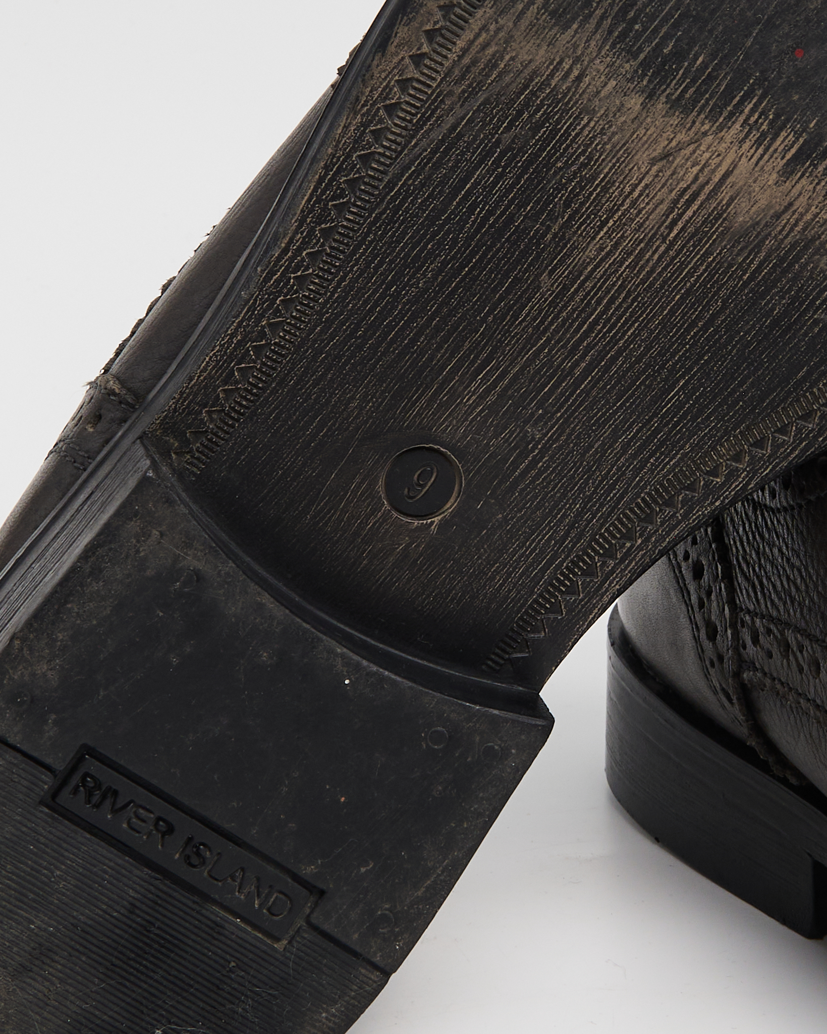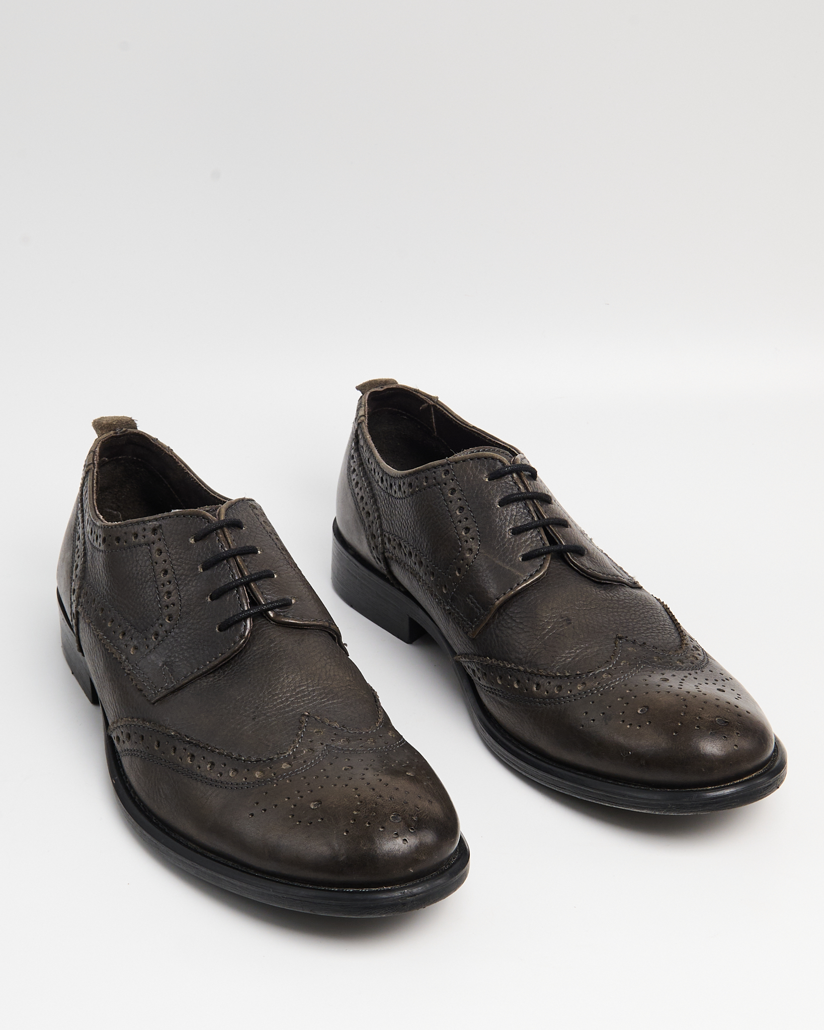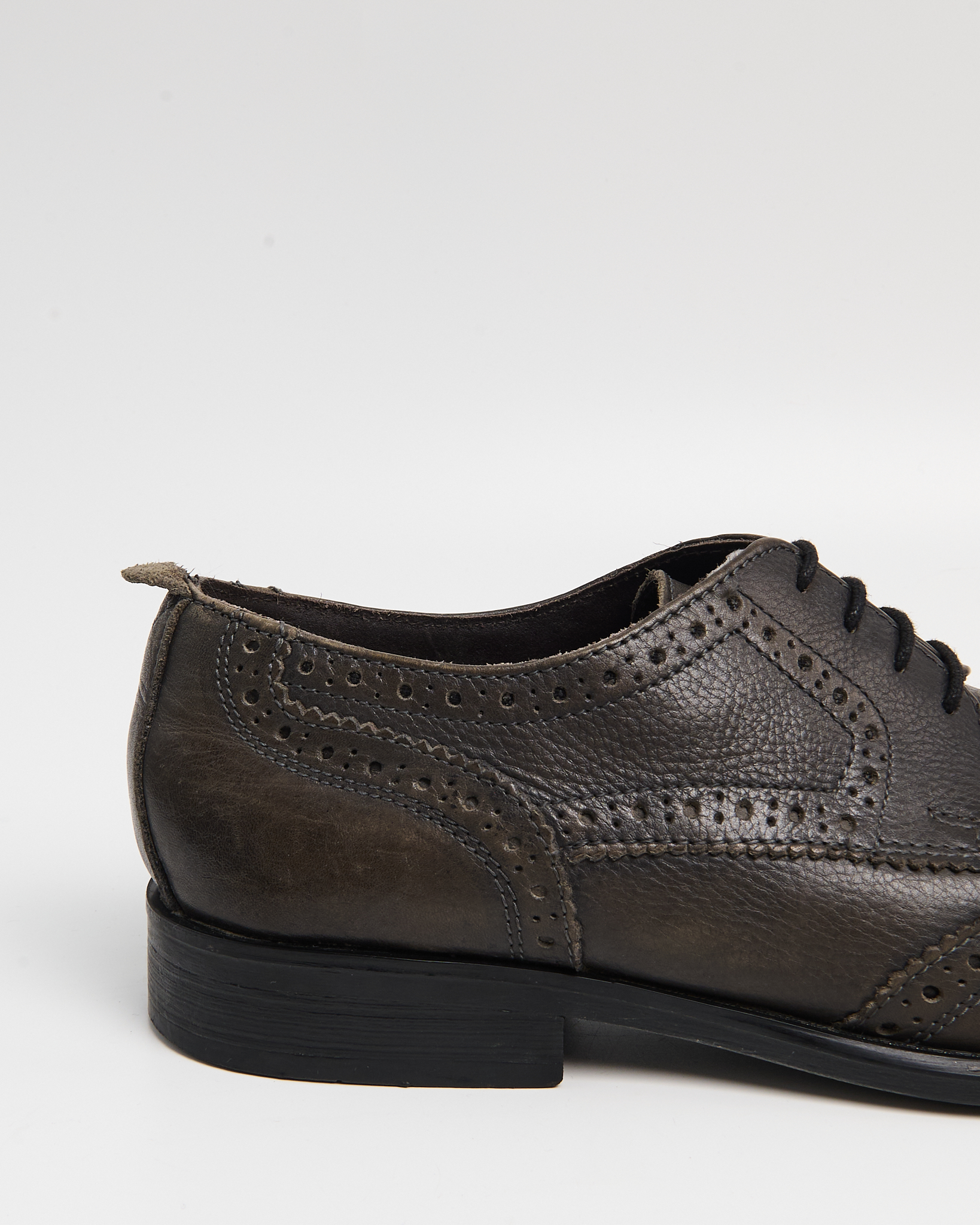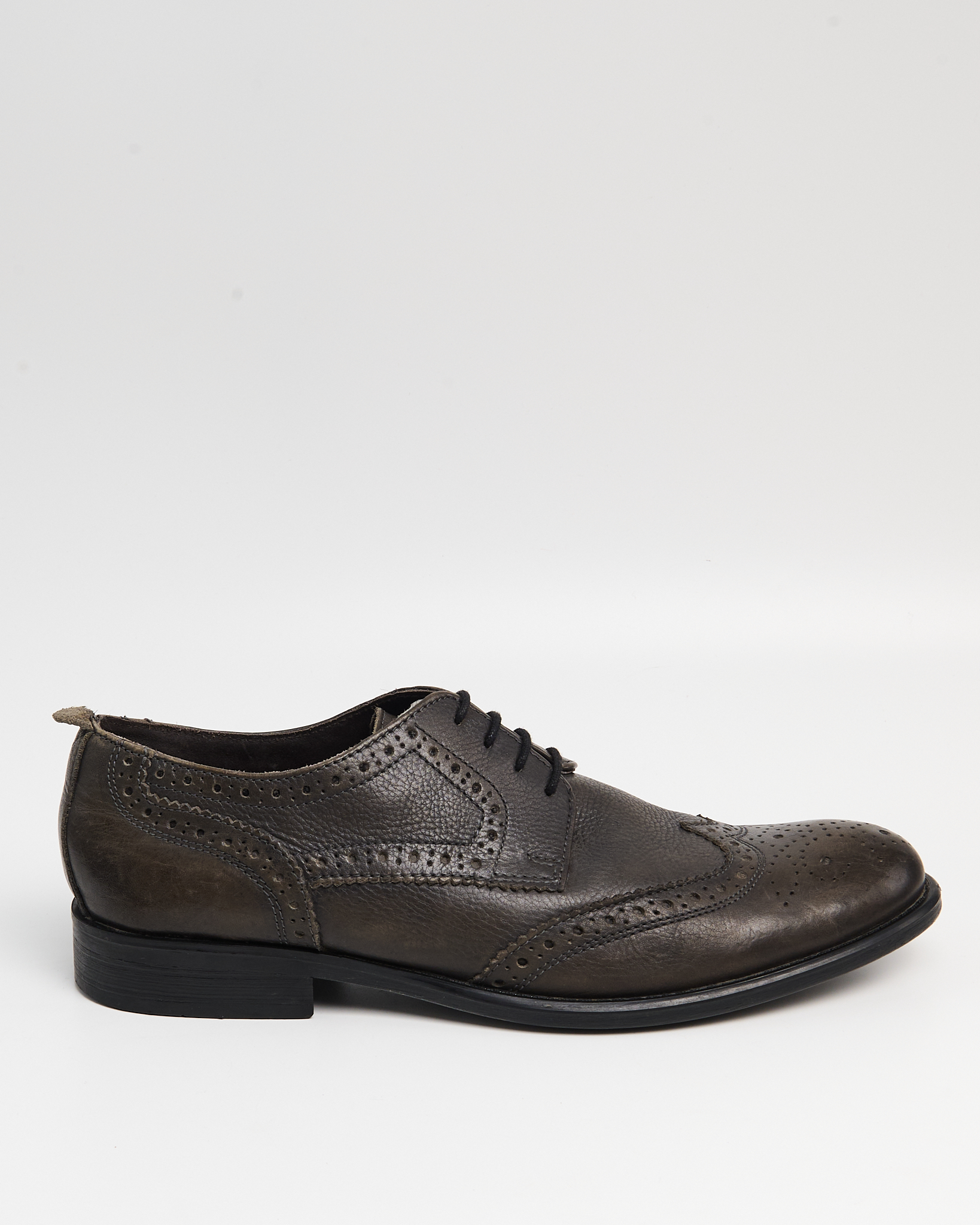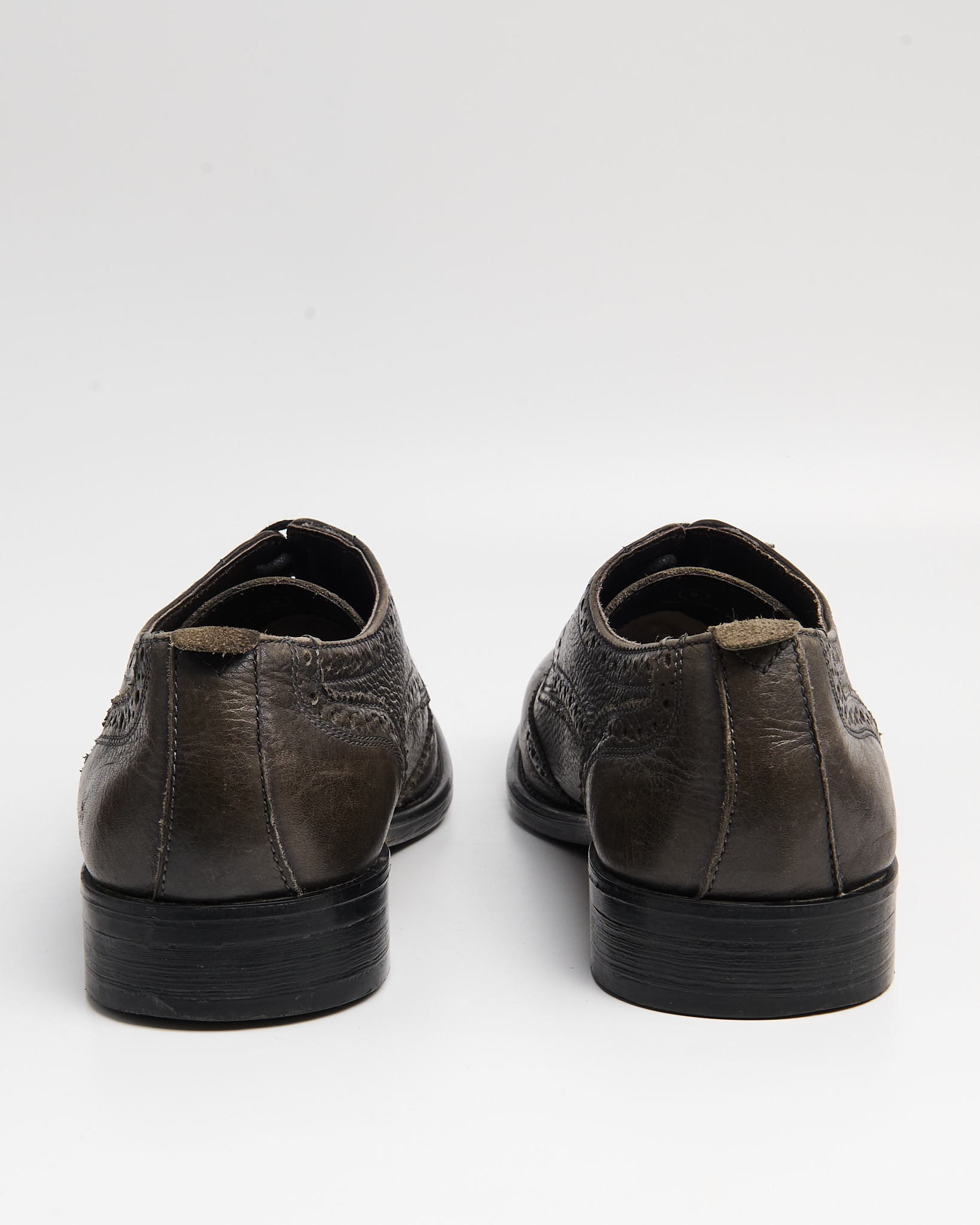 Пара выполнена из натуральной кожи глубокого темно-коричневого оттенка. Материал плотный, гладкий на ощупь. Посадка комфортная, форма держит стопу