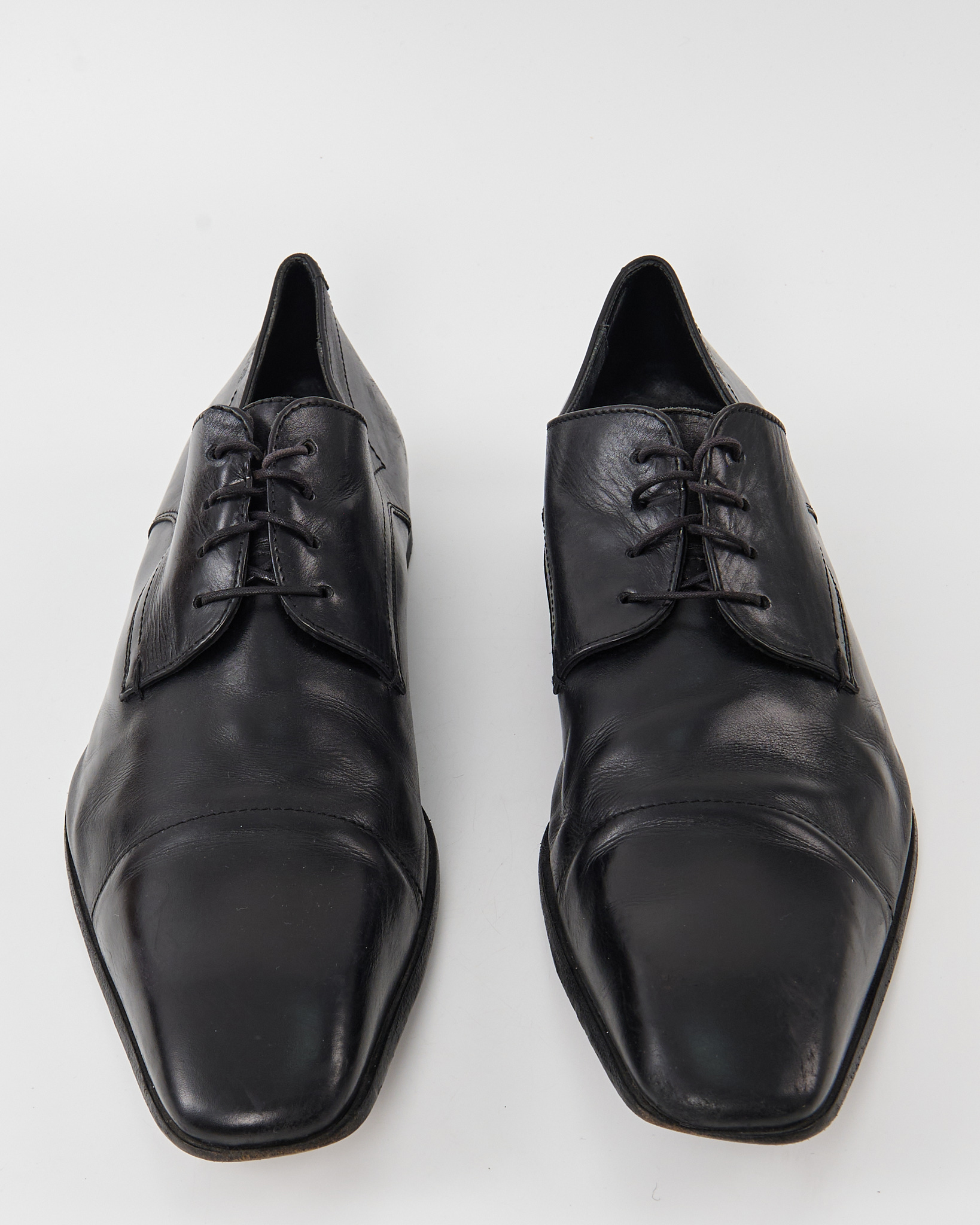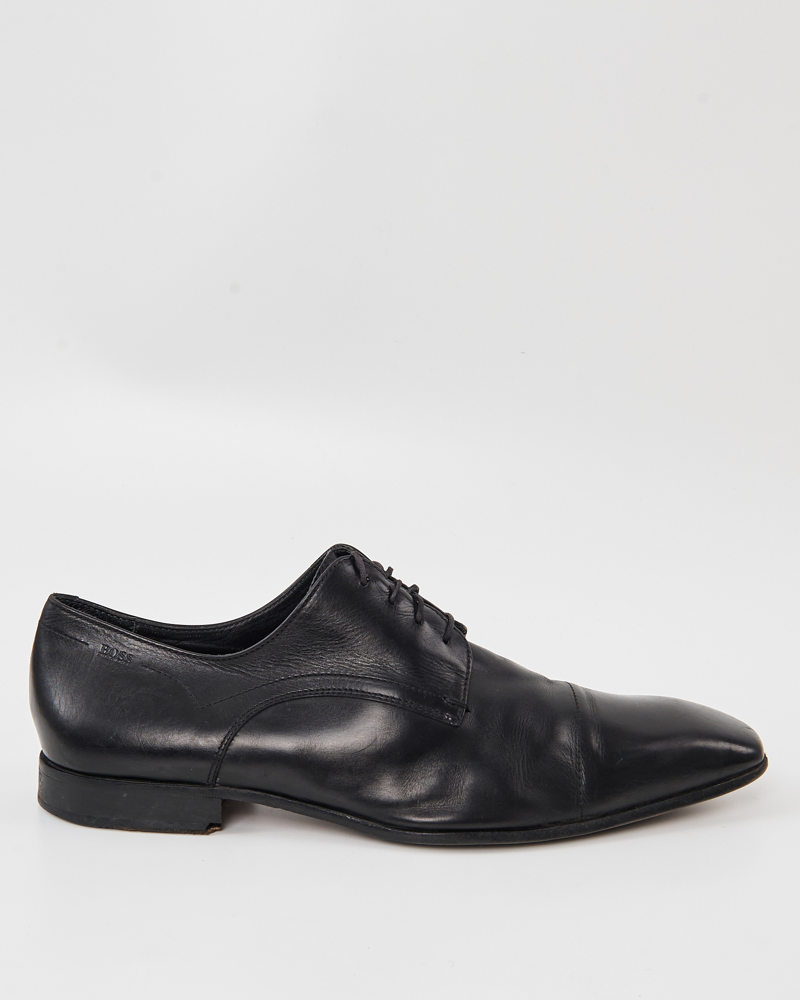 Чёрные дерби BOSS из гладкой натуральной кожи с  квадратным мысом. Комфортная посадка, аккуратная шнуровка.