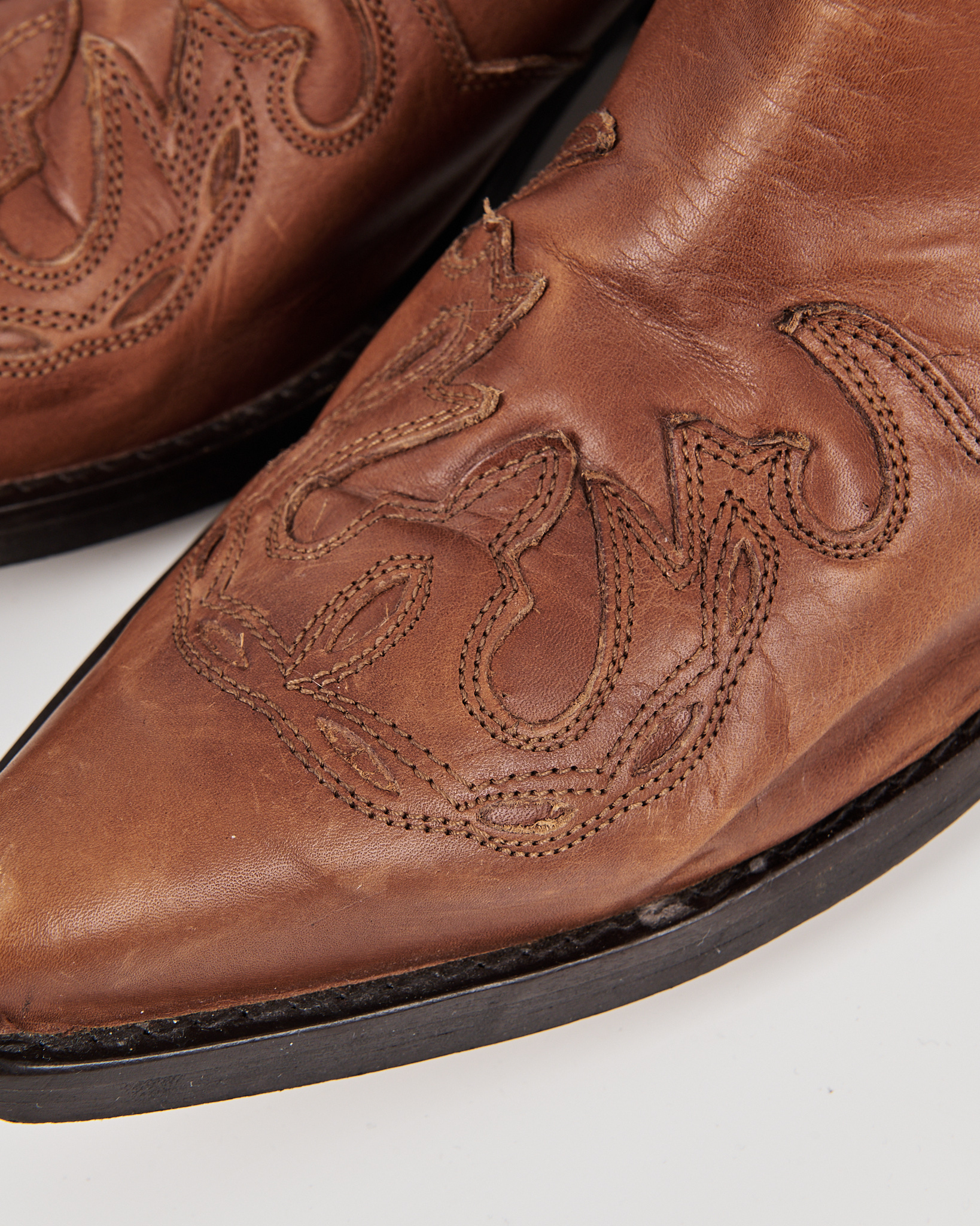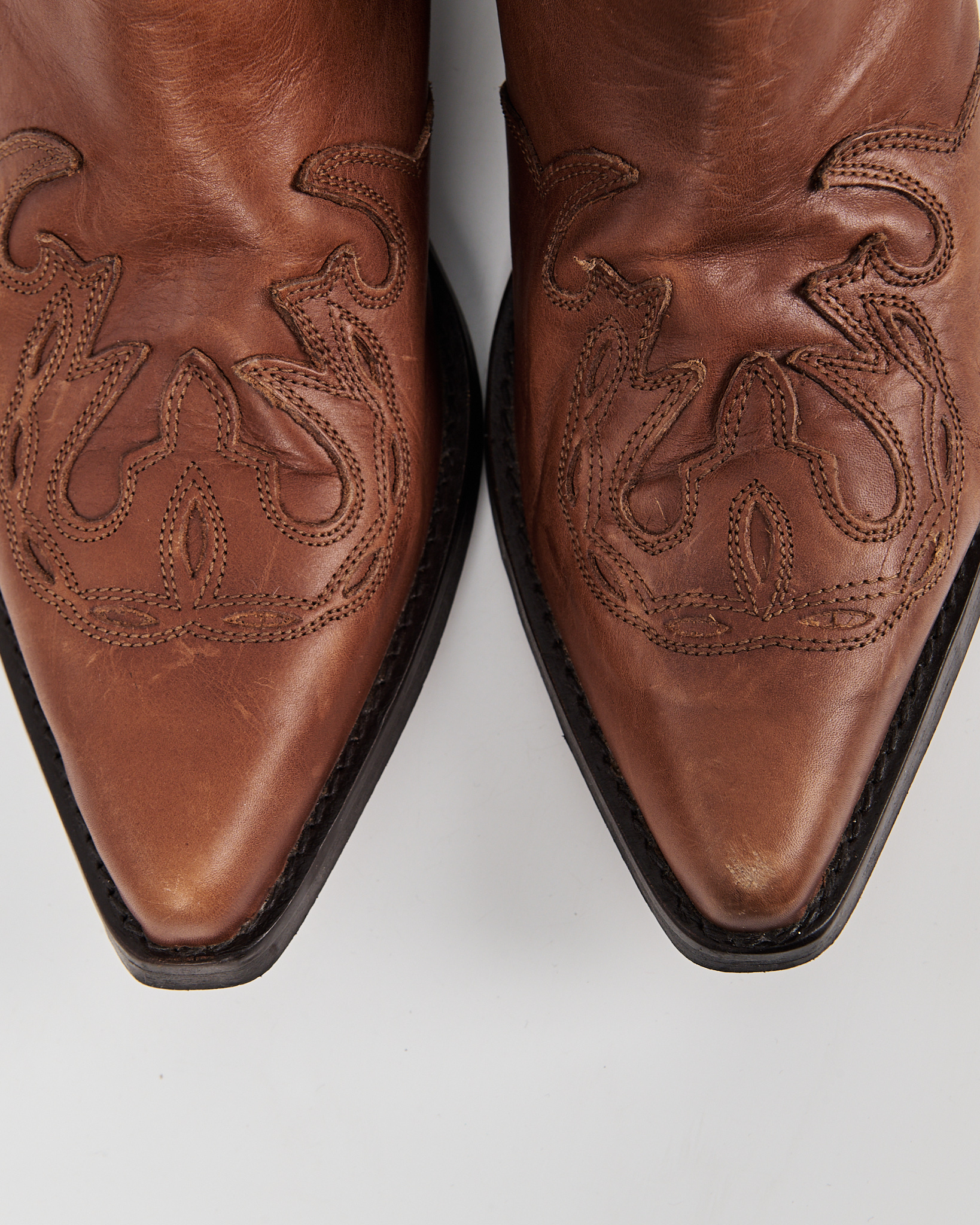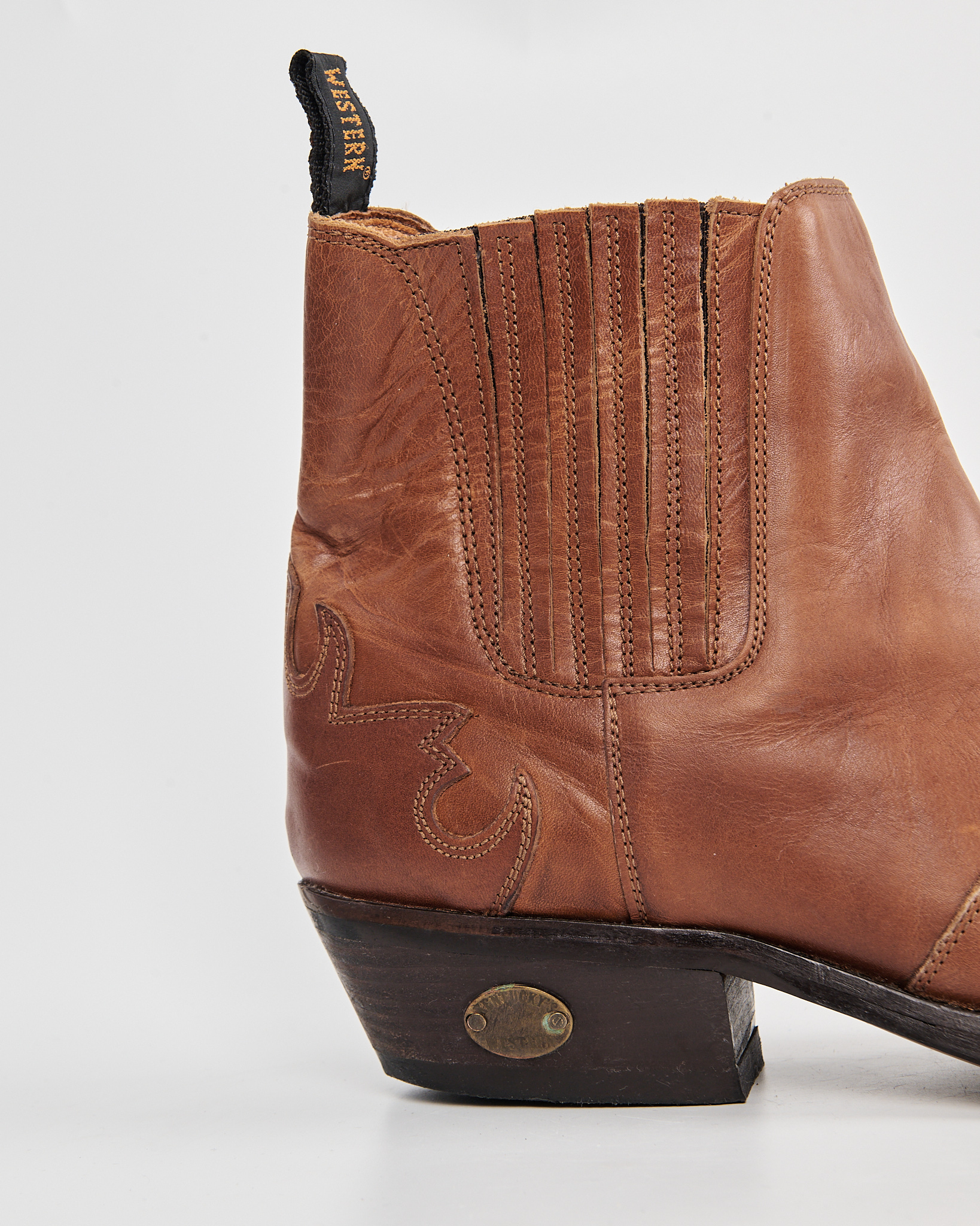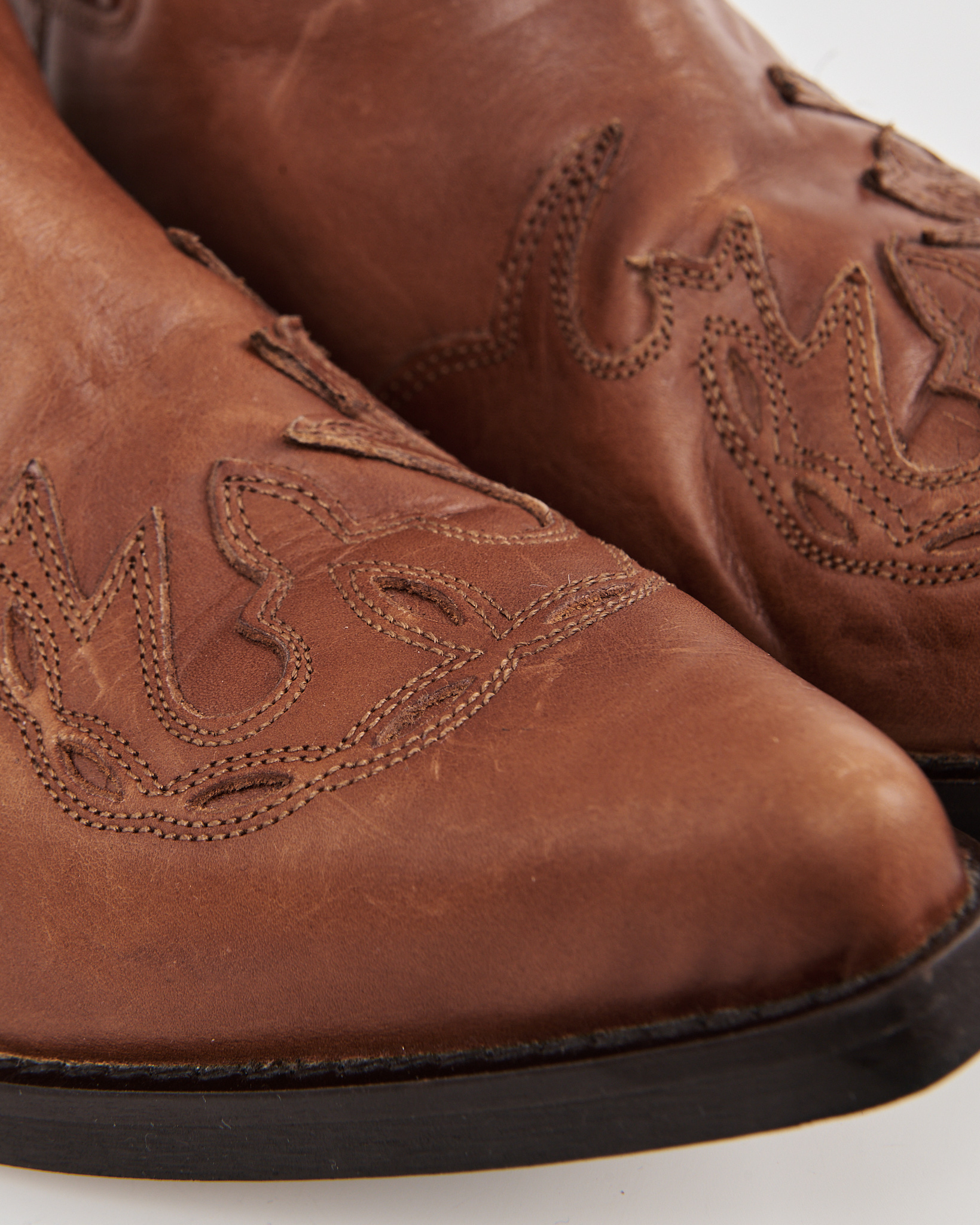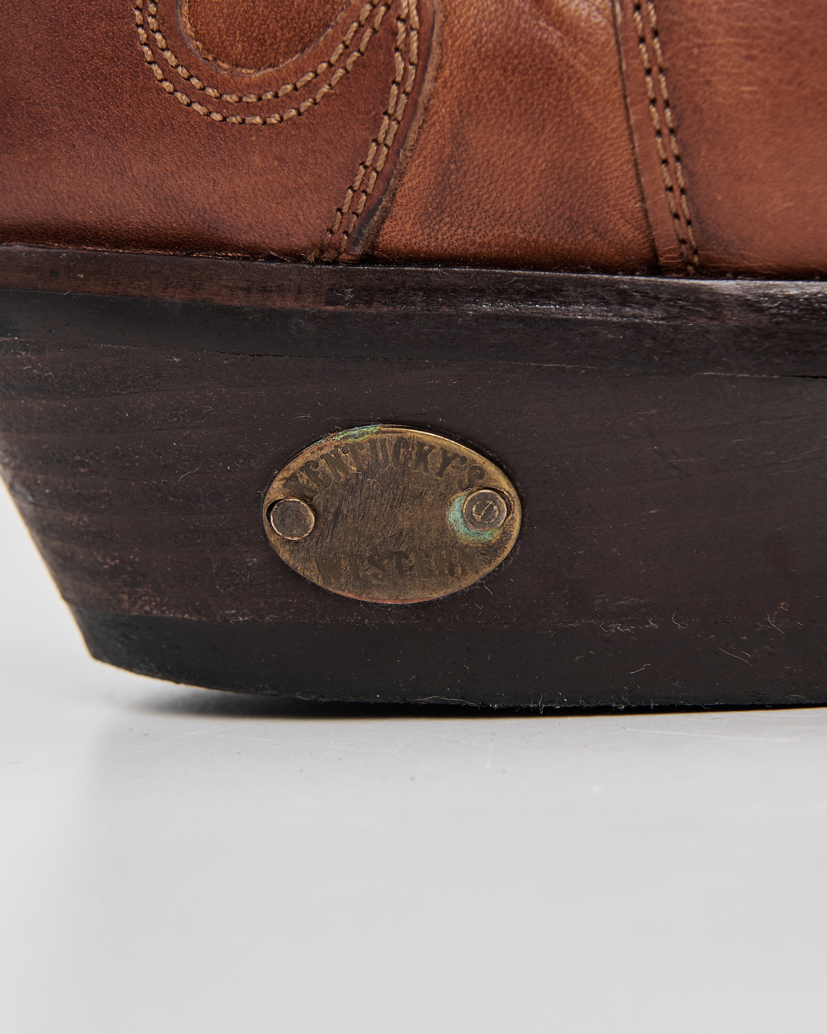 Кожаные казаки Kentucky's made in Spain. Казаки из плотной натуральной кожи с фирменными петлями и металлической пластиной на каблуке. Заострённый мыс и фигурная вышивка.