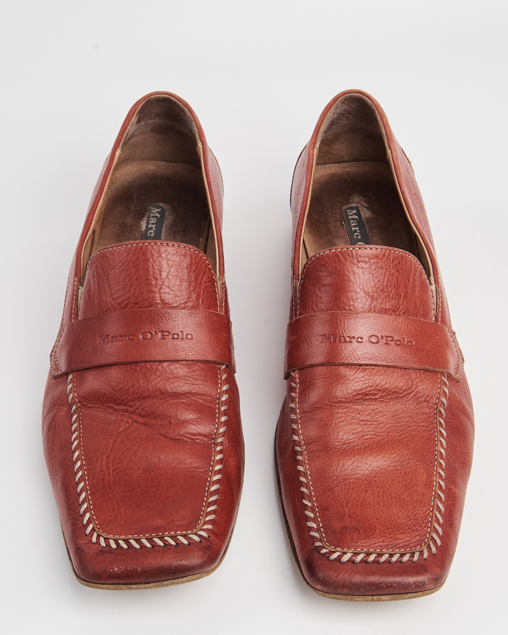 Лоферы Marc O’Polo из 100% натуральной кожи. Посадка с чёткой фиксацией за счёт классической перемычки и аккуратной колодки. Прошивка по контуру, патина на коже.