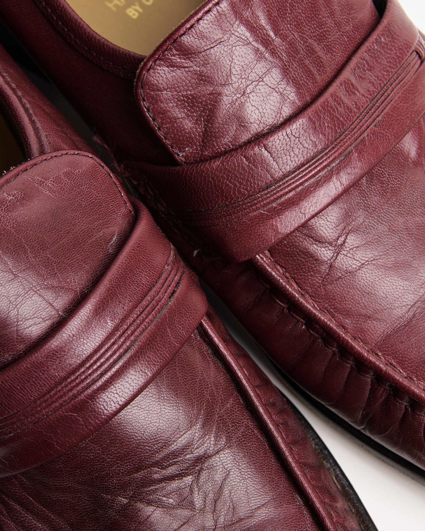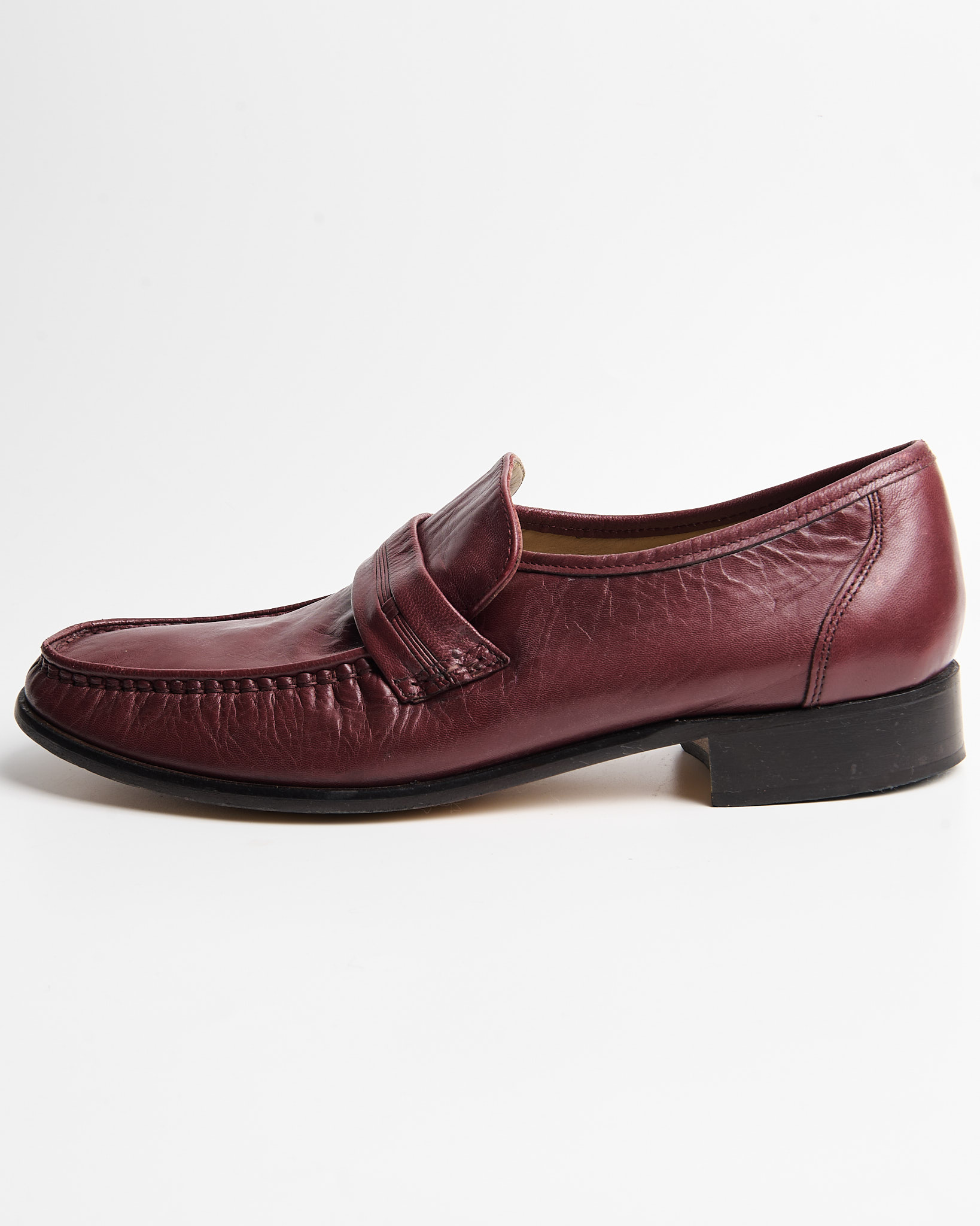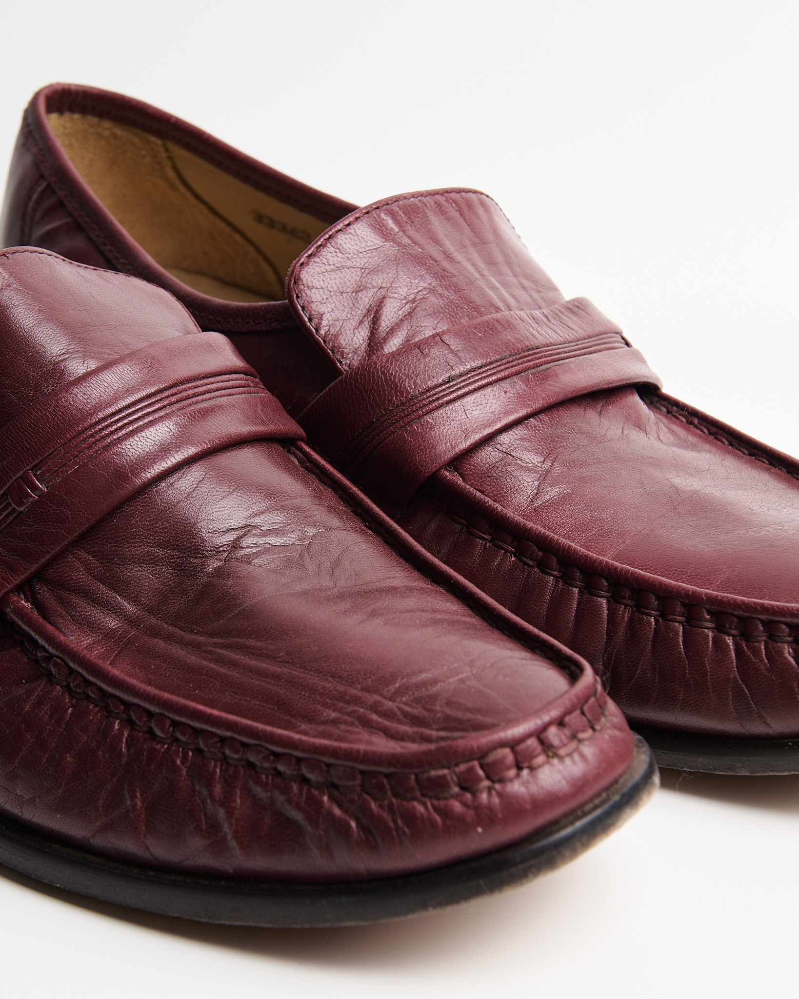 Лоферы из натуральной кожи глубокого бордового оттенка с ручной прошивкой по мысу. Удобная колодка, кожа с патиной.