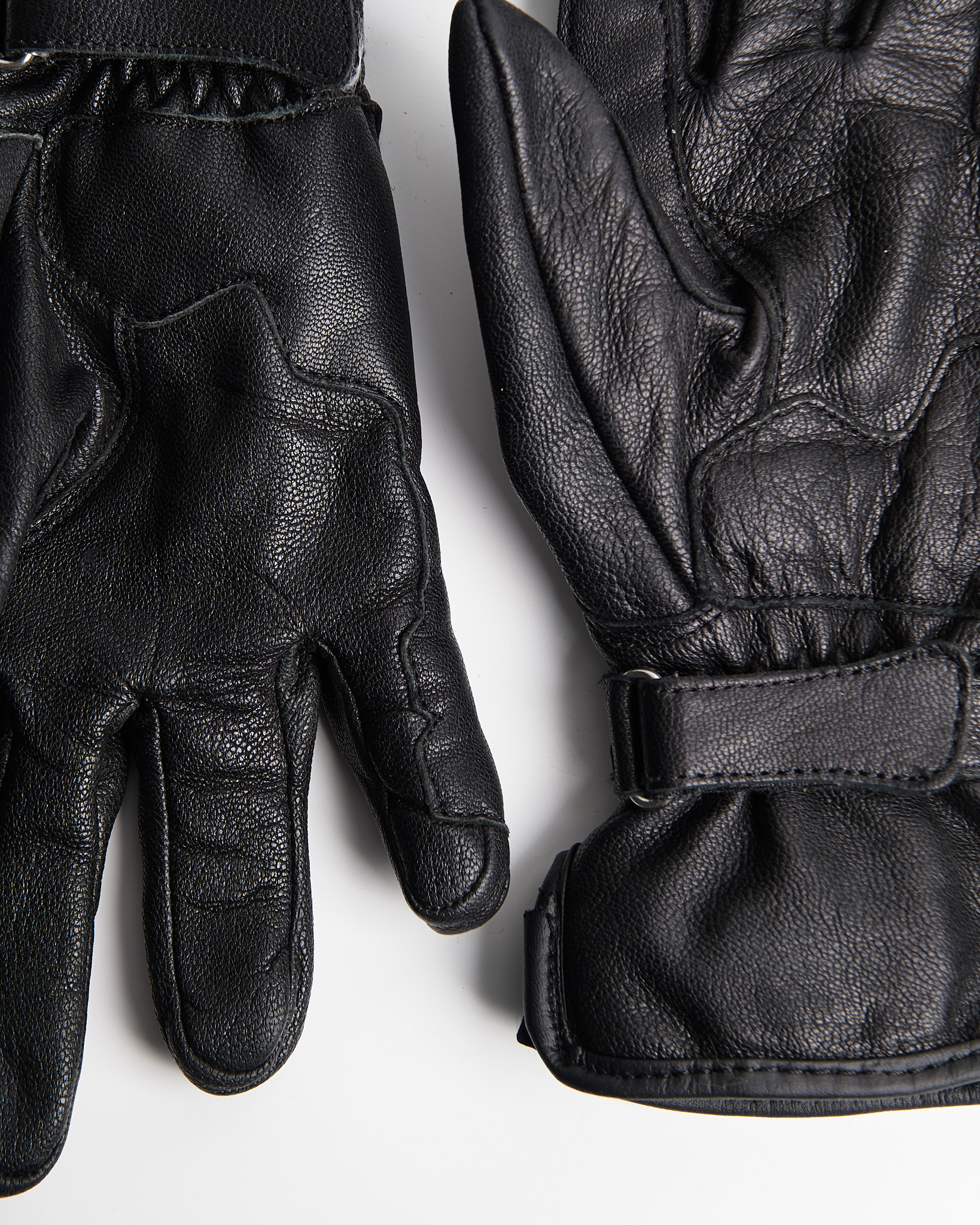 Перчатки из натуральной кожи плотной выделки с мягкой внутренней подкладкой. Стиль — байкерский, с акцентом на функциональность и силуэт.