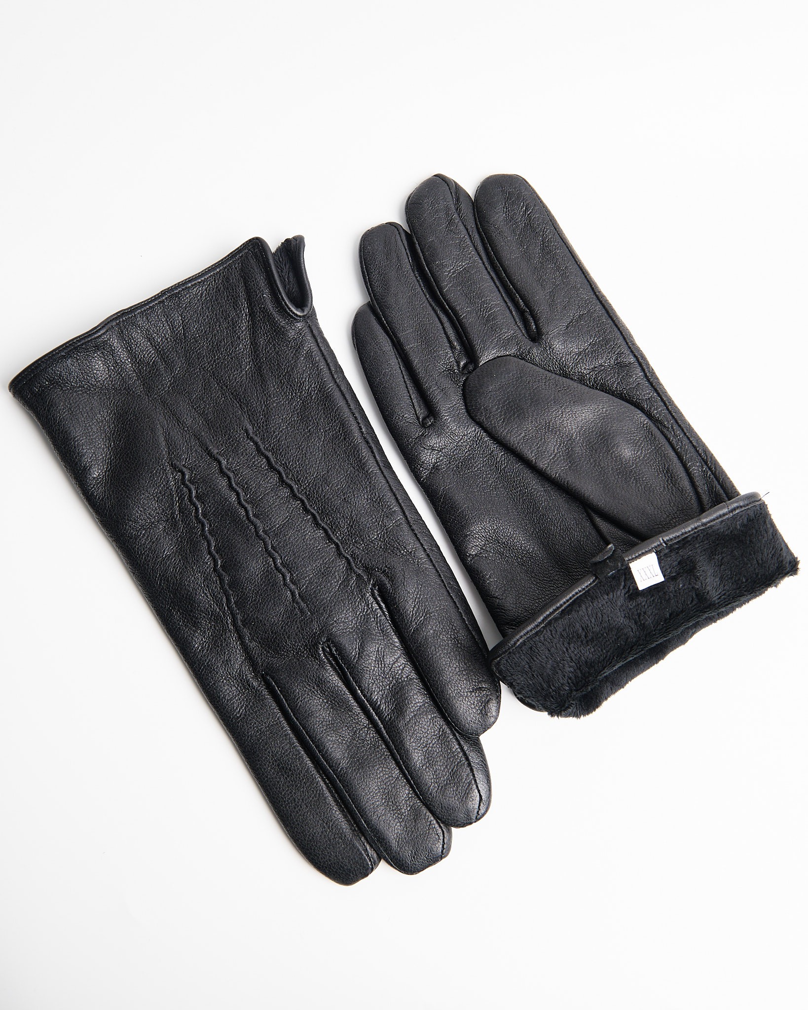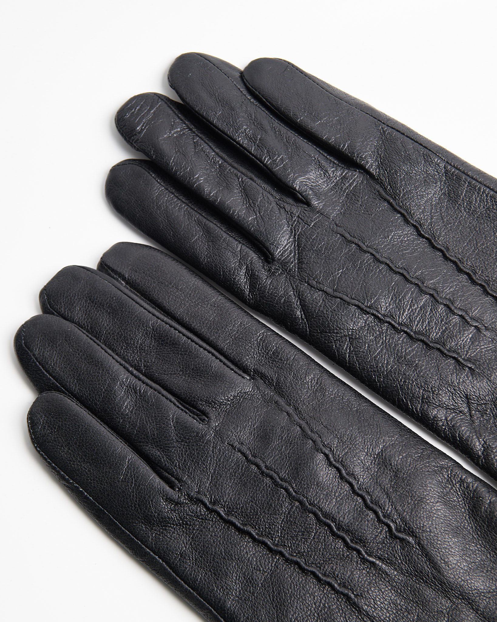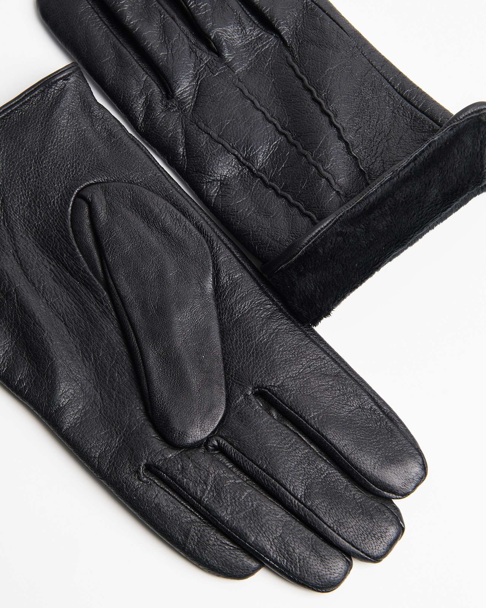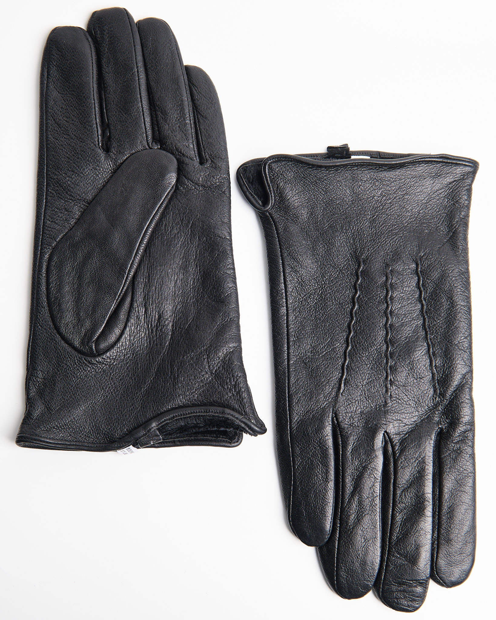Перчатки из натуральной кожи глубокого чёрного цвета. Внутренняя отделка из флиса, аккуратной прострочка.