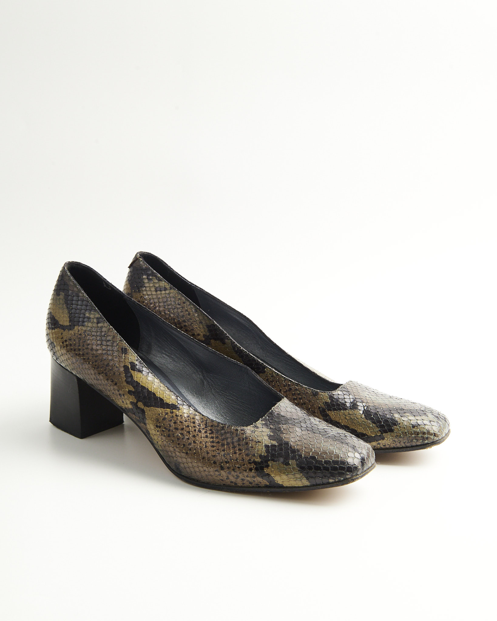 Туфли выполнены из 100% натуральной кожи питона. Устойчивый каблук, глубокий вырез. Сделаны в Италии