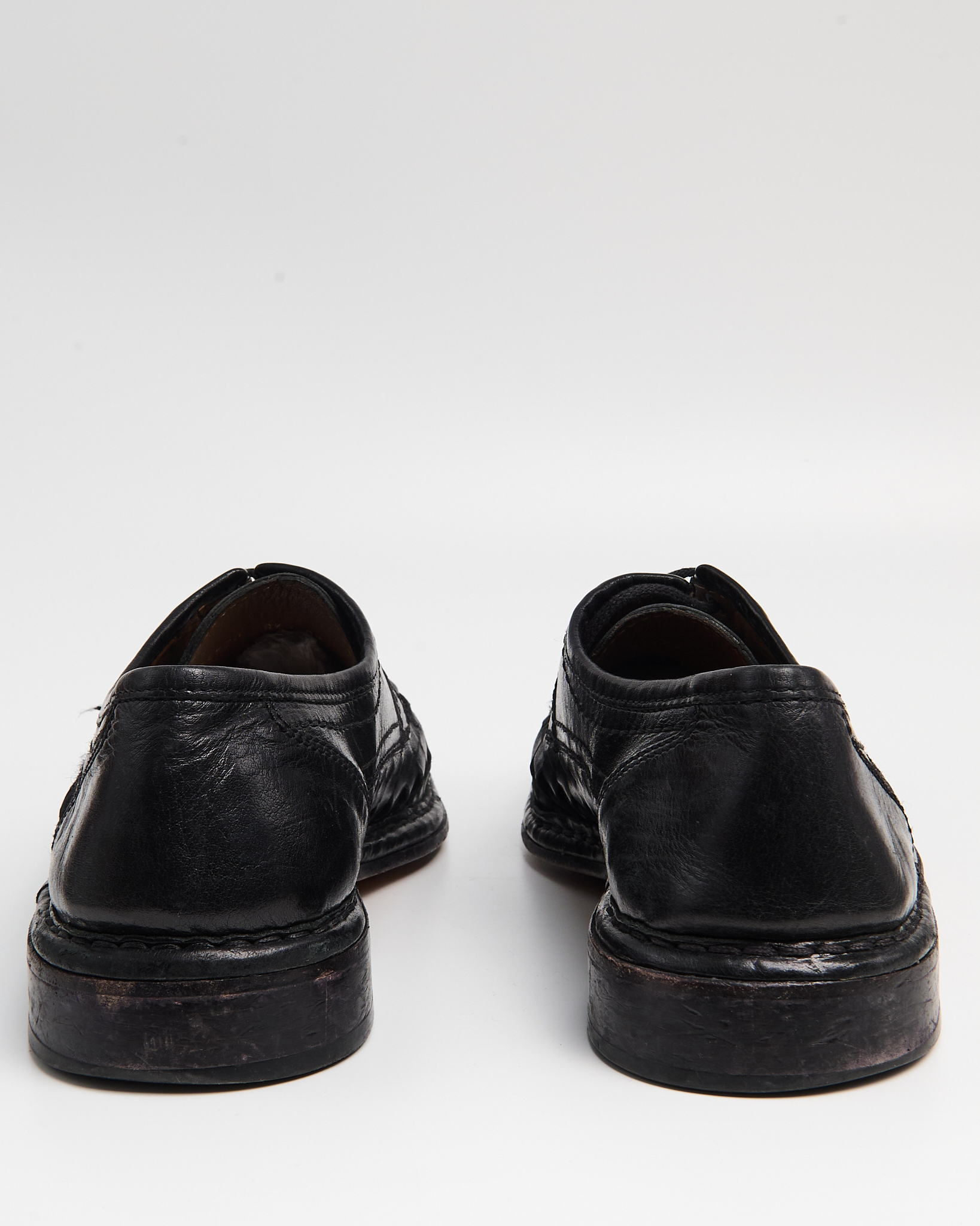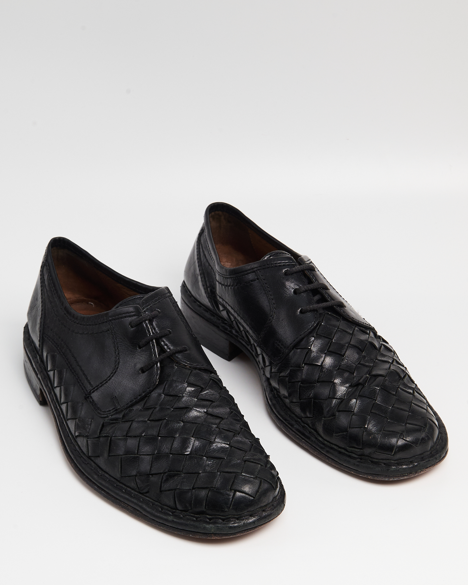 Туфли из плотной натуральной кожи с плетением. Качественное исполнение и прочная подошва, удобная шнуровка.
