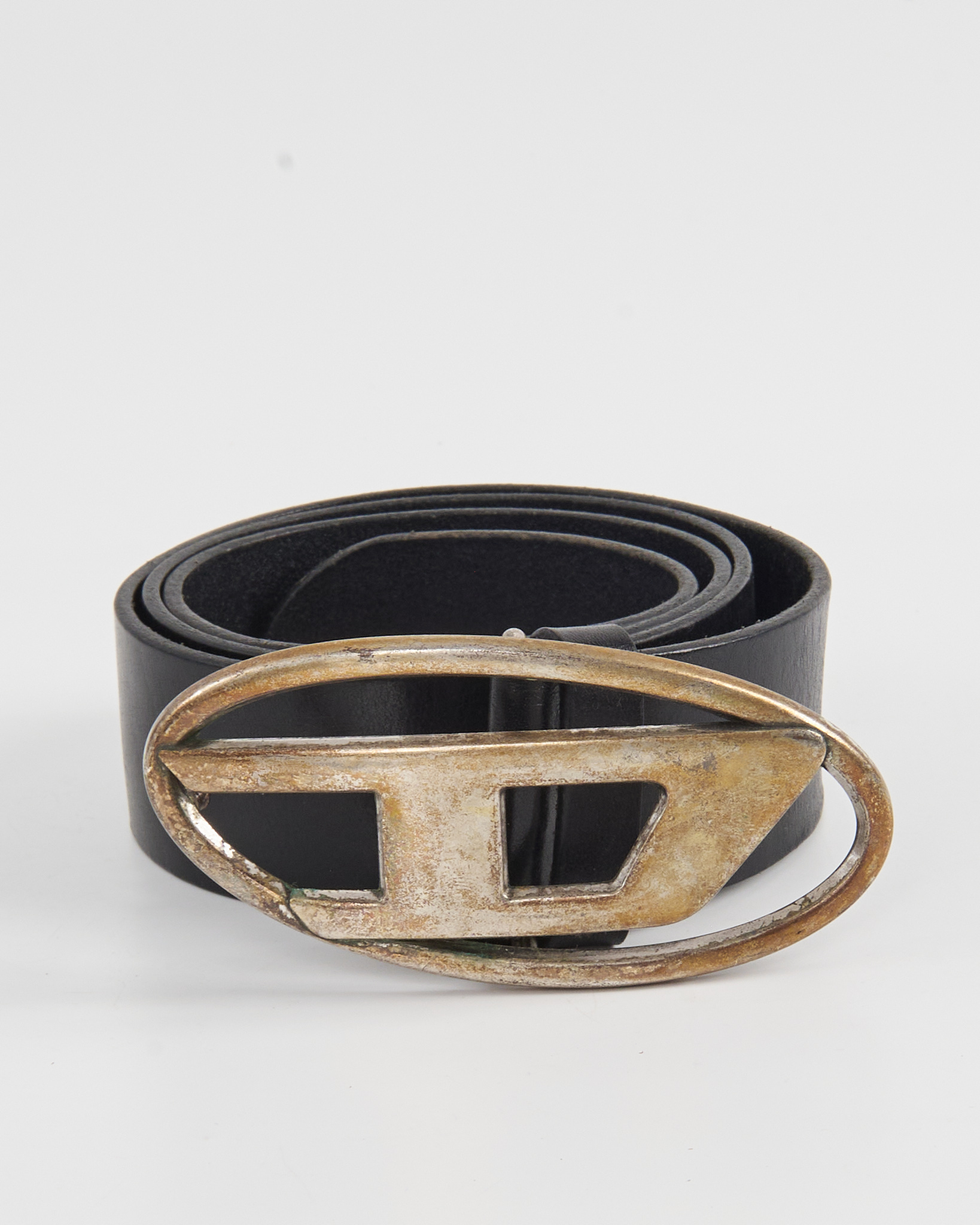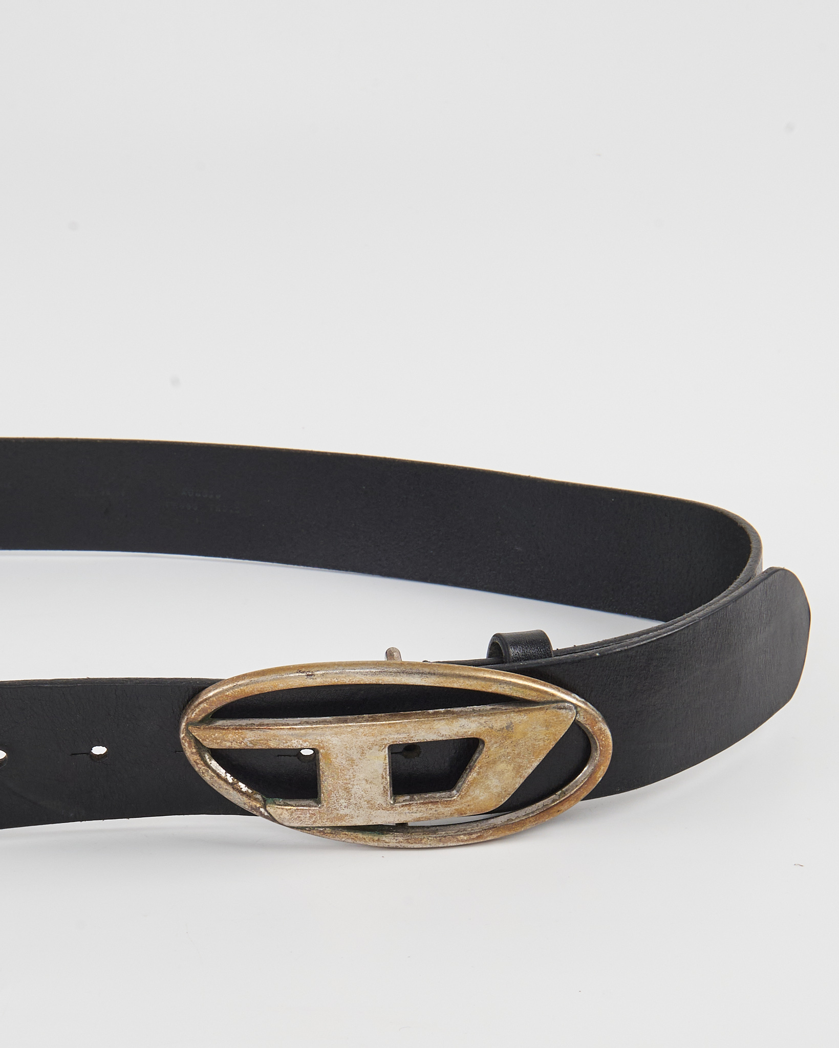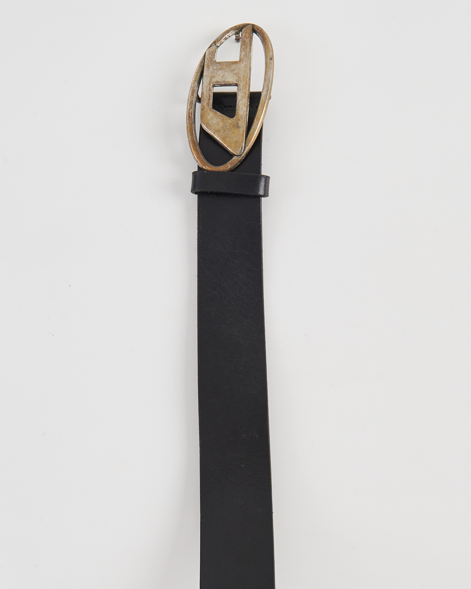 Ремень из плотной 100% натуральной кожи глубокого чёрного цвета. Широкая форма уверенно фиксируется на талии и создаёт чёткую посадку. Центральный акцент — крупная металлическая пряжка овальной формы с графичным элементом. Металл с выраженной патиной.