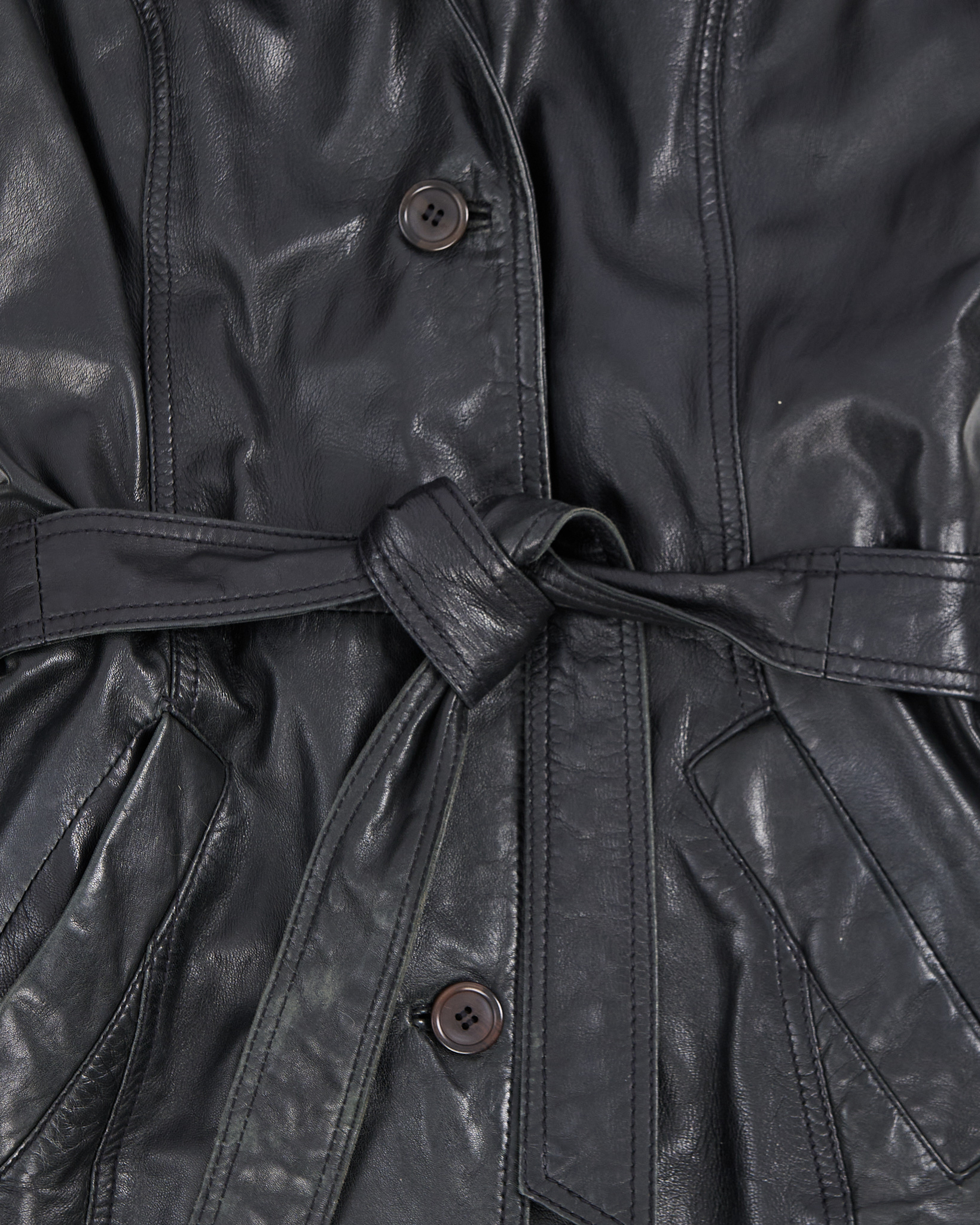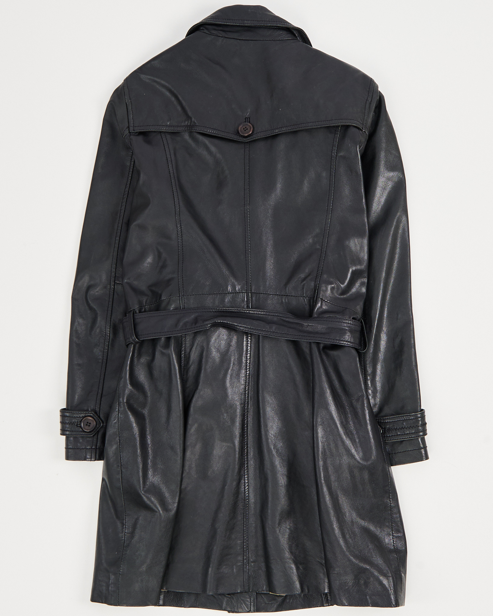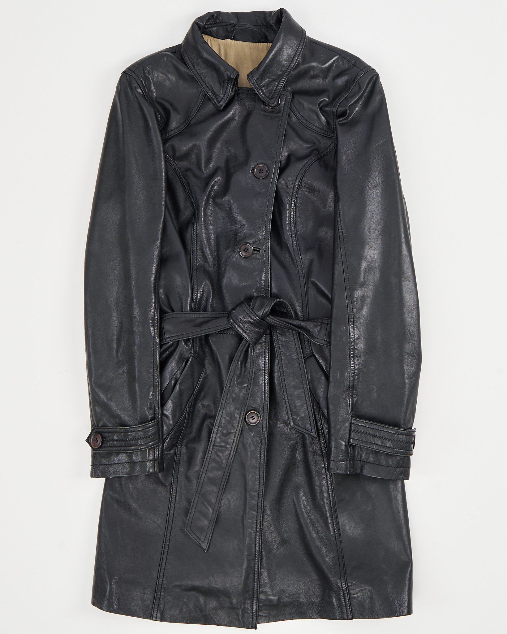 Кожаный плащ с поясом David Moore из 100% натуральной кожи. Посадка чёткая, с акцентом на талию благодаря поясу. Акцентный воротник, клапана на спинке и аккуратные манжеты.