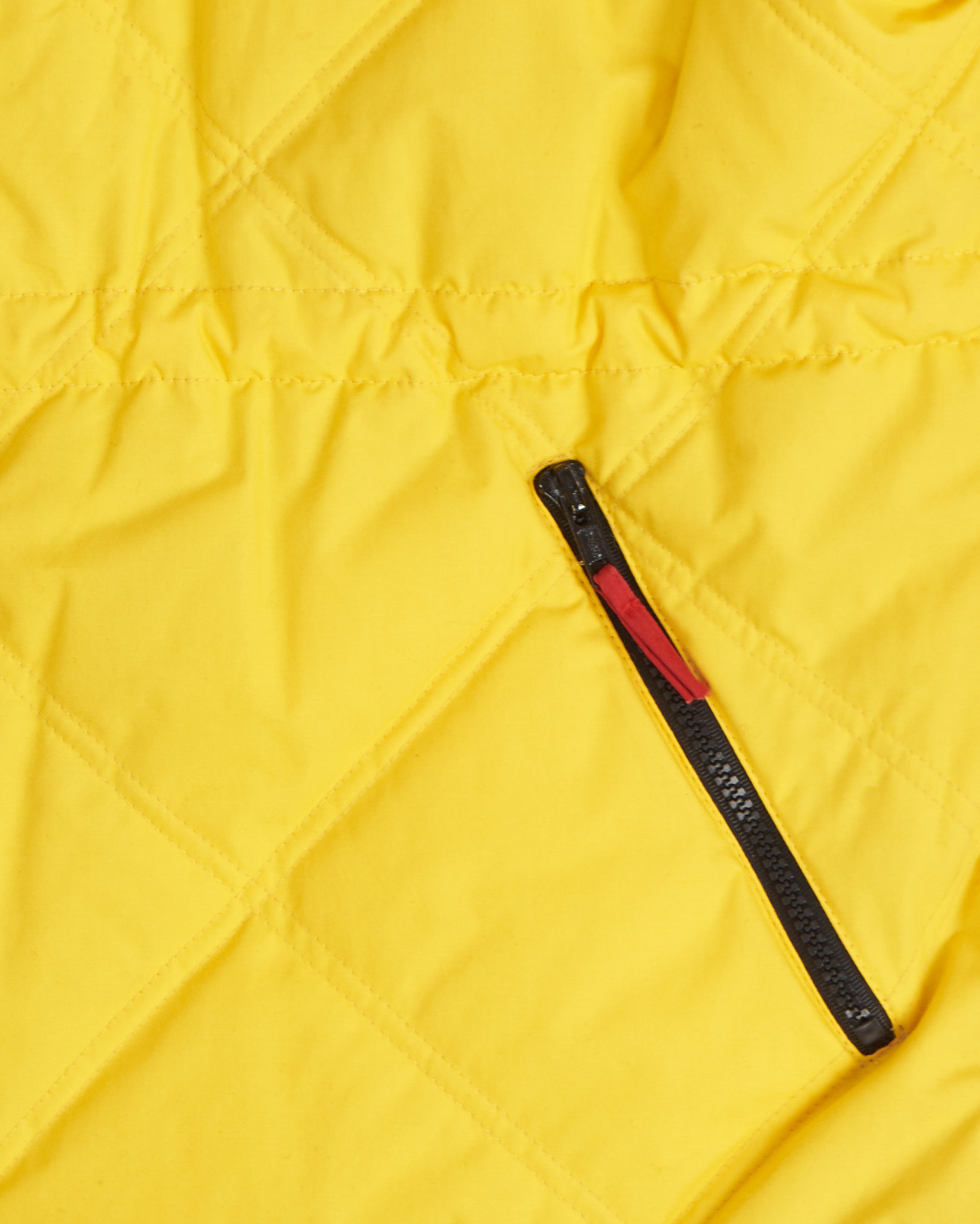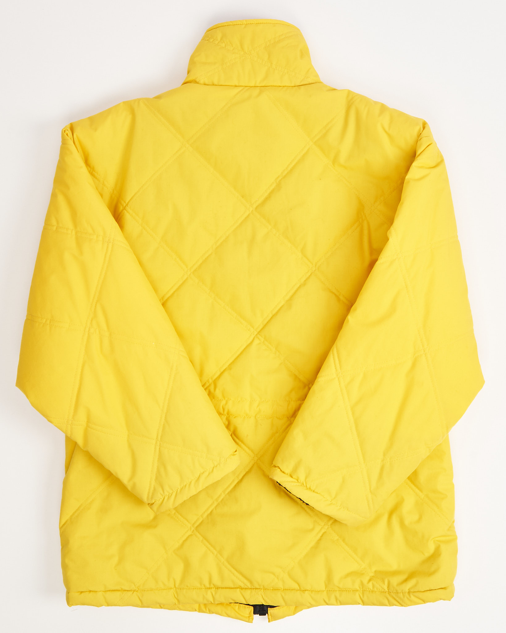 Посадка свободная и комфортная, не сковывает движения и хорошо садится по плечам за счёт объёмного кроя. Верх выполнен из плотного полиэстера, материал гладкий на ощупь, слегка матовый и устойчивый к ветру. Внутренняя часть дополнена мягким флисом, который приятен к телу и сохраняет тепло без лишнего объёма. Детали в виде диагональной стёжки, контрастной подкладки и фирменной нашивки делают вещь запоминающейся и редкой для винтажного ассортимента.