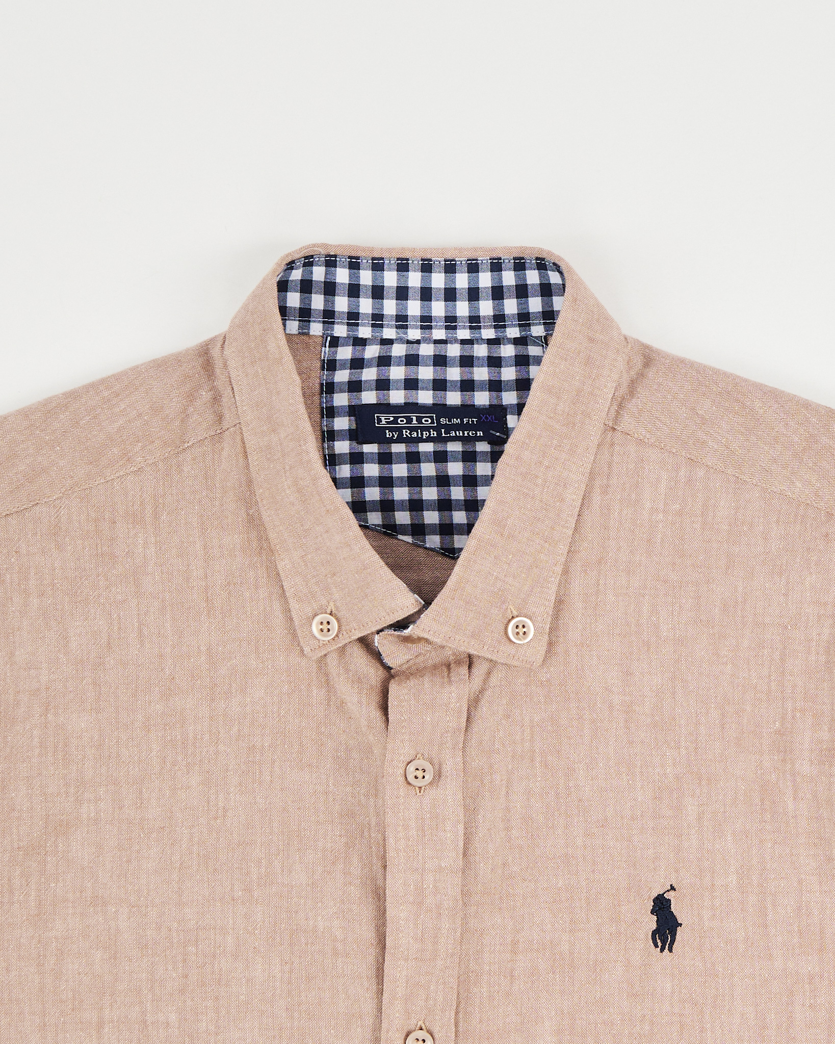 Рубашка из натурального льна от Polo Ralph Lauren. Прямой крой, свободная посадка. акцентная подкладка в клетку на воротнике и манжетах, фирменный вышитый логотип на груди.