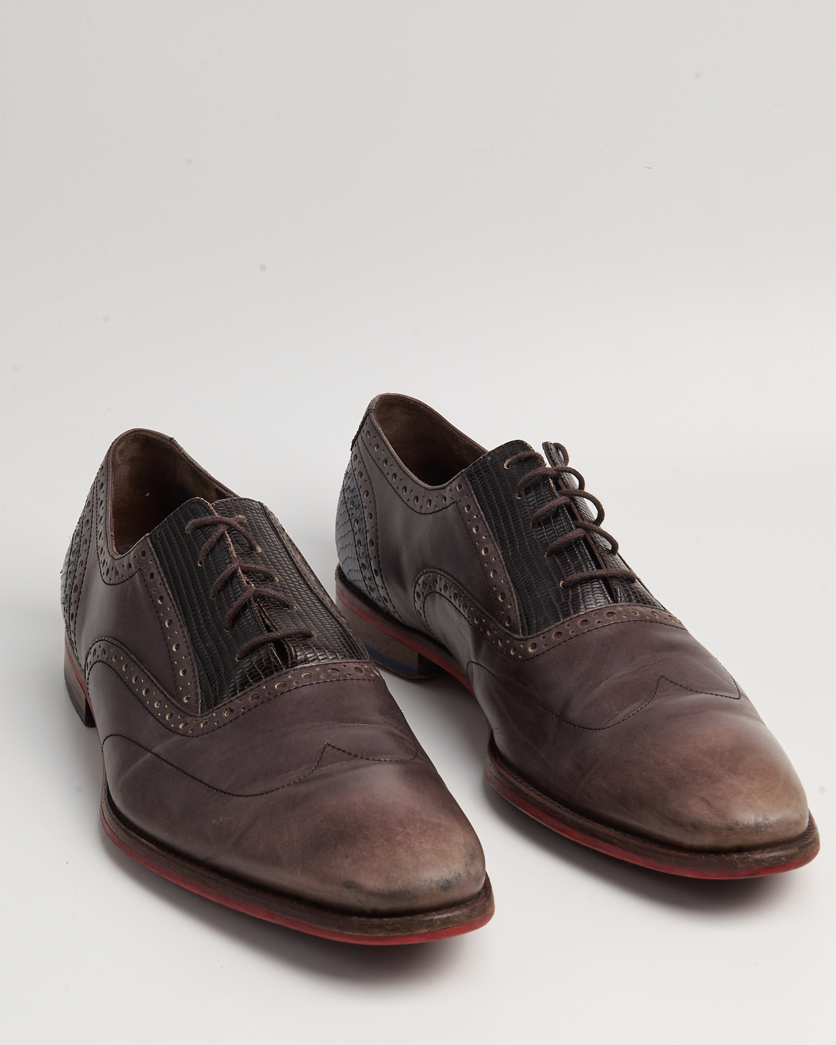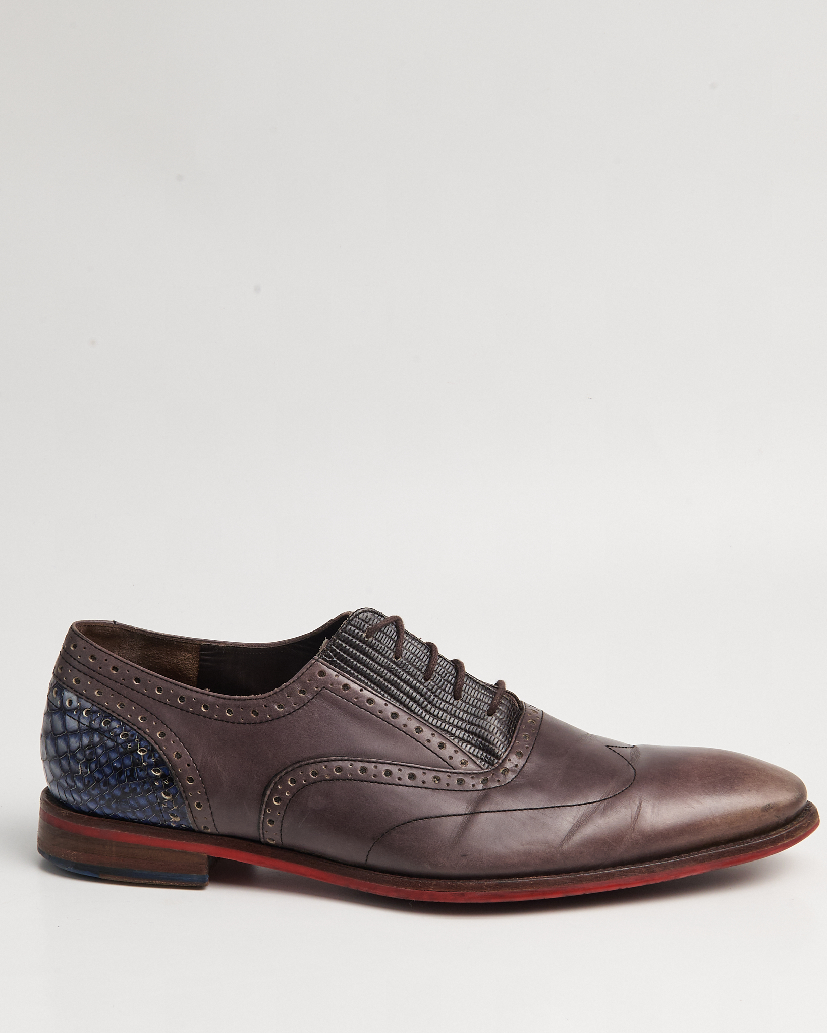 Представляем изысканные мужские туфли бренда Floris van Bommel, выполненные из натуральной кожи с уникальной отделкой. Это настоящий пример высокой итальянской обувной моды — сочетание классического силуэта, оригинального дизайна и превосходного качества материалов