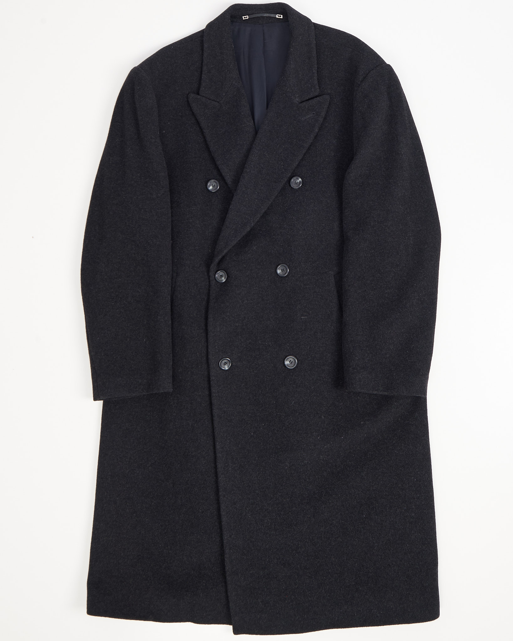 Двубортное пальто из шерсти и кашемира от Tino Corelli. Прямой силуэт с чёткой линией плеч. Классическая застёжка на два ряда пуговиц и аккуратные прорезные карманы.