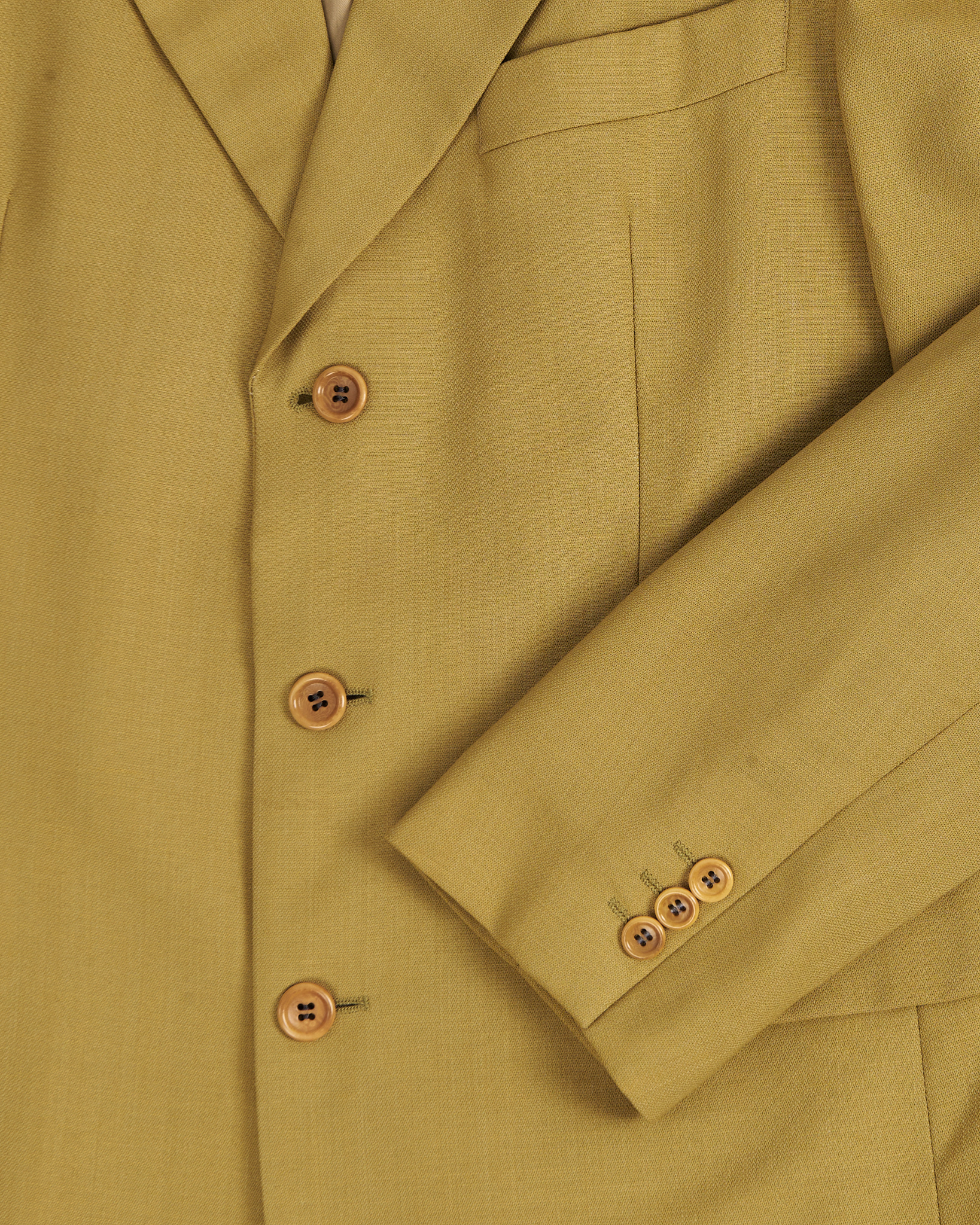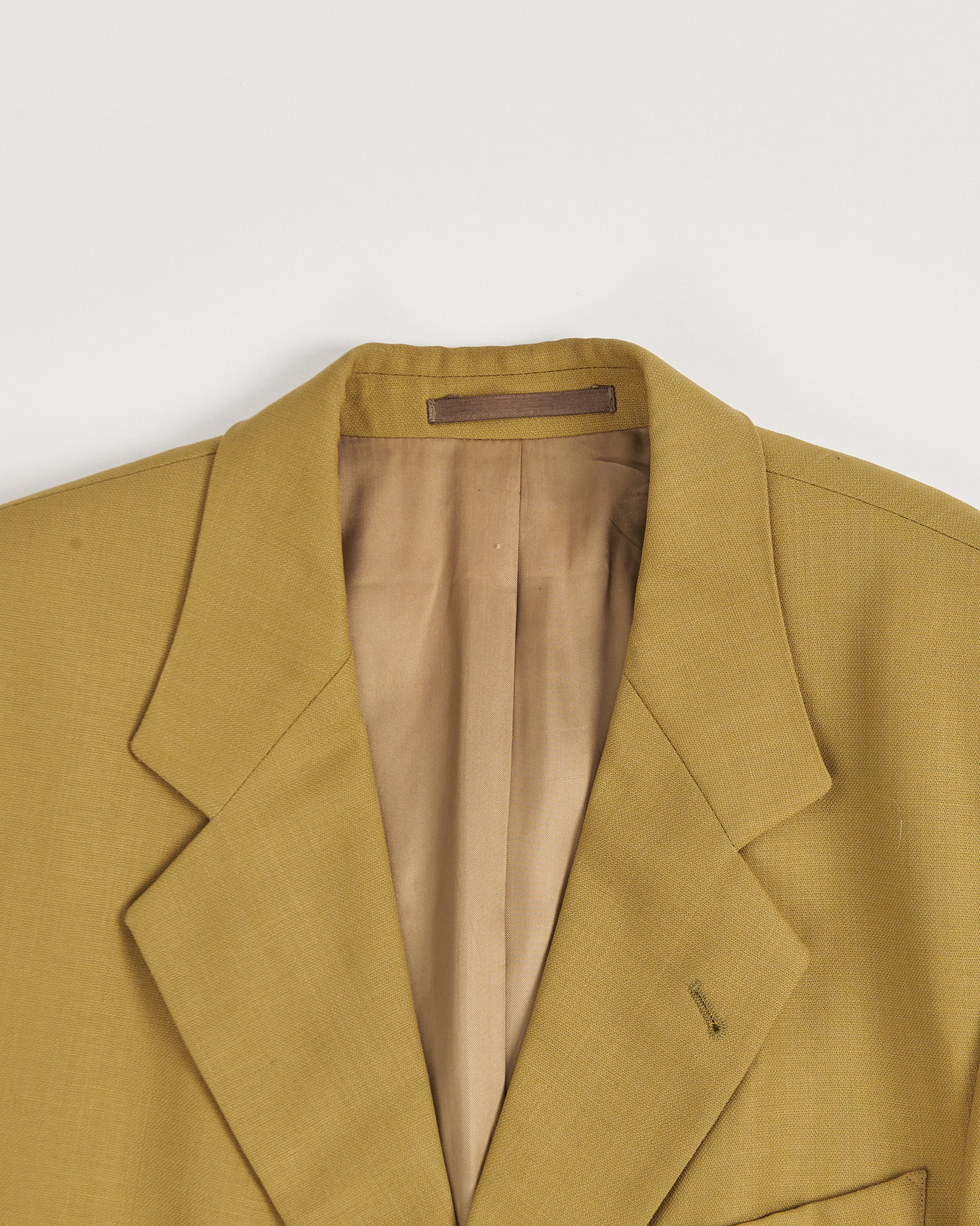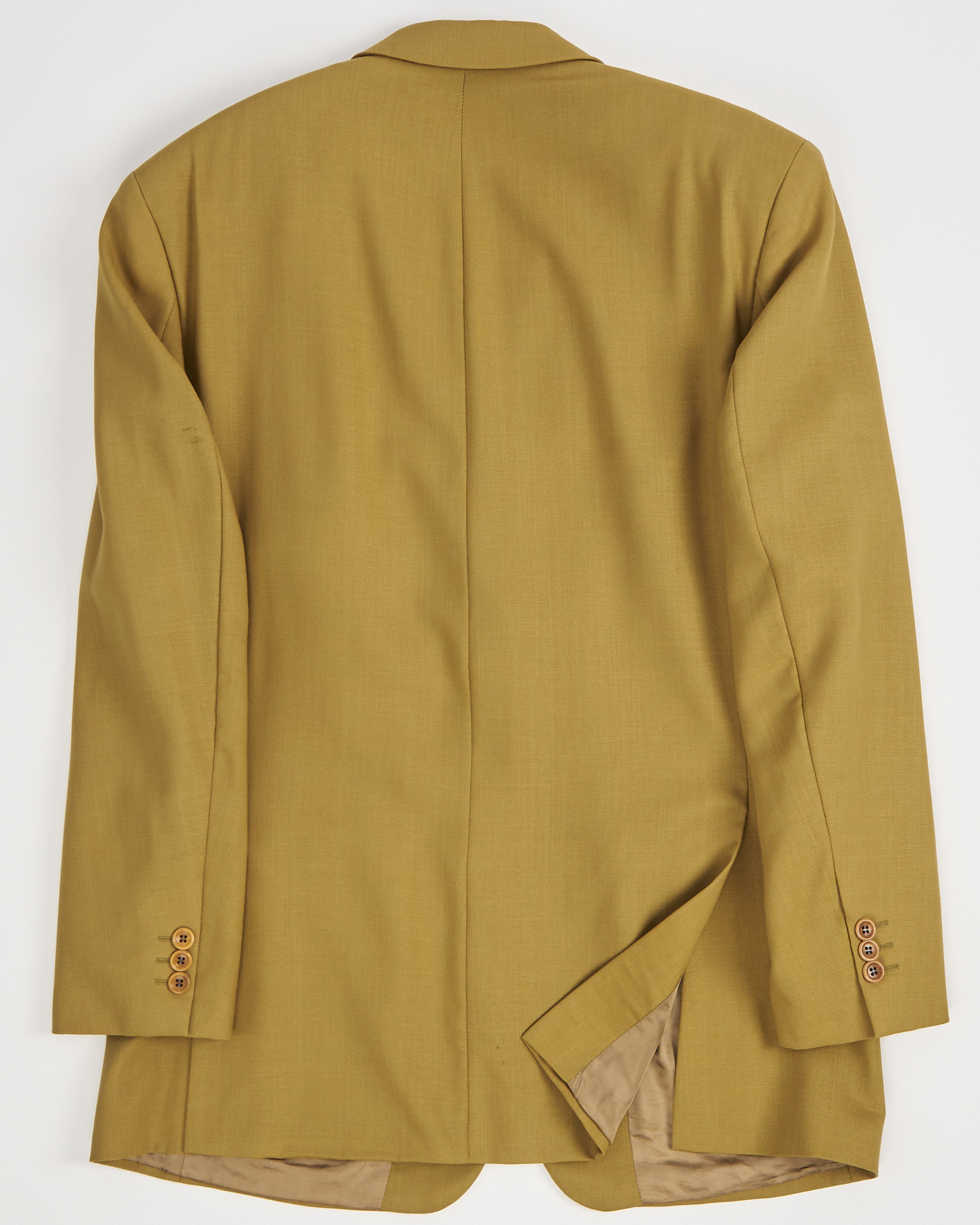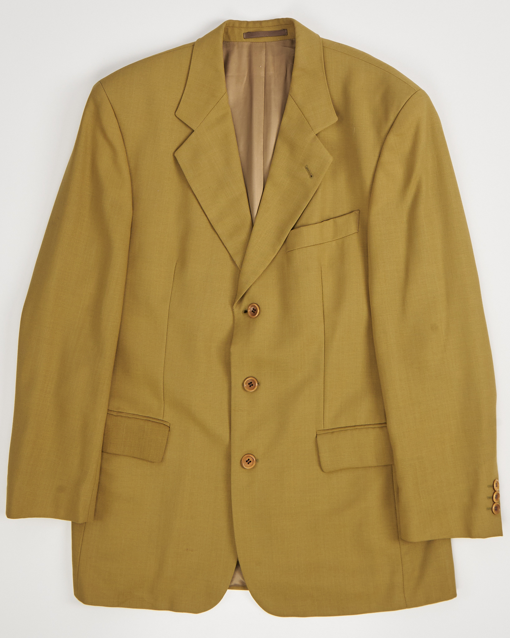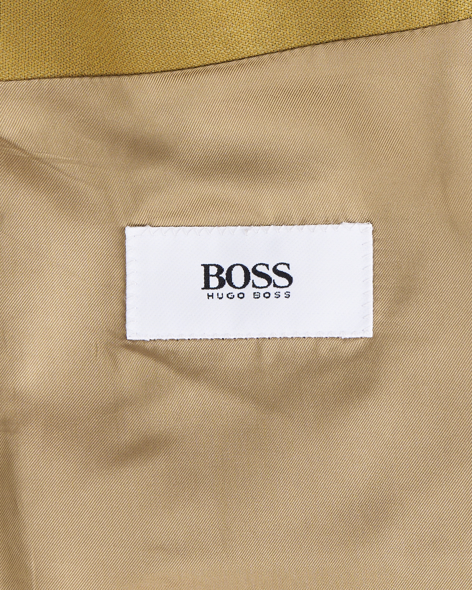 Пиджак Hugo Boss в горчичном оттенке. Пиджак выполнен из плотной костюмной шерсти. Прямой крой, подплечники. Модель отражает эстетику минимализма и делового стиля.