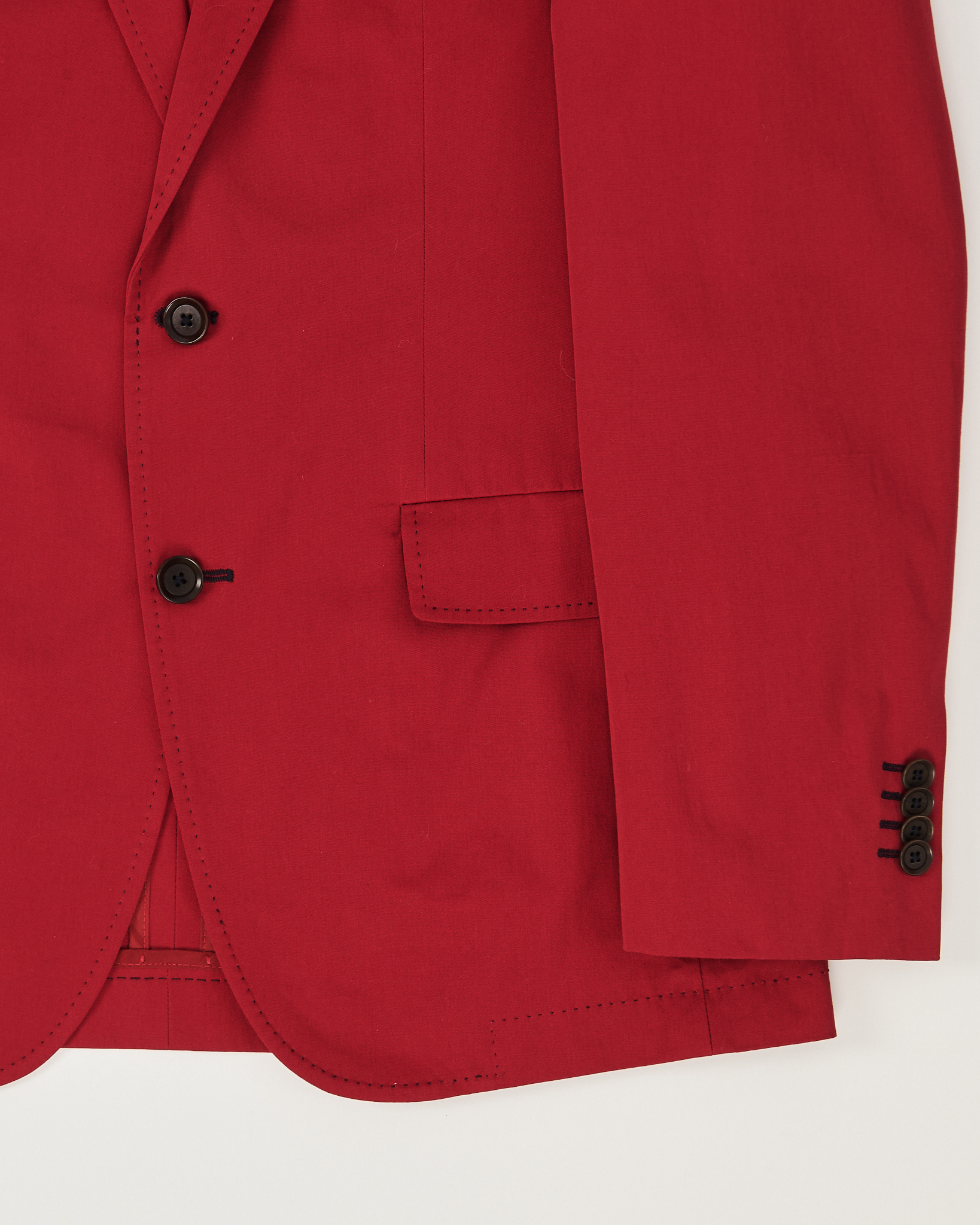 Пиджак двубортный из 100% хлопка. Материал приятный на ощупь, поверхность мягкая и слегка фактурная. Прямой крой, свободная посадка. Контратсные черные пуговицы и функциональные карманы.
