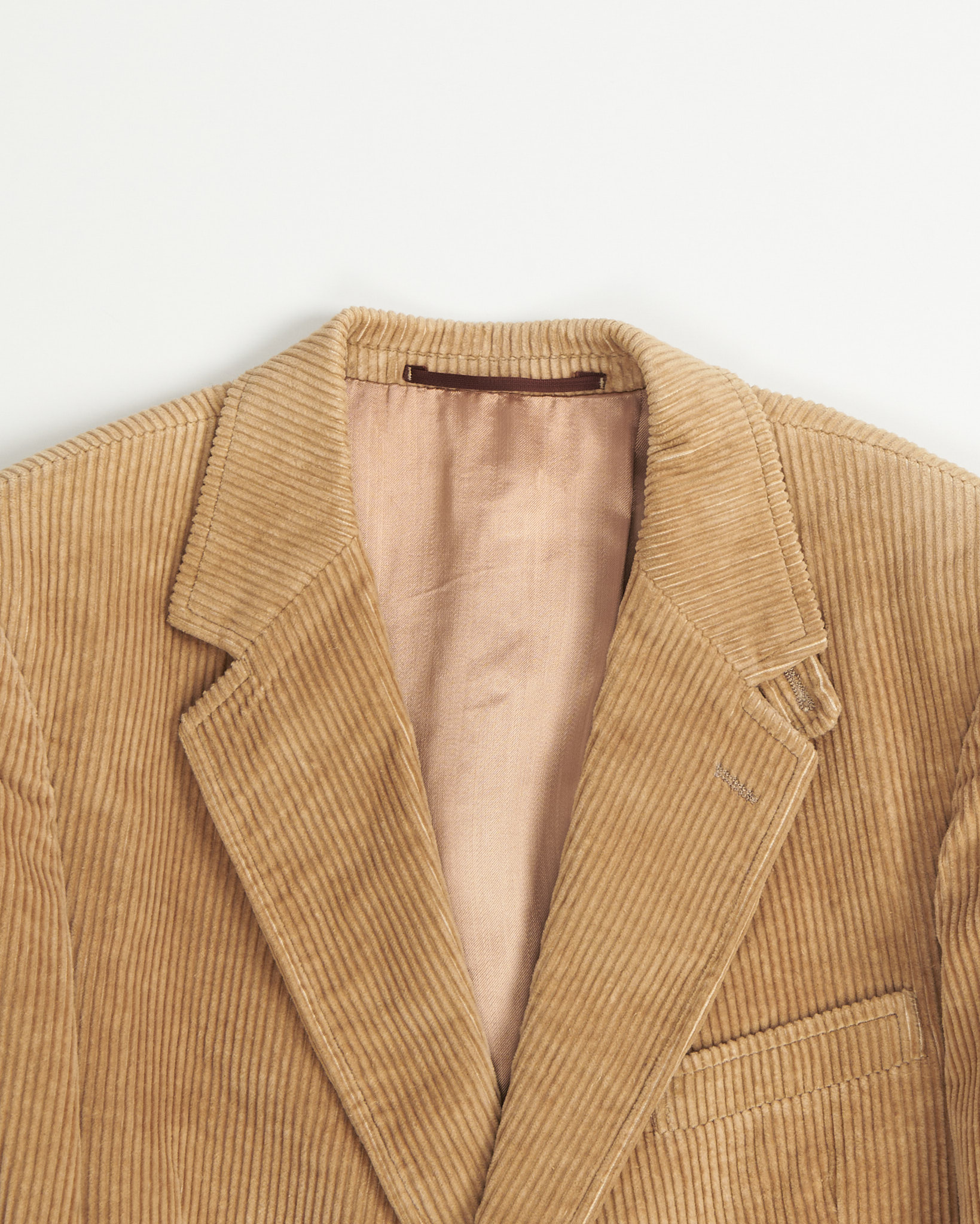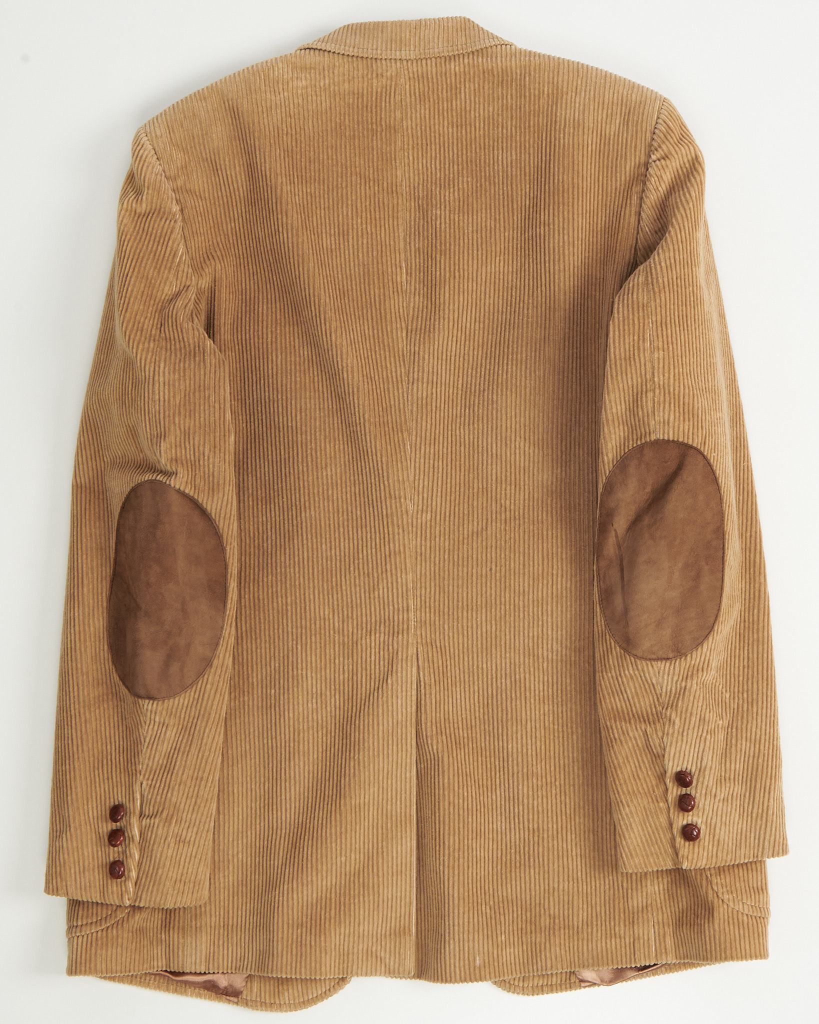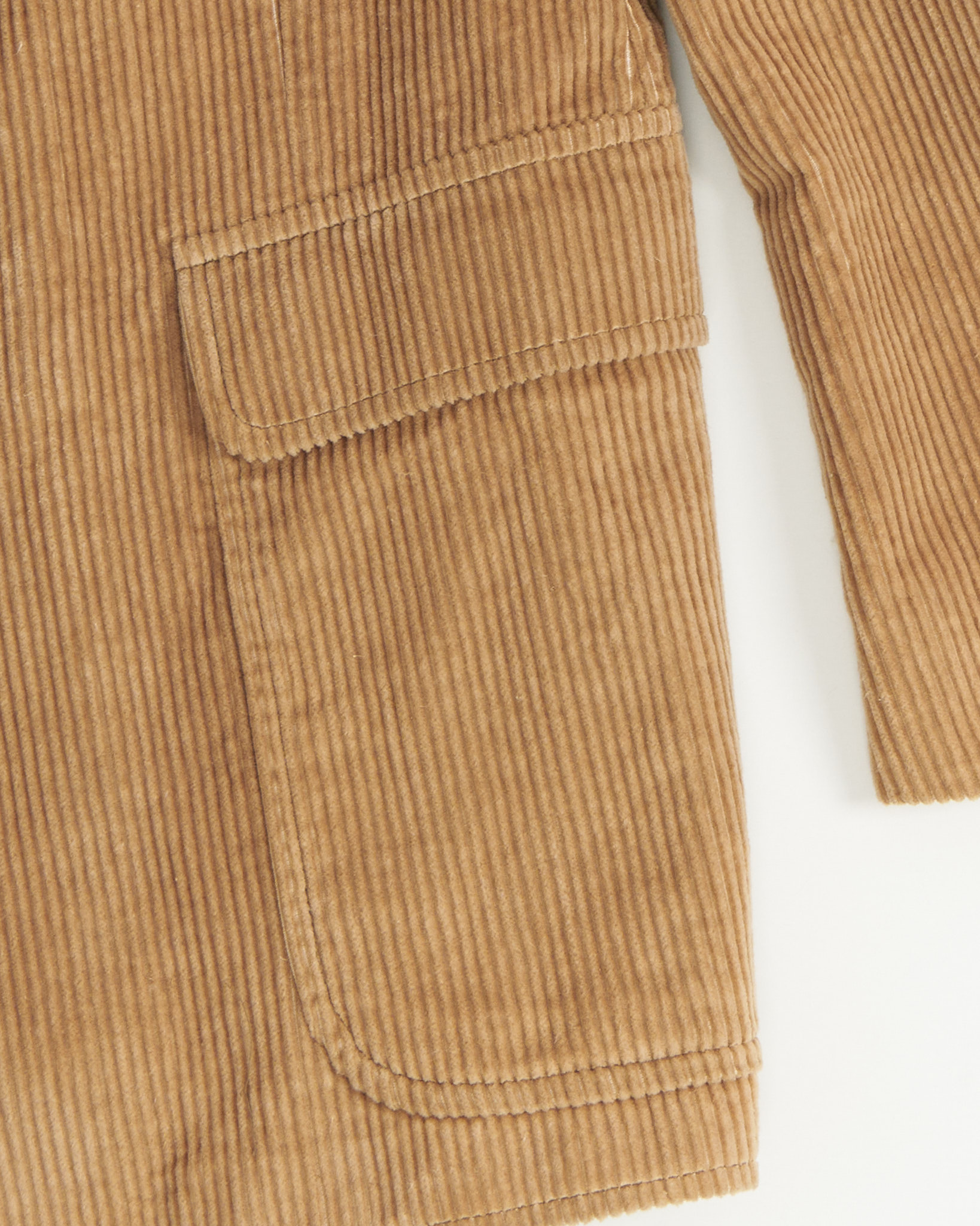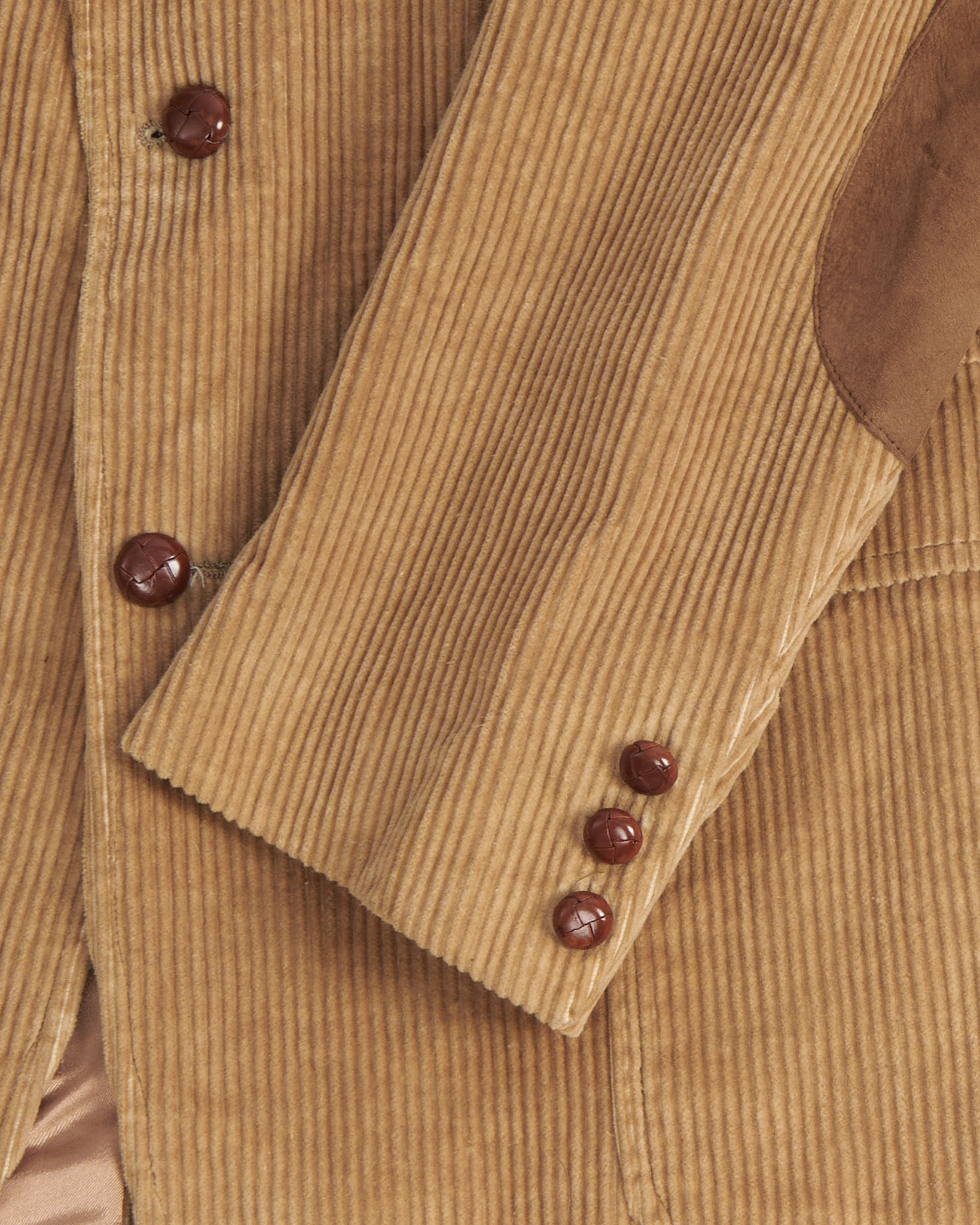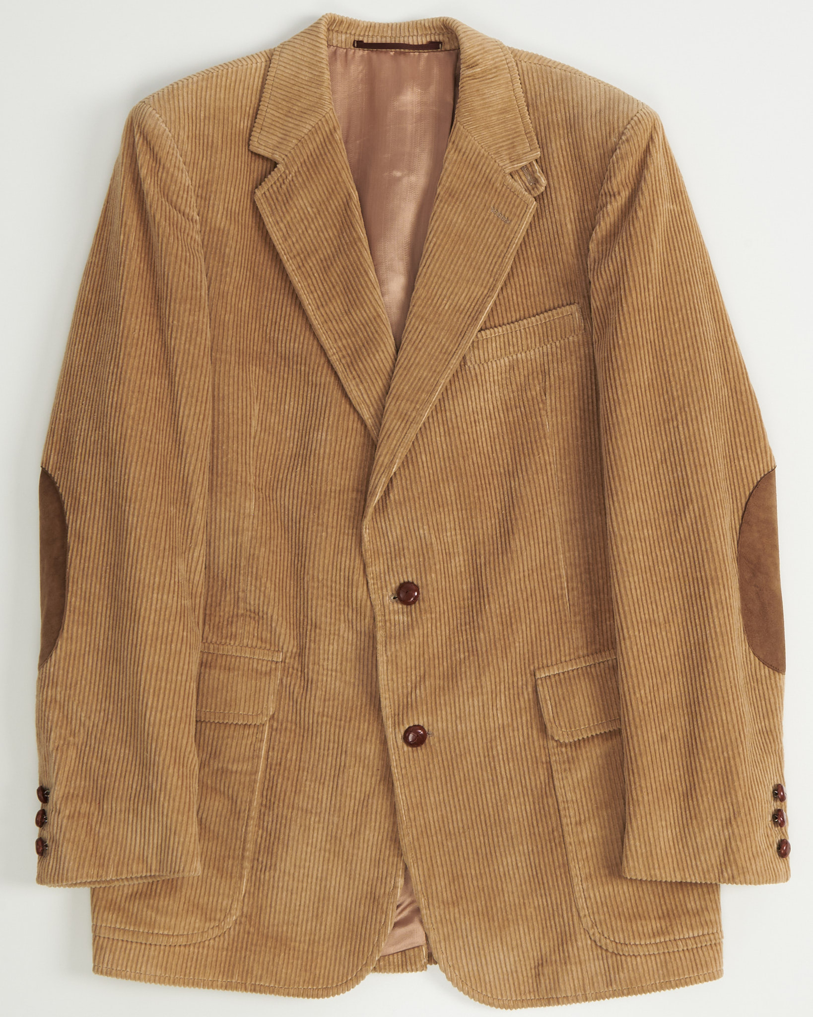 Пиджак из плотного вельвета в тёплом бежевом оттенке. Посадка ближе к прямой, с чёткой линией плеч и комфортным объёмом корпуса. Накладные карманы и замшевые патчи на локтях. Подклад гладкий, что обеспечивает удобство в движении и аккуратную посадку. Идеален для образов в smart-casual стиле.